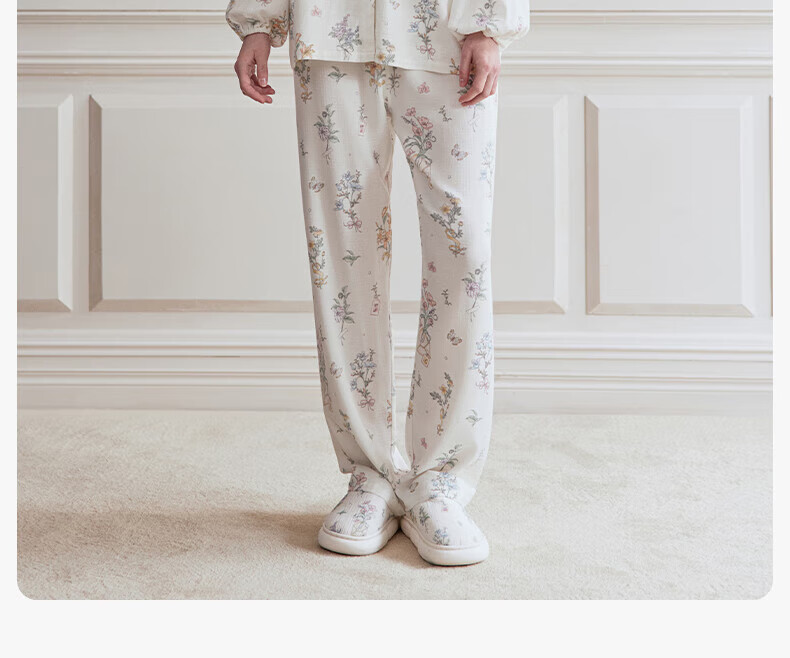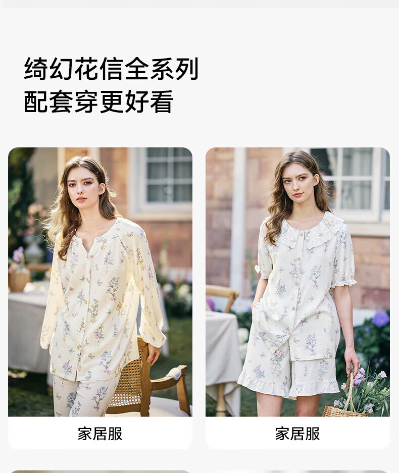 达芙妮【MJ】睡衣女春秋季长袖长裤睡裙可外穿国风三件套家居服 K92105三件套 XL【花型随机发】