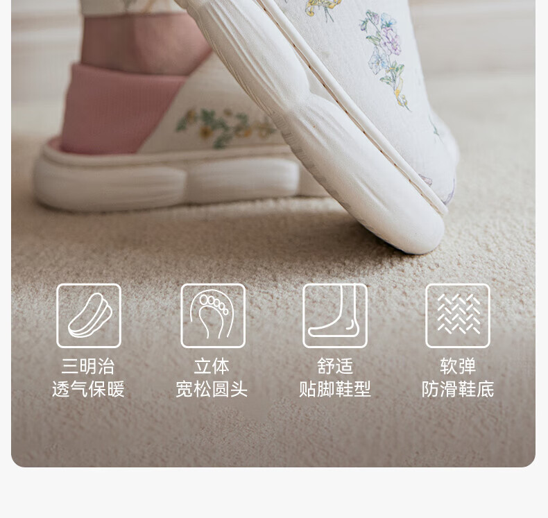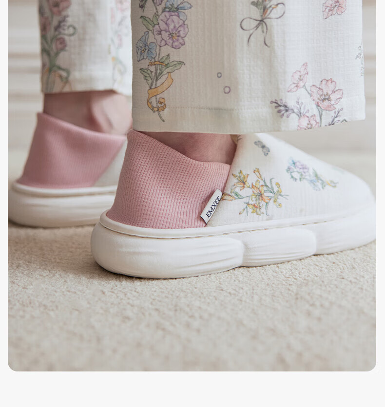 嫚熙(EMXEE)【新品】月子鞋软底孕妇鞋产妇产后包跟防滑透气鞋 绮幻花信 36-37