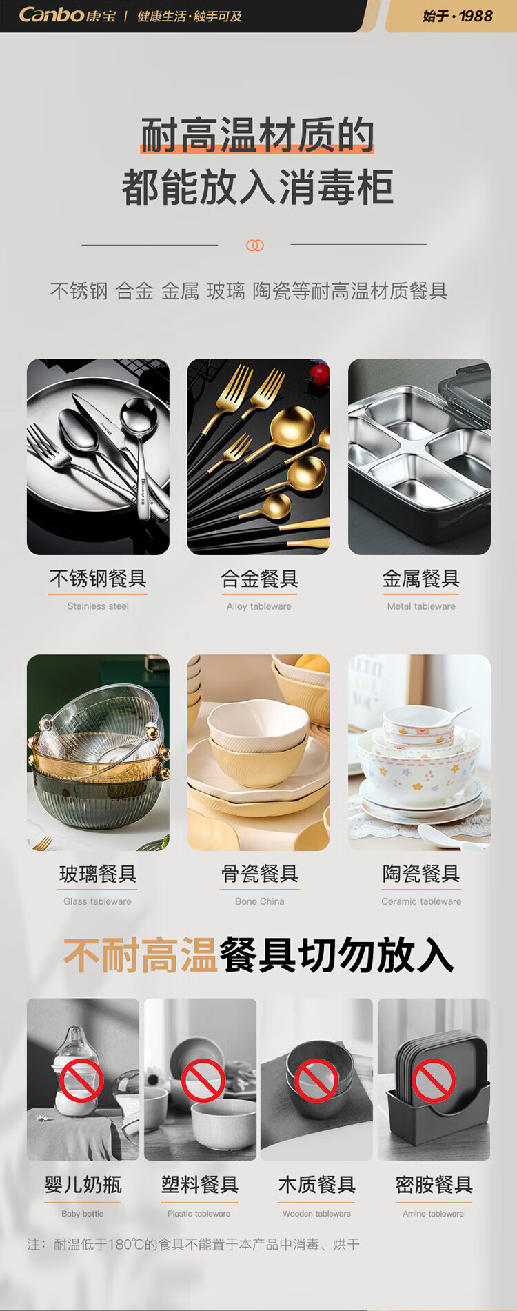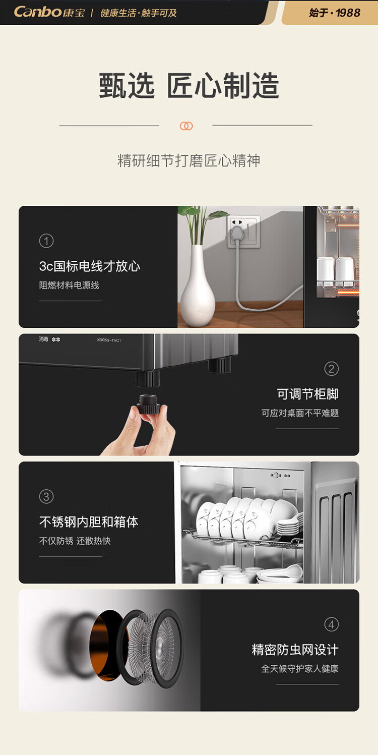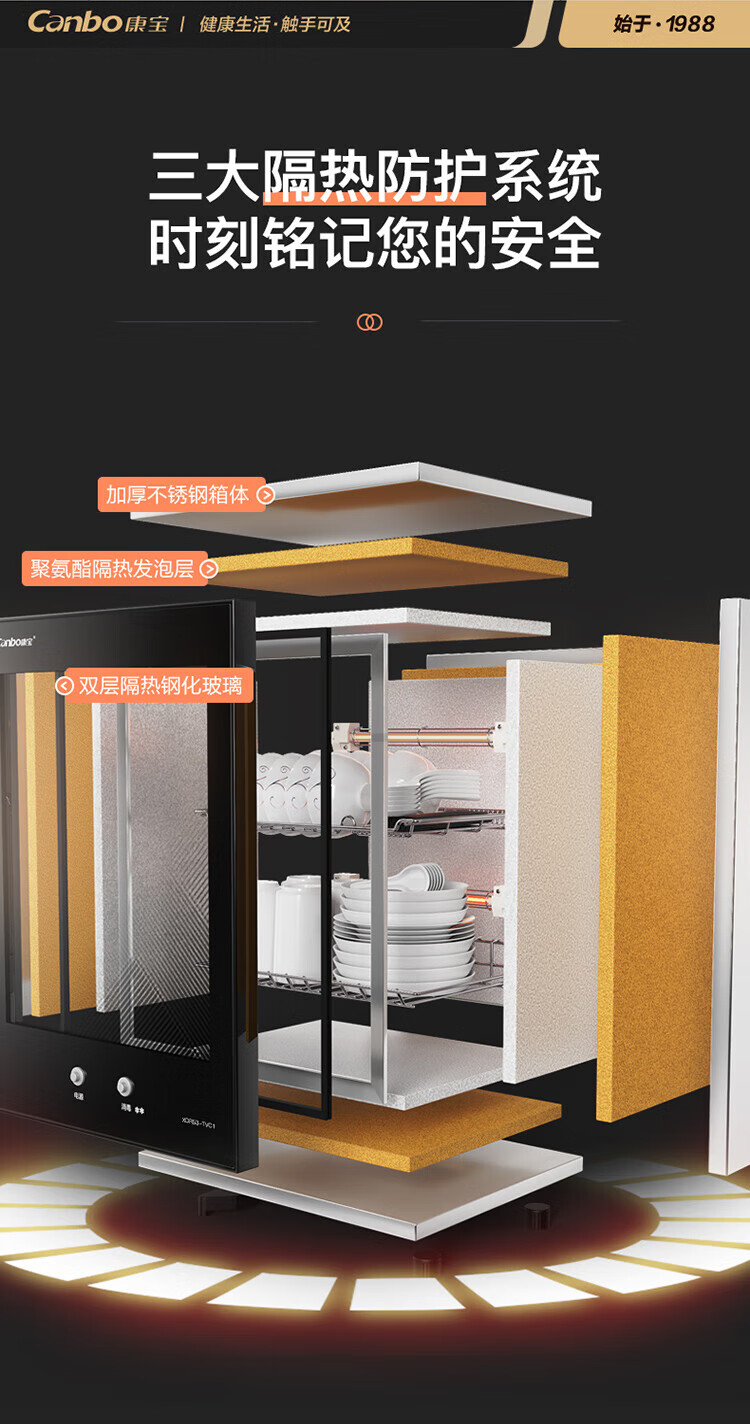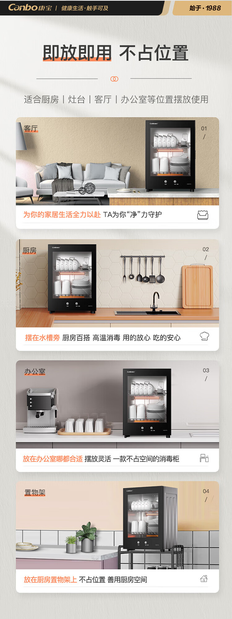 康宝(Canbo)消毒碗柜家用 台式 厨房碗筷柜 二星级高温消毒 客厅 办公茶杯茶具消毒柜 桌面式 不锈钢内胆 二星级 50L 丨XDR53-TVC1