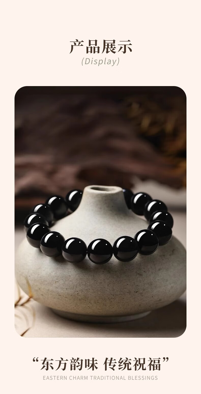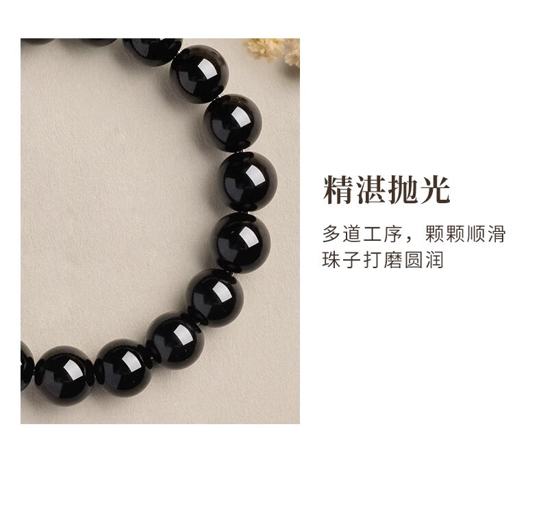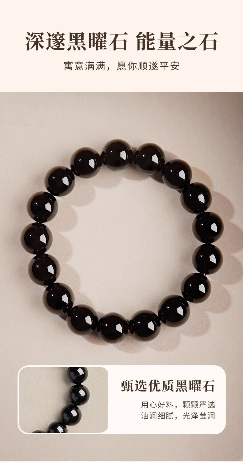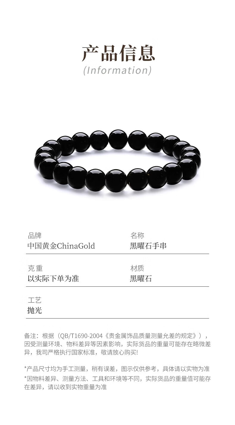 中国黄金(CHINA GOLD)天然黑曜石手串男女款水晶佛珠时尚手链时生日礼物马年本命年礼物 金曜石手串 约14mm【品牌礼盒】