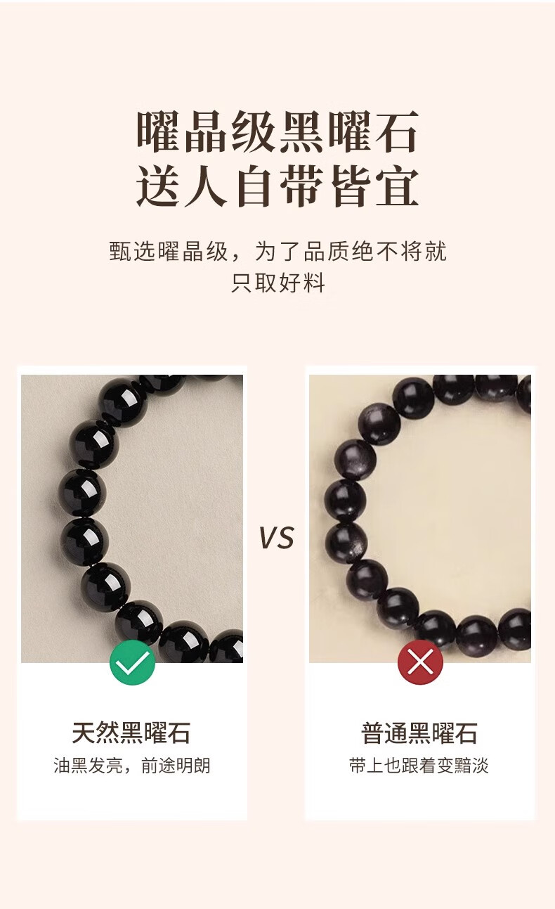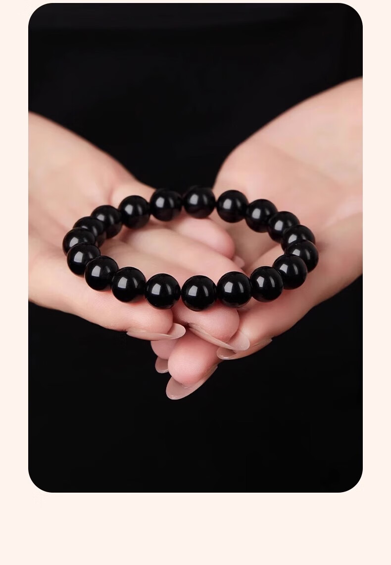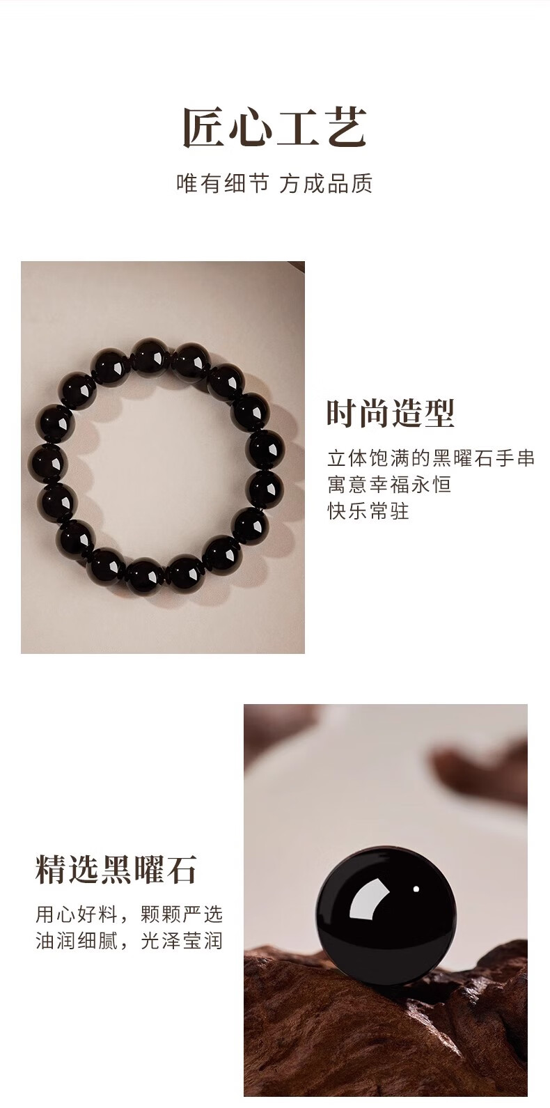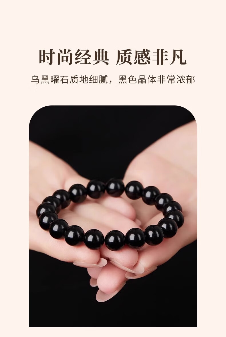 中国黄金(CHINA GOLD)天然黑曜石手串男女款水晶佛珠时尚手链时生日礼物马年本命年礼物 金曜石手串 约14mm【品牌礼盒】