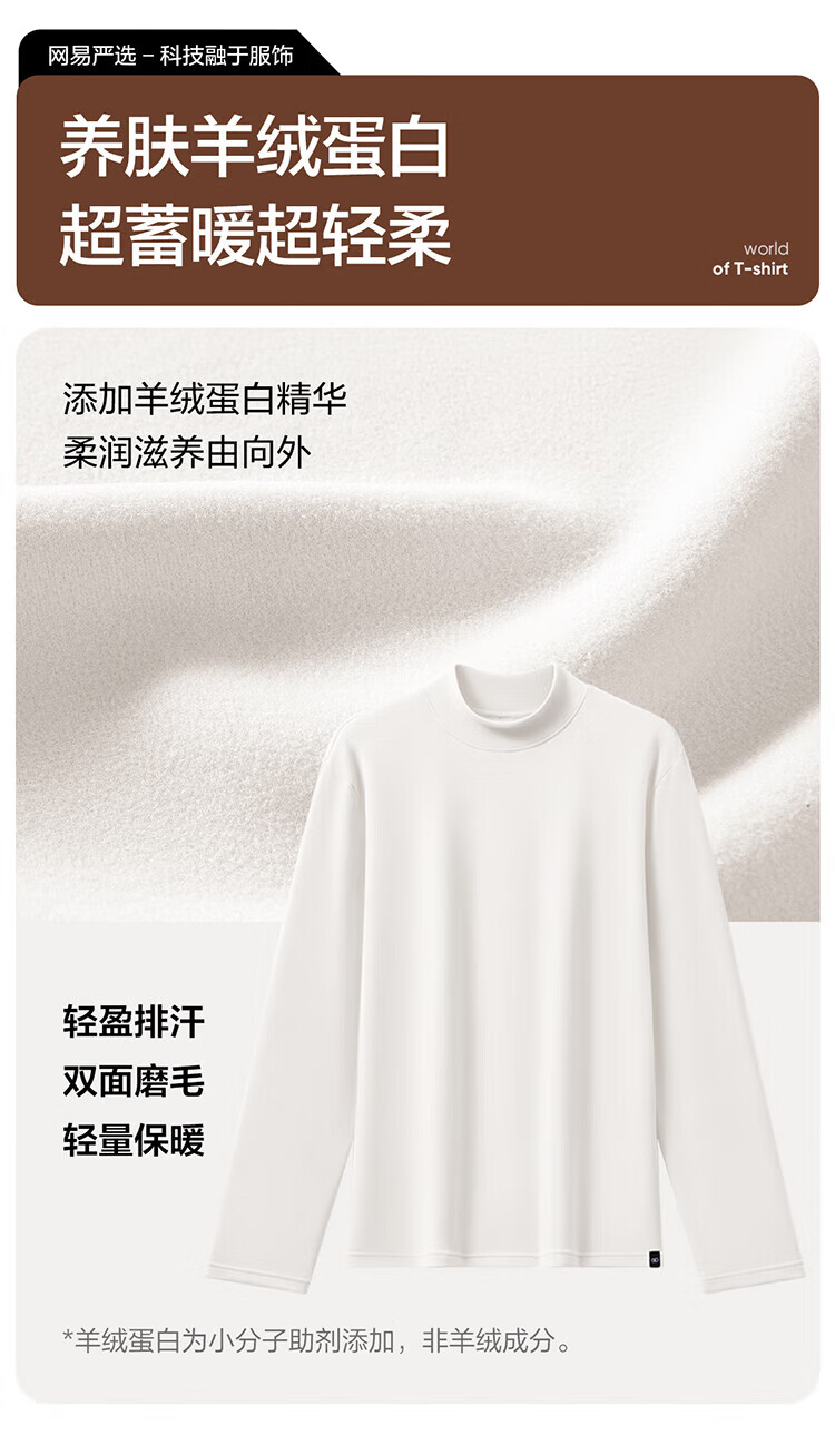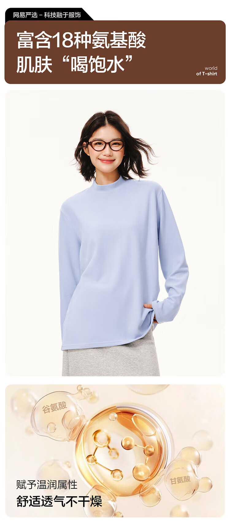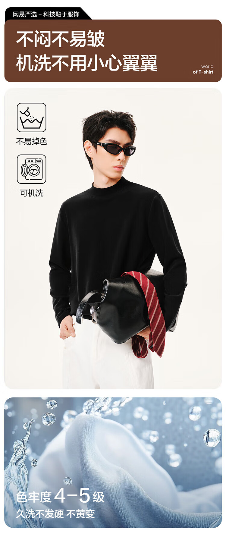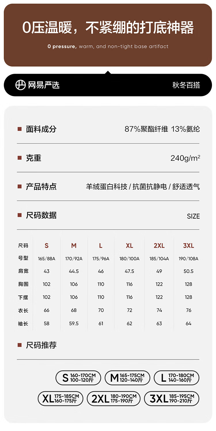 网易严选25新品羊绒蛋白打底衫防静电抗菌透气远红外保暖内搭加厚长袖T恤 经典黑 L