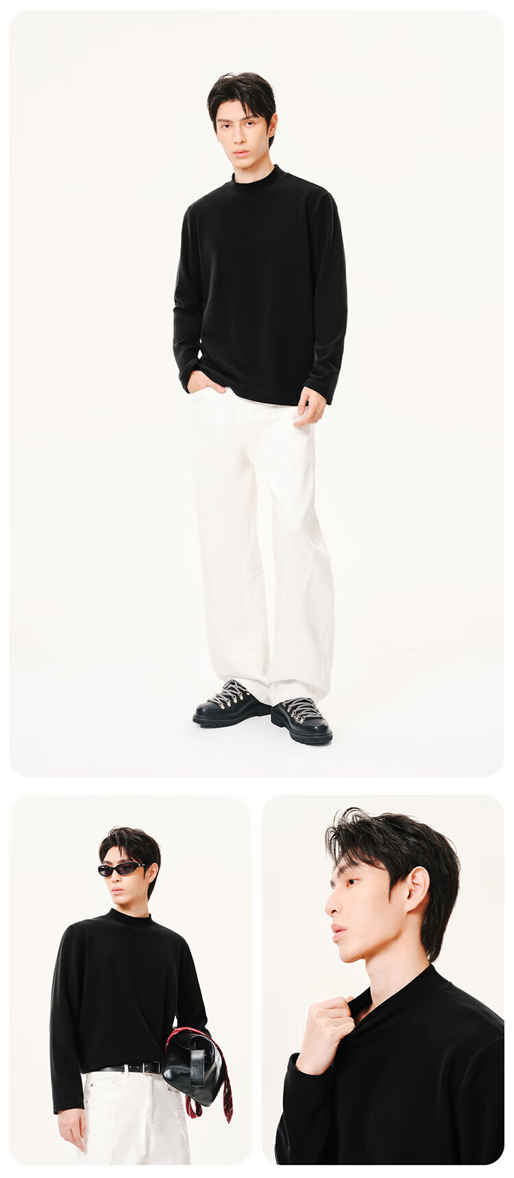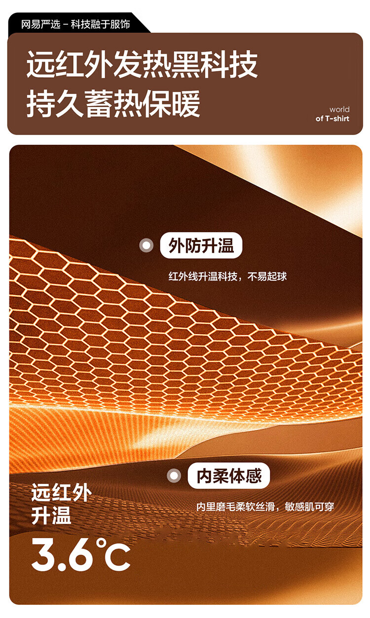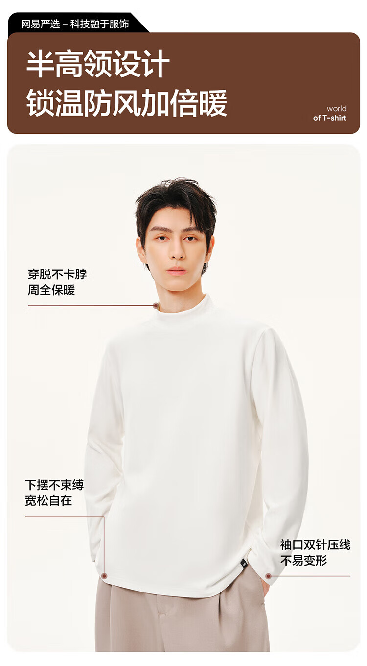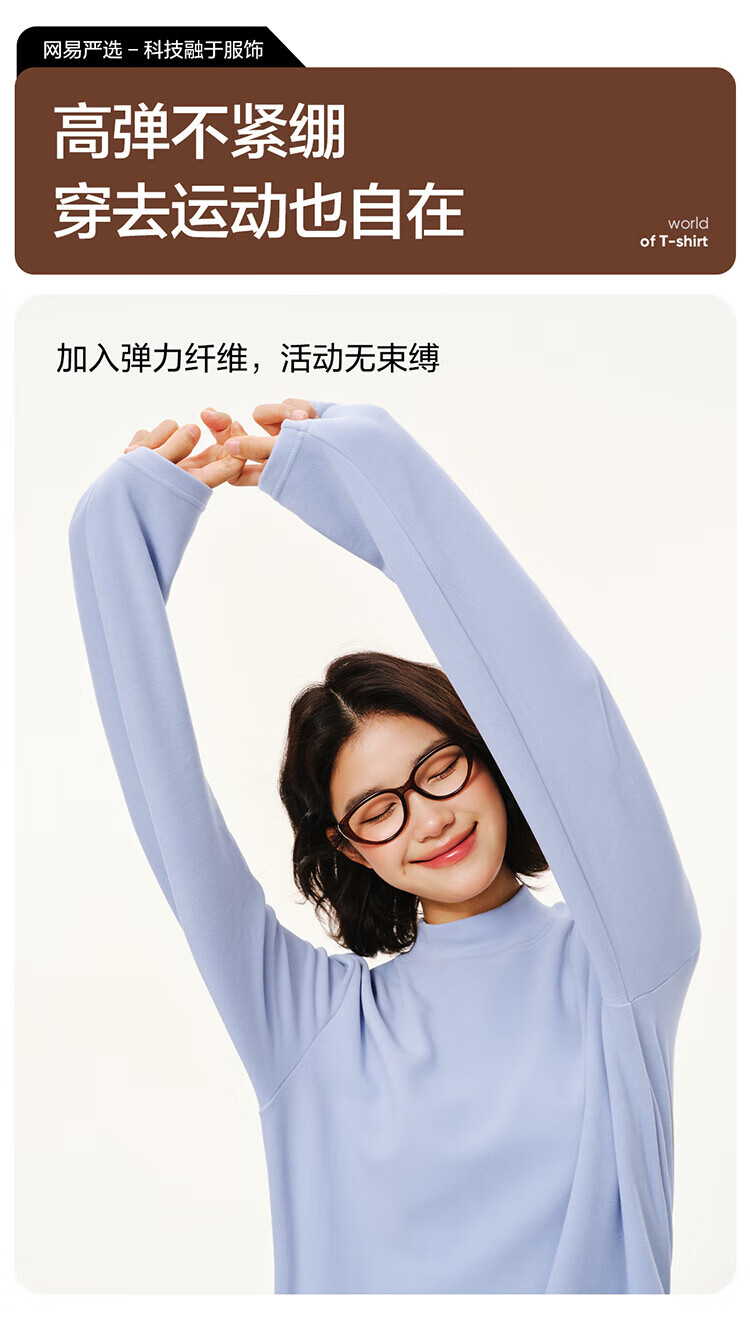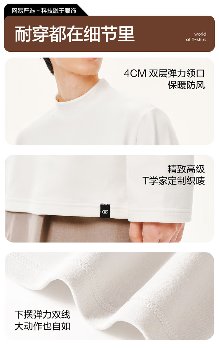 网易严选25新品羊绒蛋白打底衫防静电抗菌透气远红外保暖内搭加厚长袖T恤 经典黑 L
