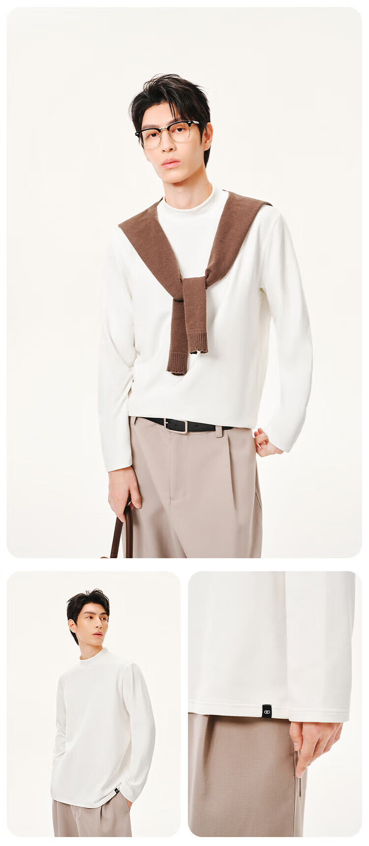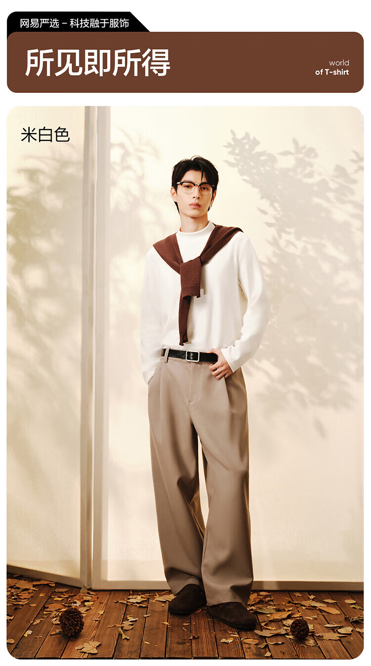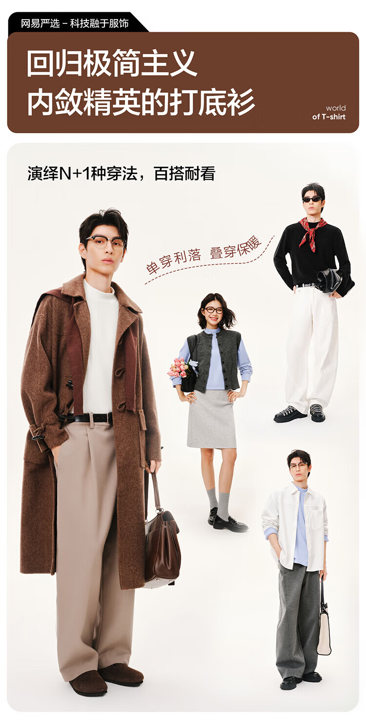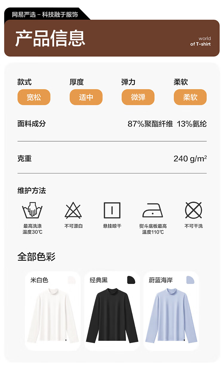 网易严选25新品羊绒蛋白打底衫防静电抗菌透气远红外保暖内搭加厚长袖T恤 经典黑 L