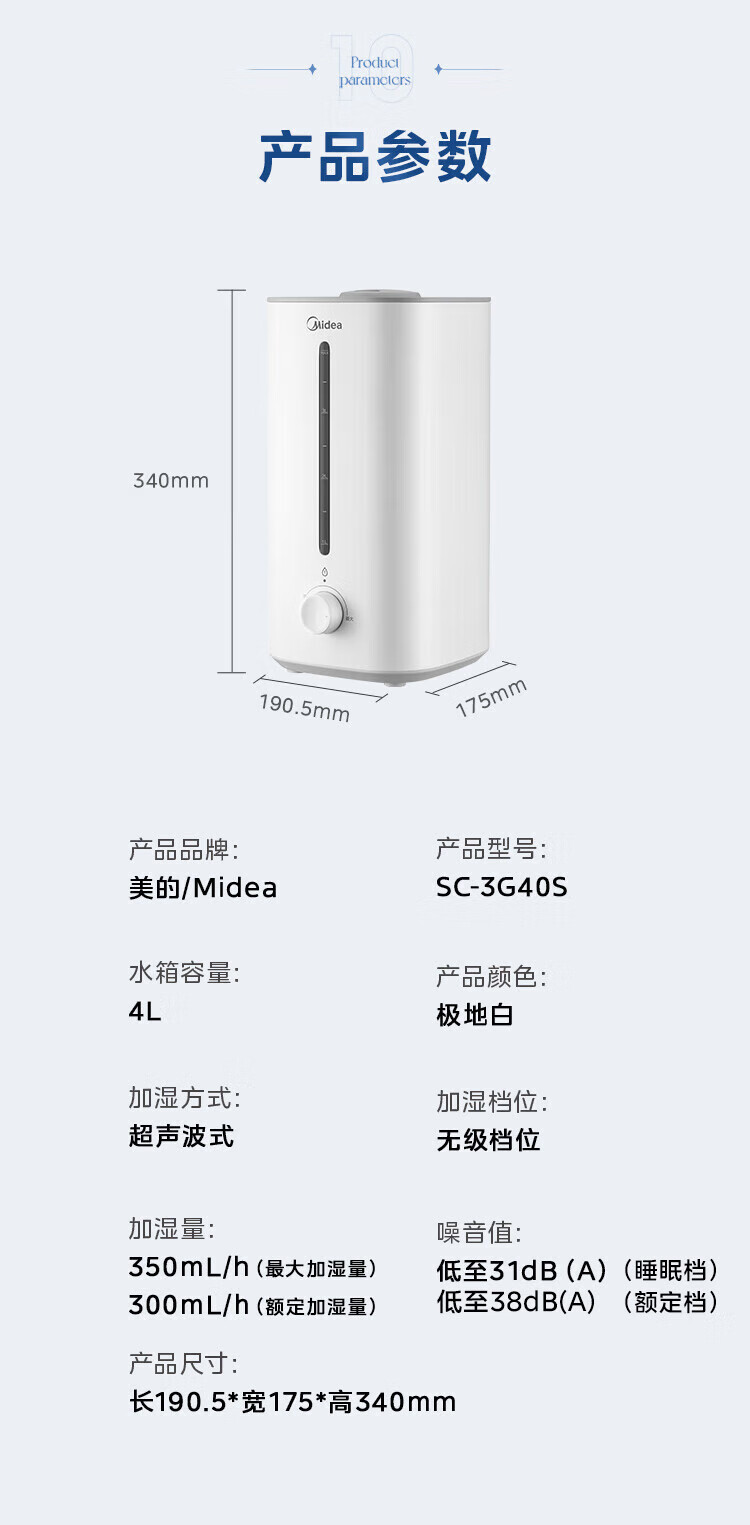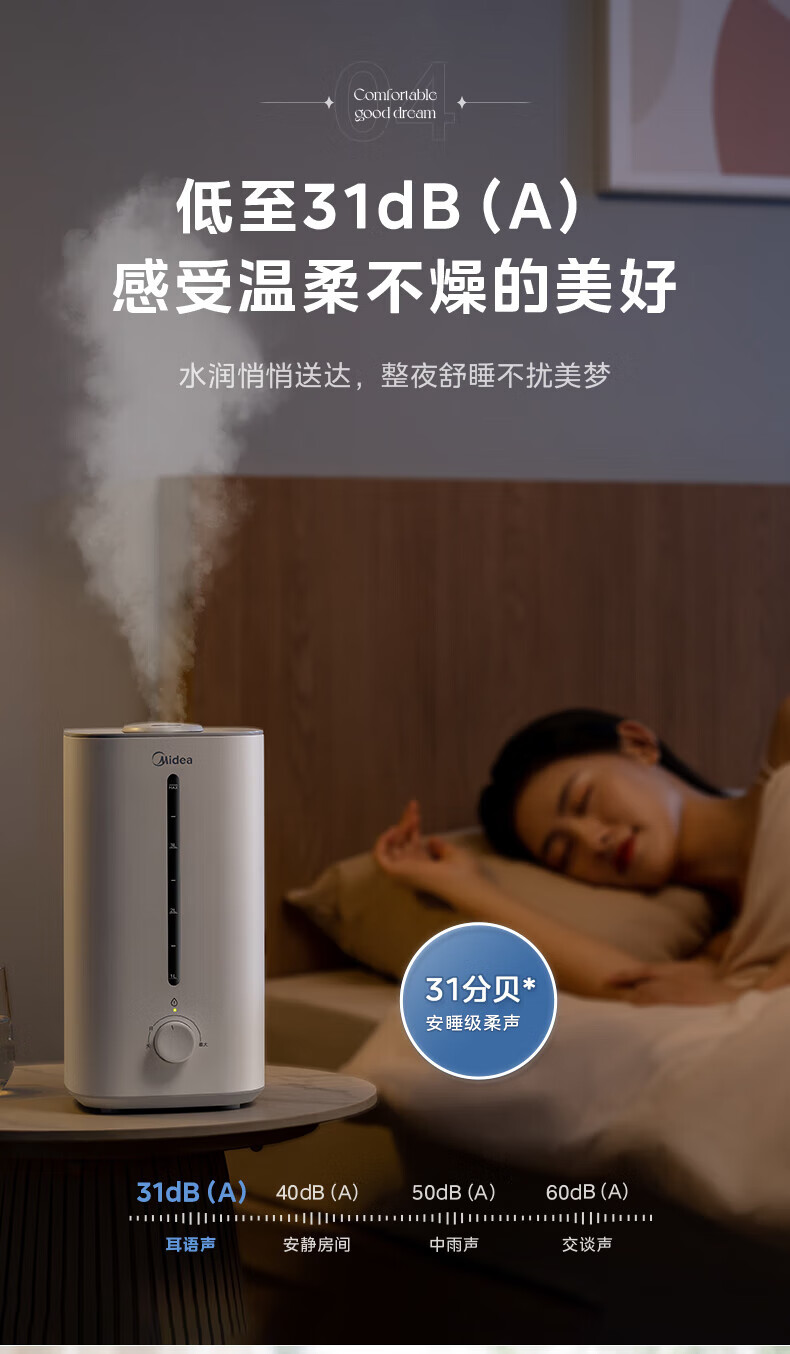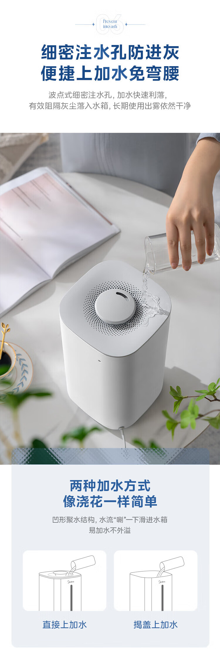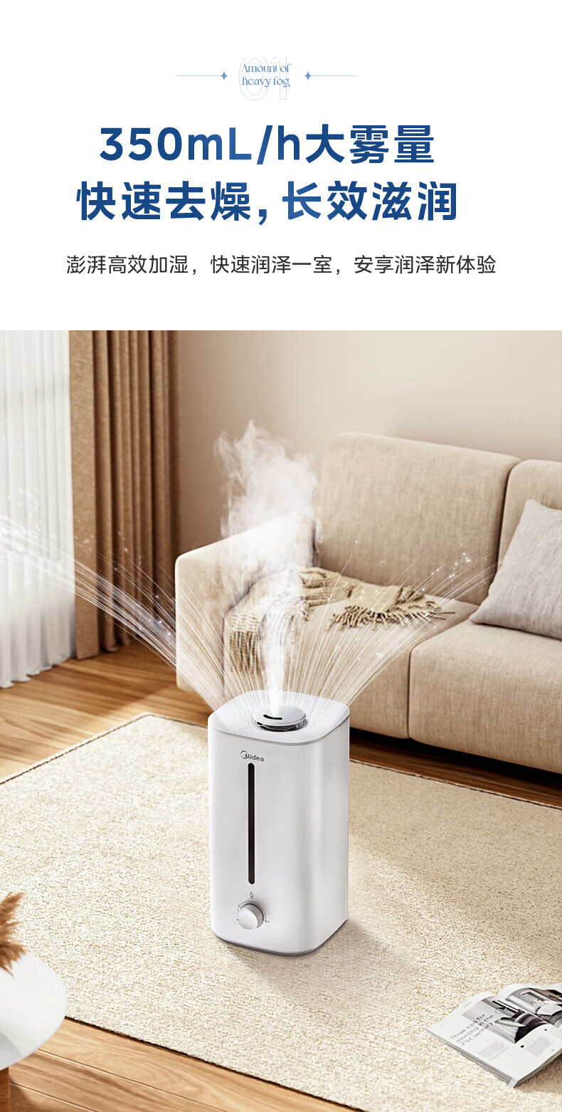 美的(Midea)加湿器空气净化家用卧室超声波大雾量宿舍静音除菌喷雾器办公室桌面雾化器 【安睡级轻音】SC-3G40S
