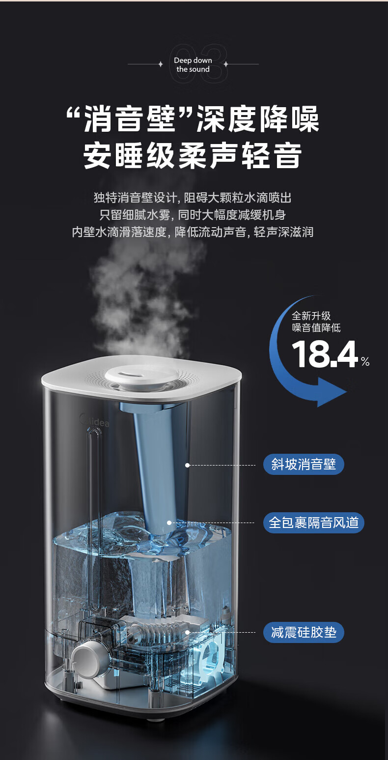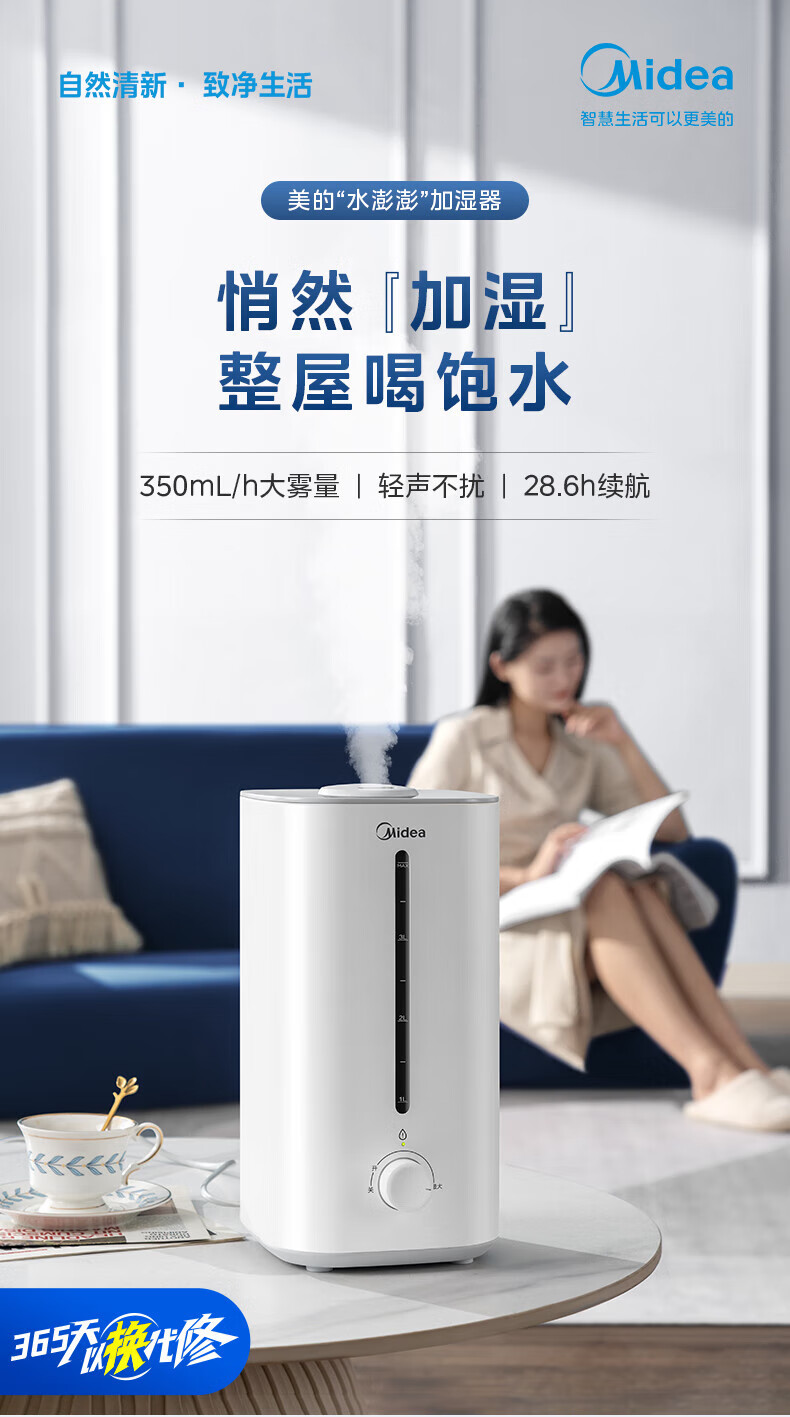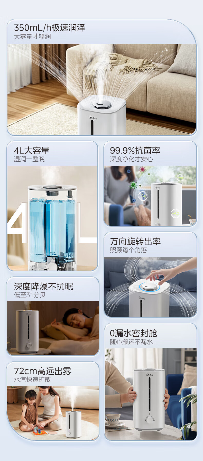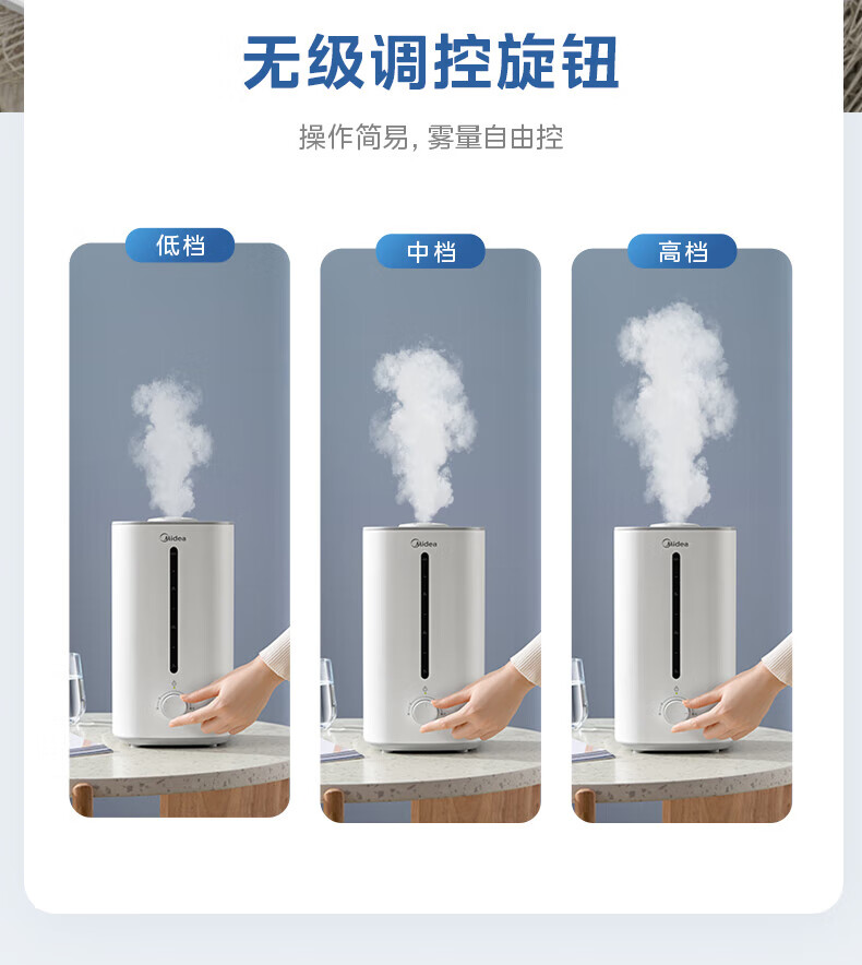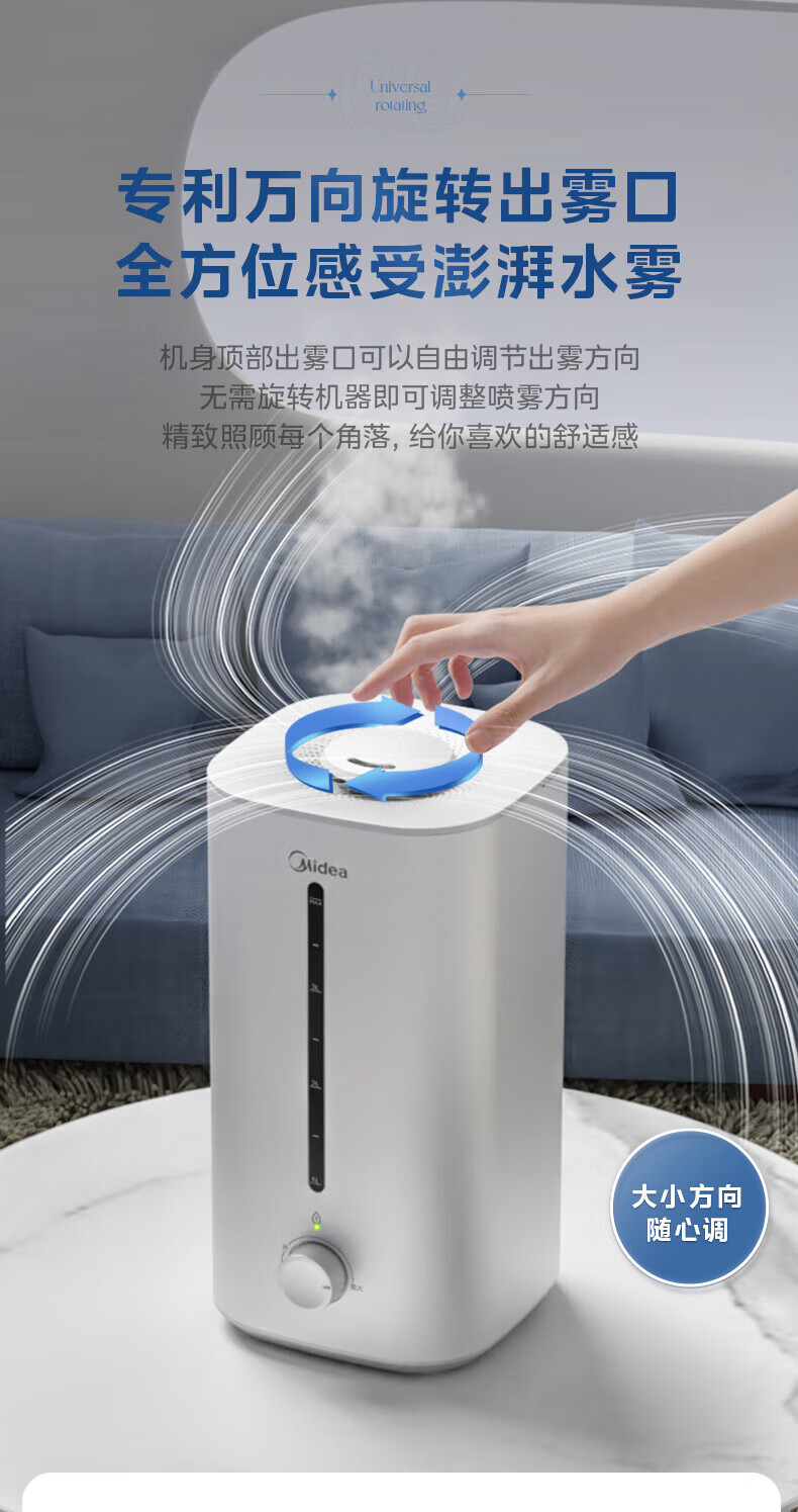 美的(Midea)加湿器空气净化家用卧室超声波大雾量宿舍静音除菌喷雾器办公室桌面雾化器 【安睡级轻音】SC-3G40S