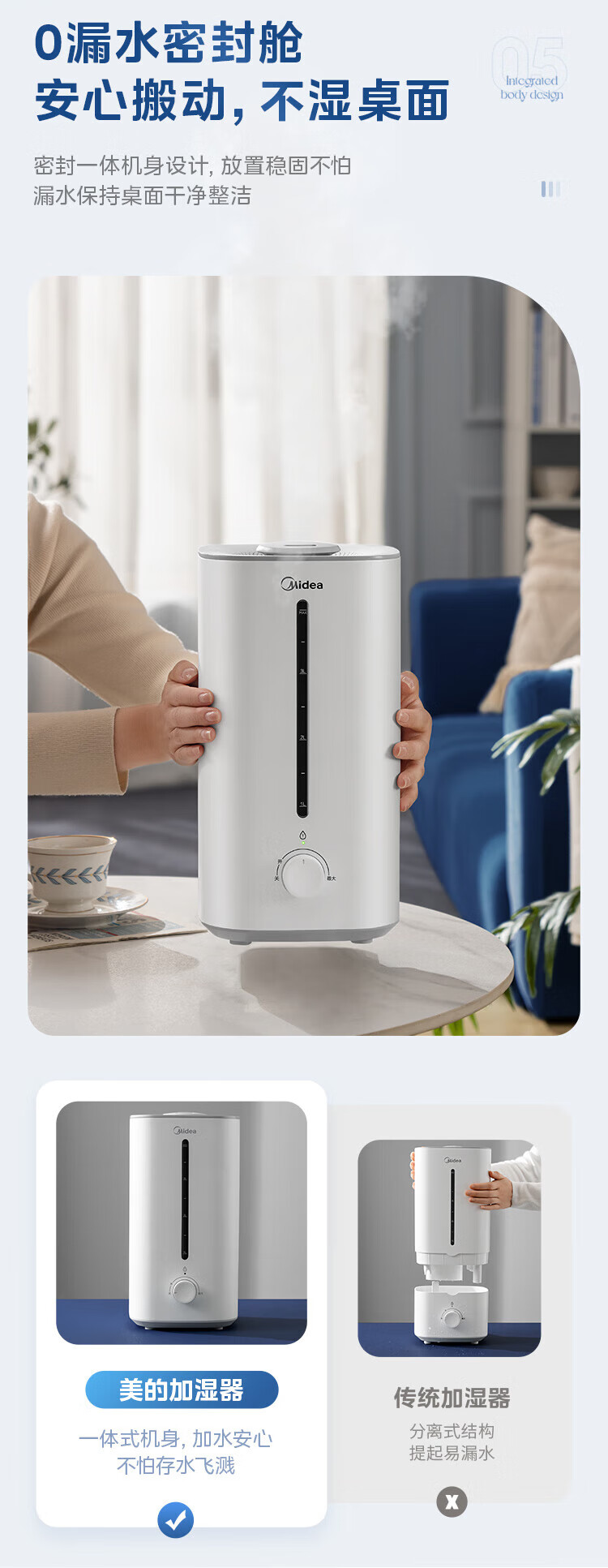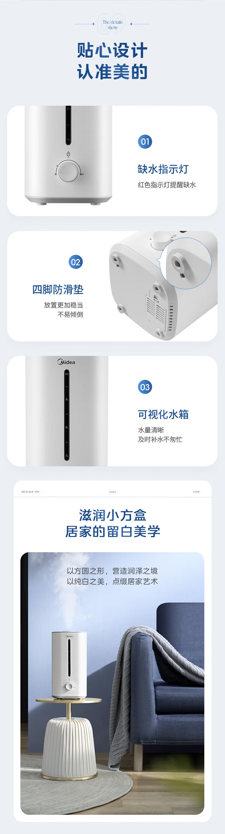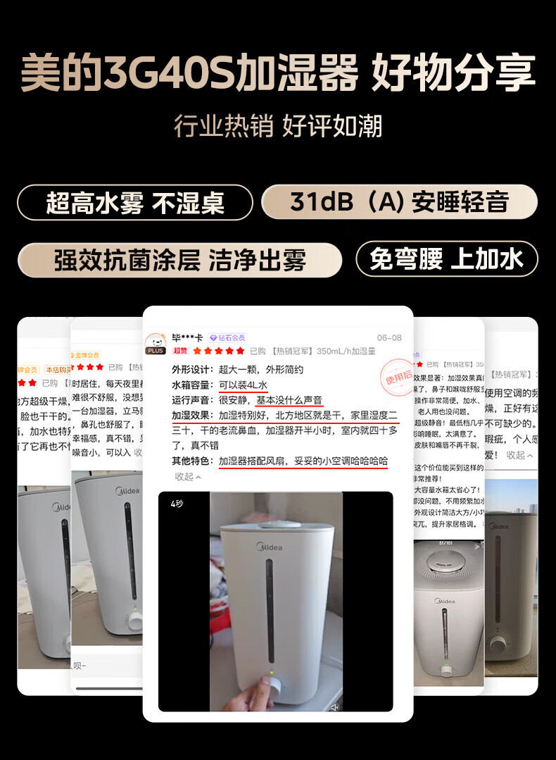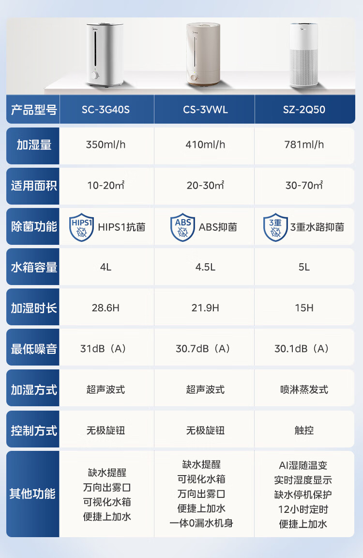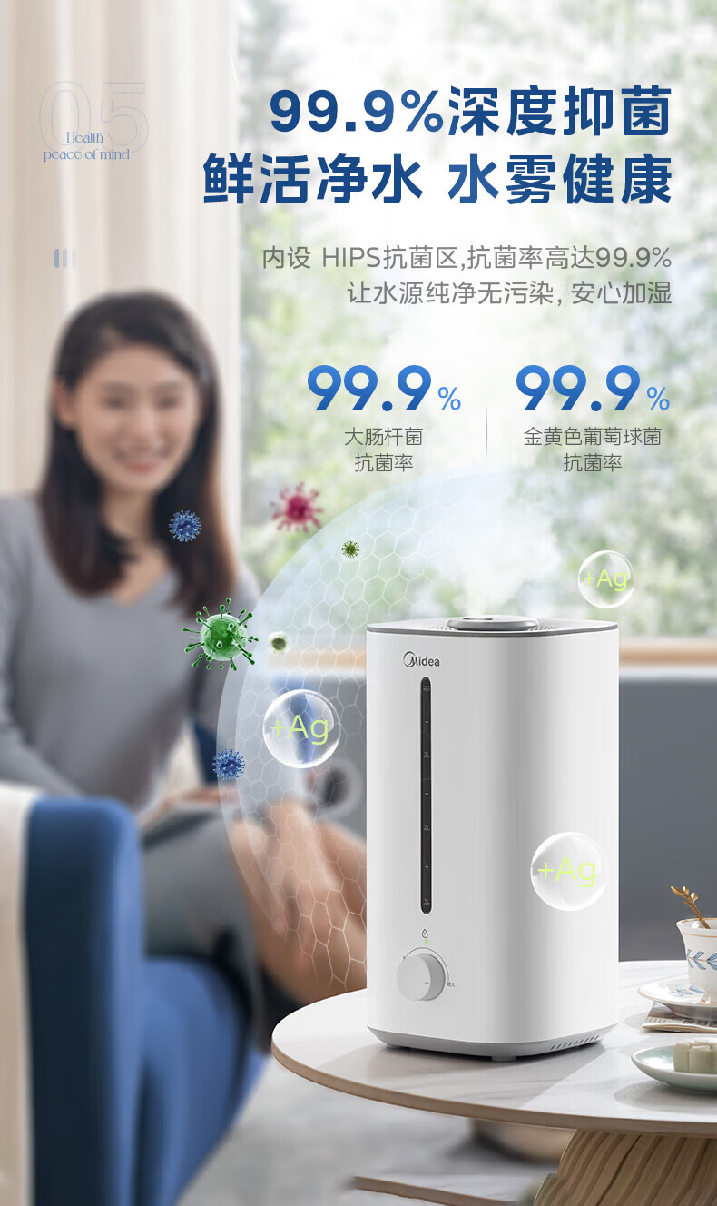 美的(Midea)加湿器空气净化家用卧室超声波大雾量宿舍静音除菌喷雾器办公室桌面雾化器 【安睡级轻音】SC-3G40S