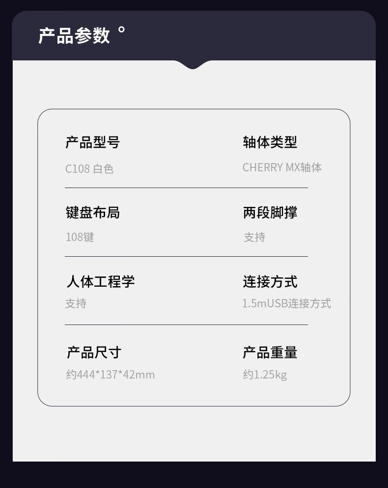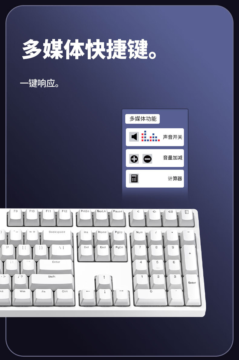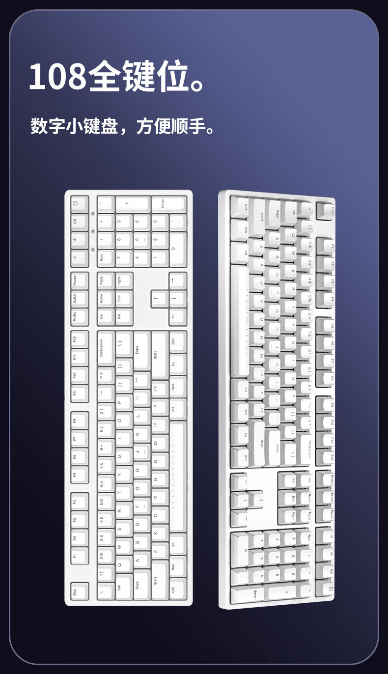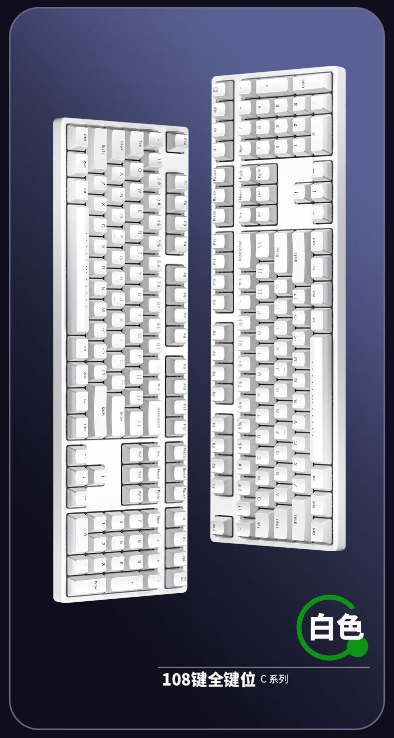ikbc C108键盘机械键盘轴樱桃键盘电脑办公游戏键盘白色有线 红轴