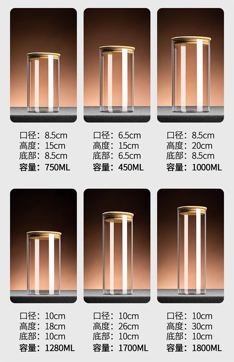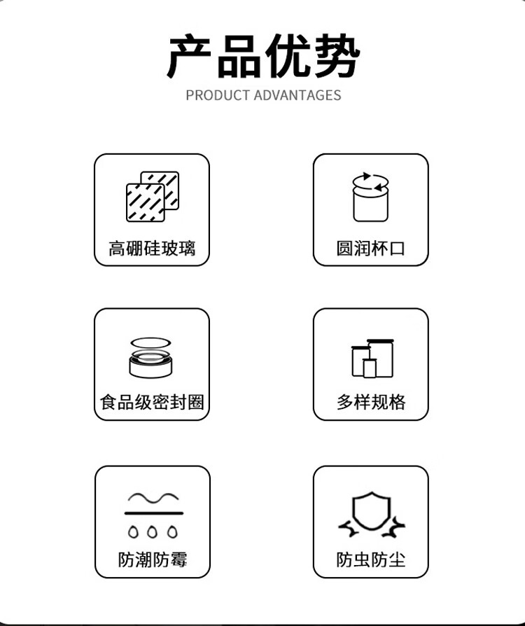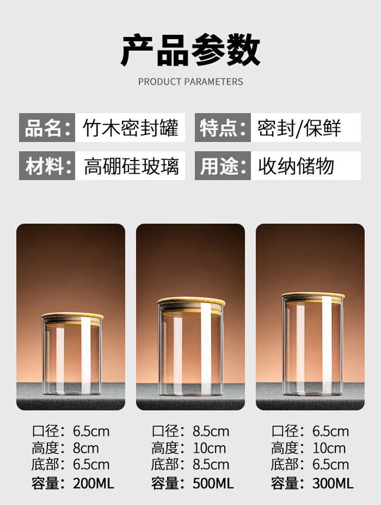 筏芯德国食品级玻璃密封罐茶叶储存罐高硼硅玻璃瓶透明样品展示瓶子 [加厚密封】200ML/6.5*8.0CM-2只