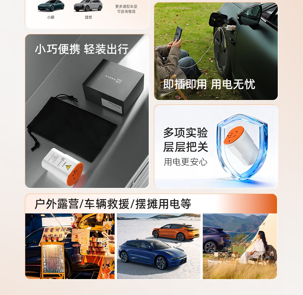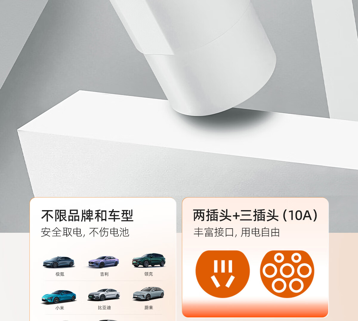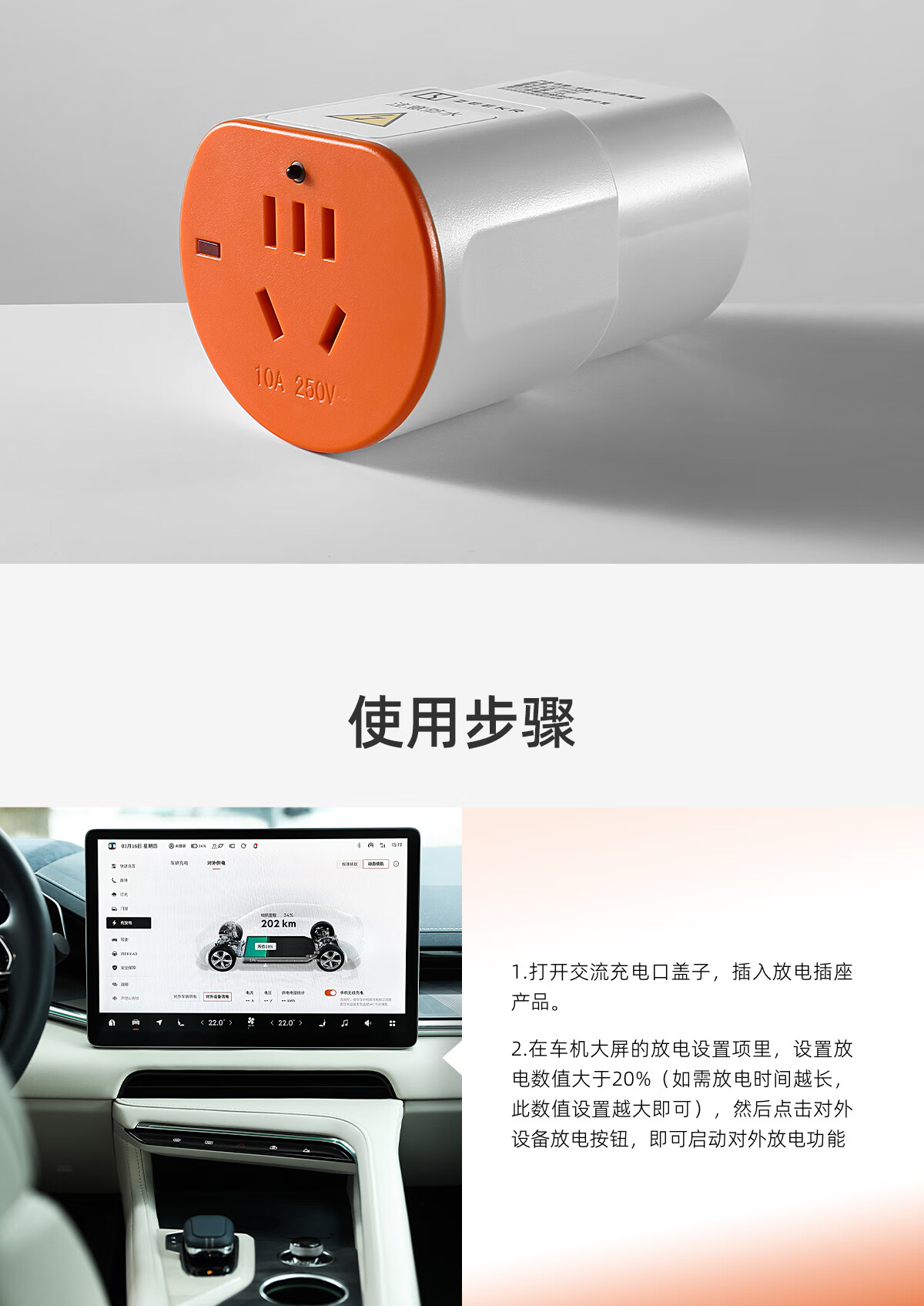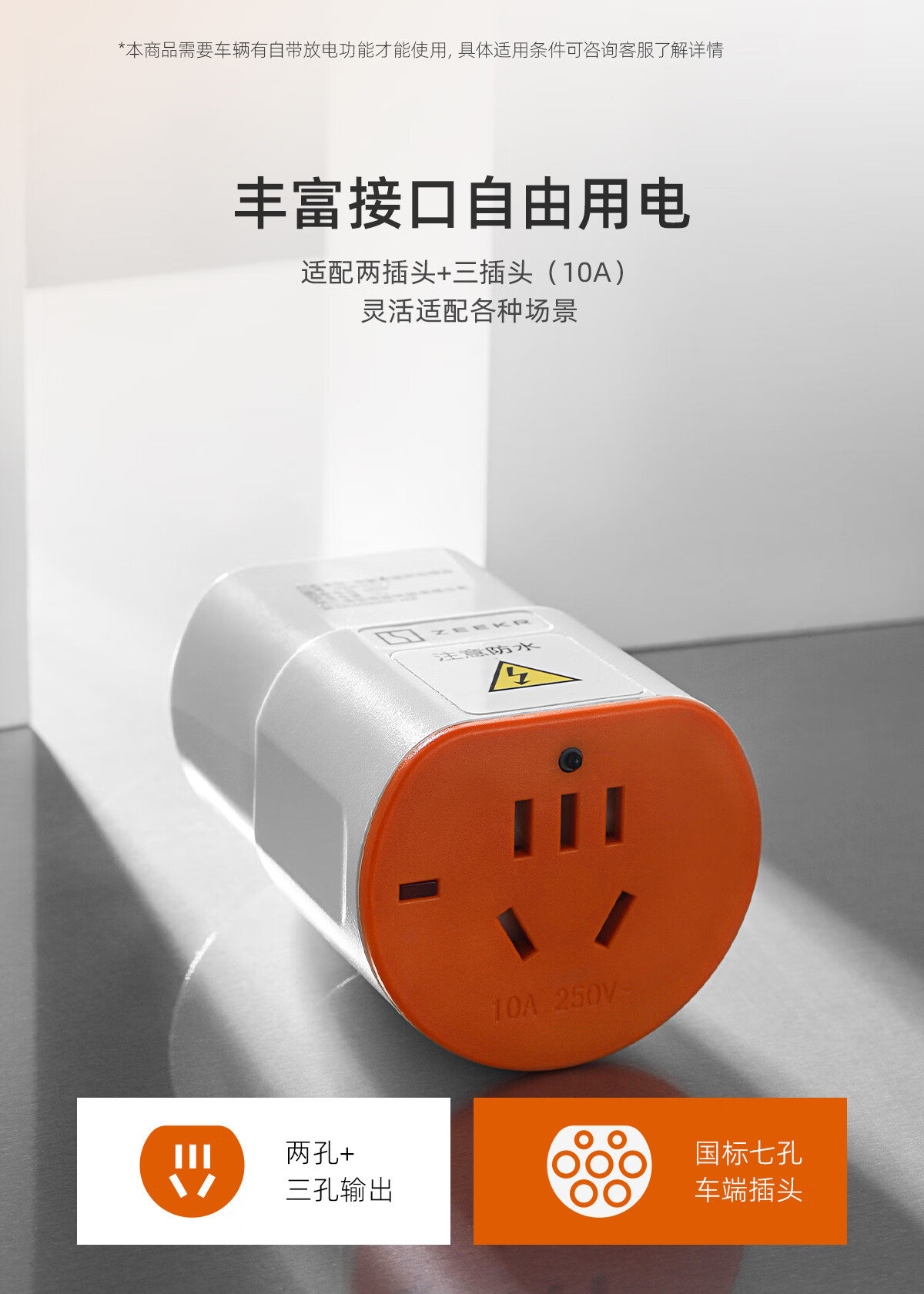 极氪外接电源插座 放电转接头 车载交流放电插座放电枪 10A放电配件