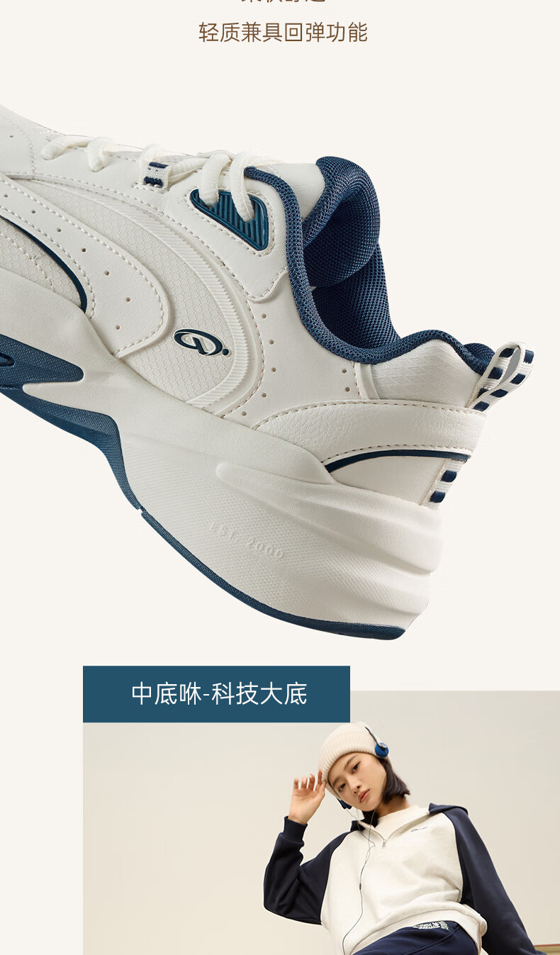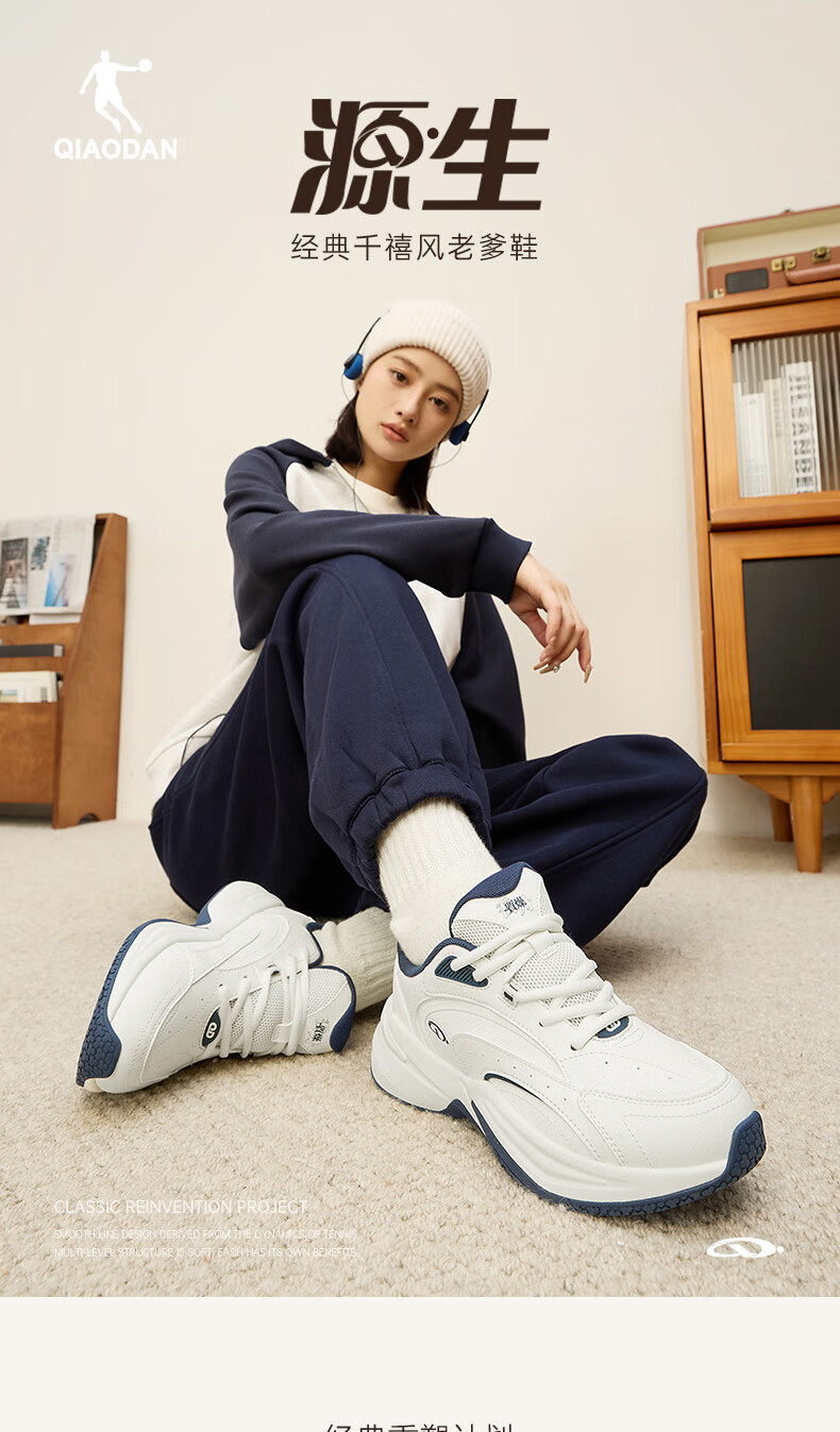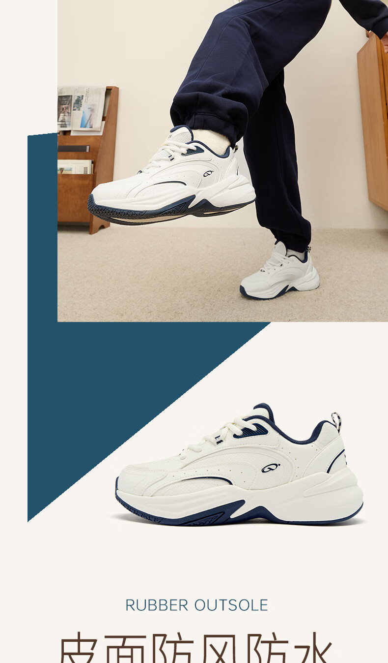 乔丹源生休闲鞋女鞋2025潮流网球鞋革面防水运动鞋白色老爹鞋子女