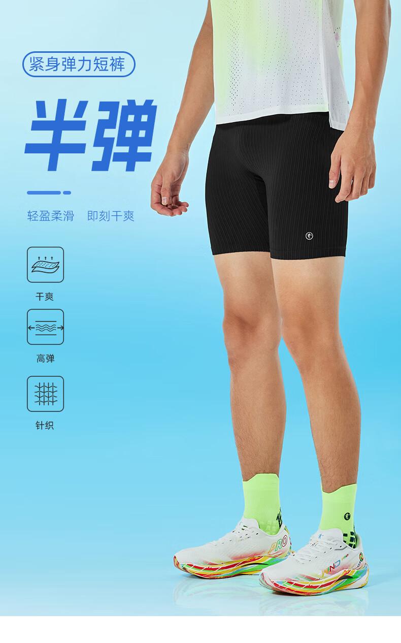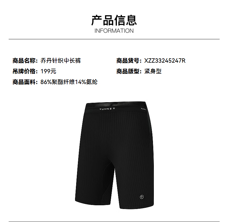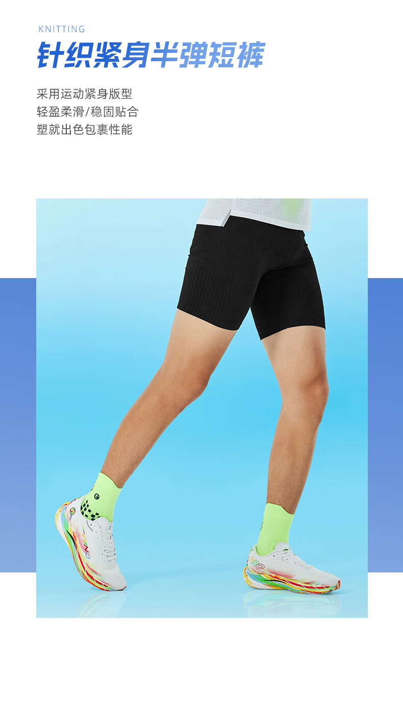 乔丹飞影半弹裤男短裤子男透气速干马拉松跑步运动裤压缩五分裤 黑色 无拉链 M
