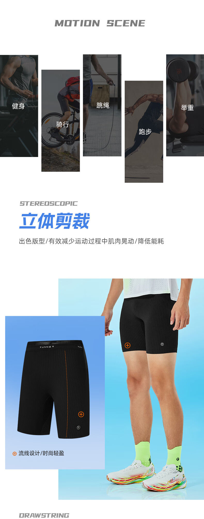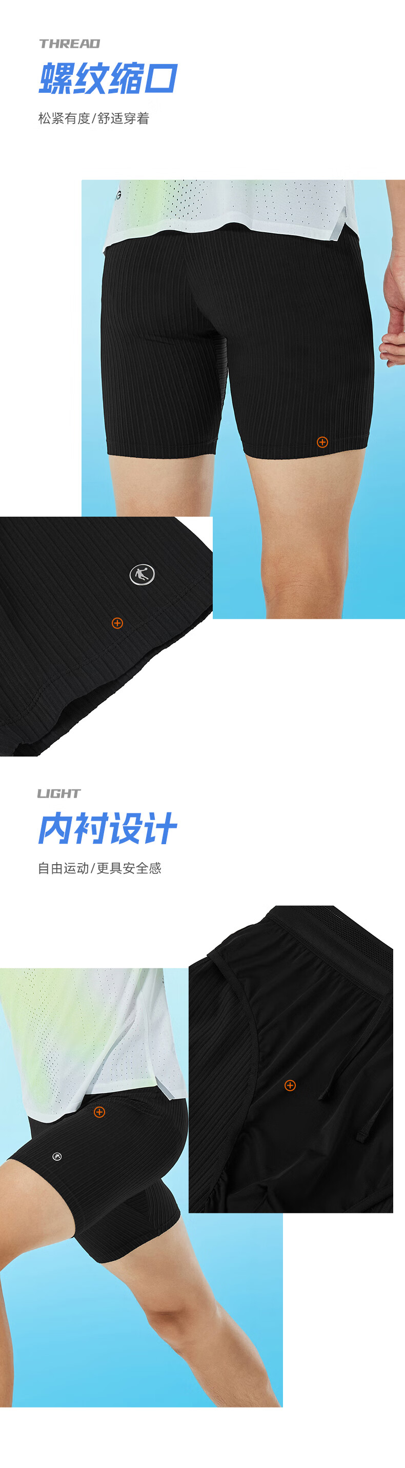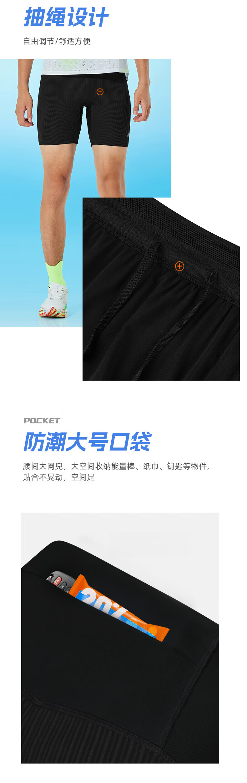乔丹飞影半弹裤男短裤子男透气速干马拉松跑步运动裤压缩五分裤 黑色 无拉链 M