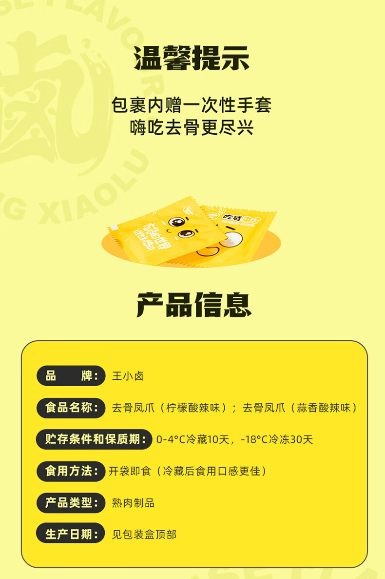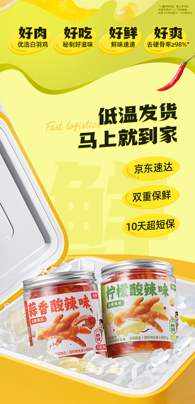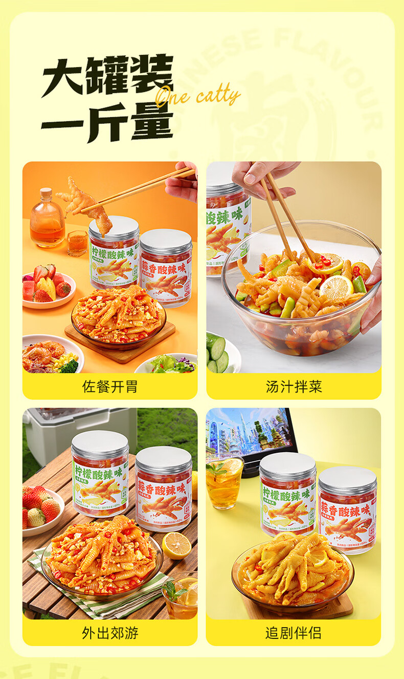 王小卤去骨凤爪 无骨鸡爪 罐装 休闲零食 鸡爪 柠檬酸辣味500g*1罐