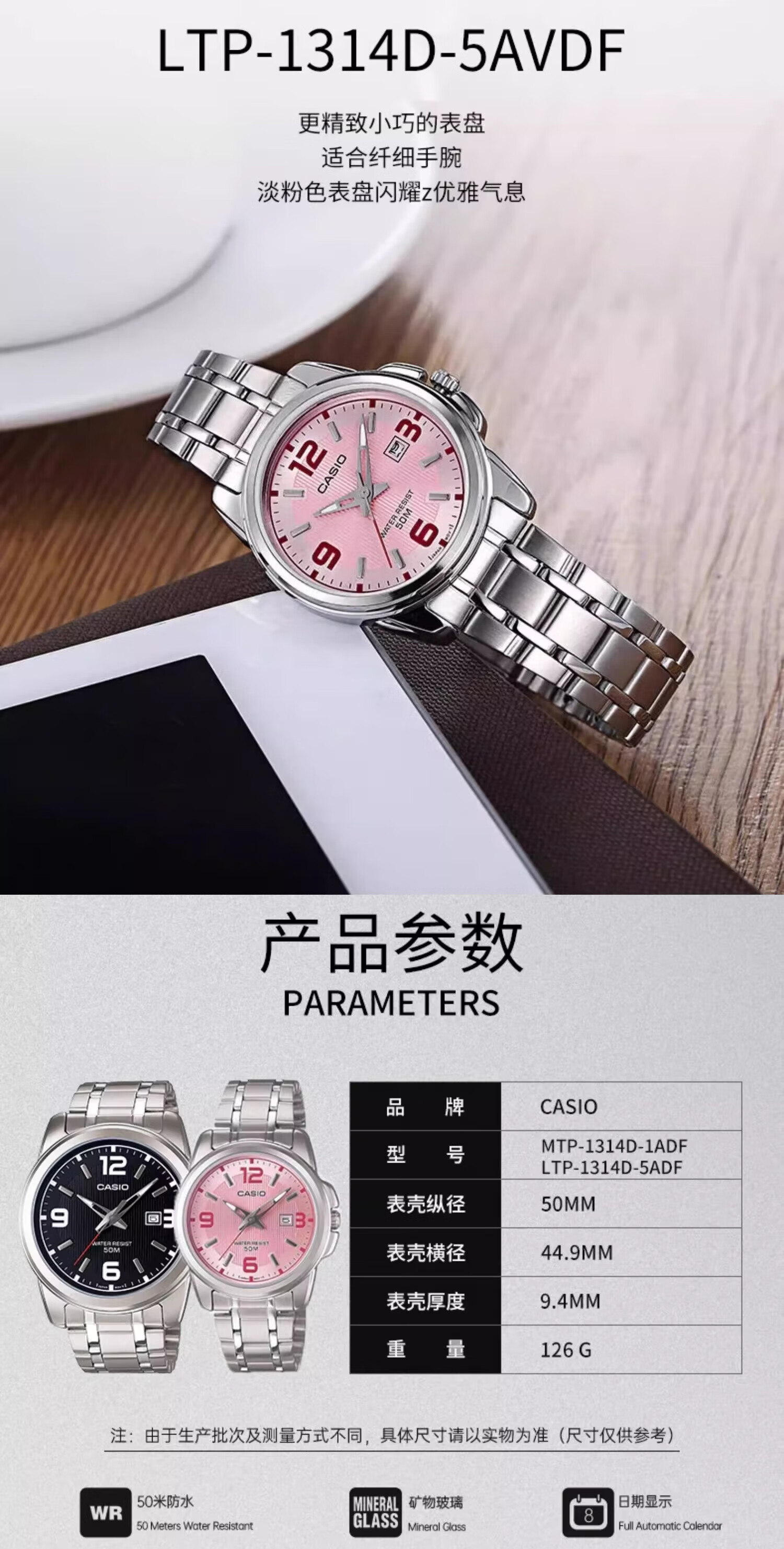 卡西欧(CASIO)碎碎冰手表 休闲简约冰蓝冰粉盘小表女士电子表 圣诞礼物送女友 LTP-1391D-4AVDF
