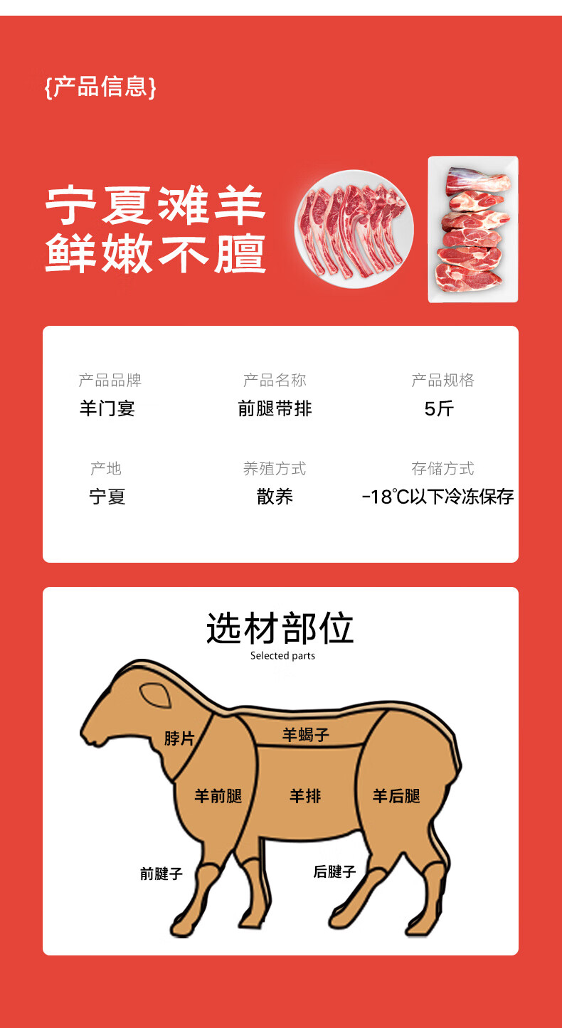 羊门宴 宁夏滩羊 新鲜羊腿羊排5斤礼盒 手抓羊肉盐滩羔羊 清真源头直发