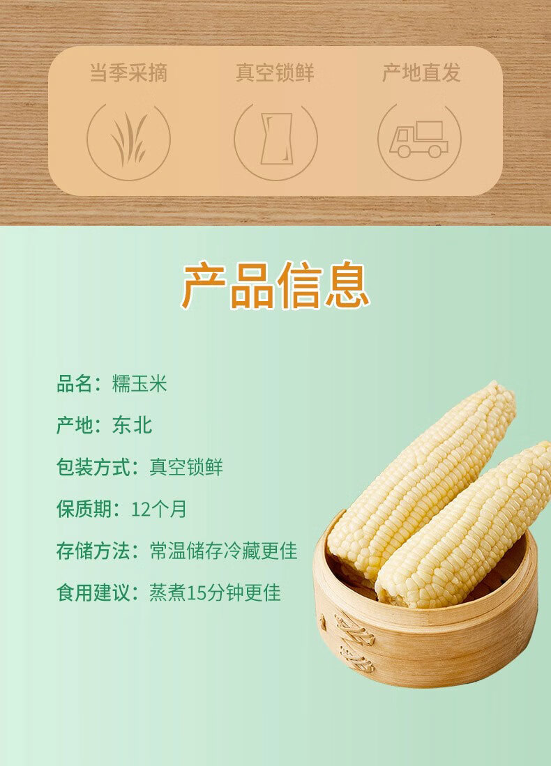 佟创东北白糯玉米棒 新鲜甜糯玉米棒 代餐轻食真空包装黏粘玉米 东北白糯玉米净重250g*10棒/箱