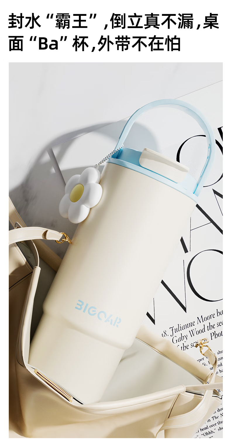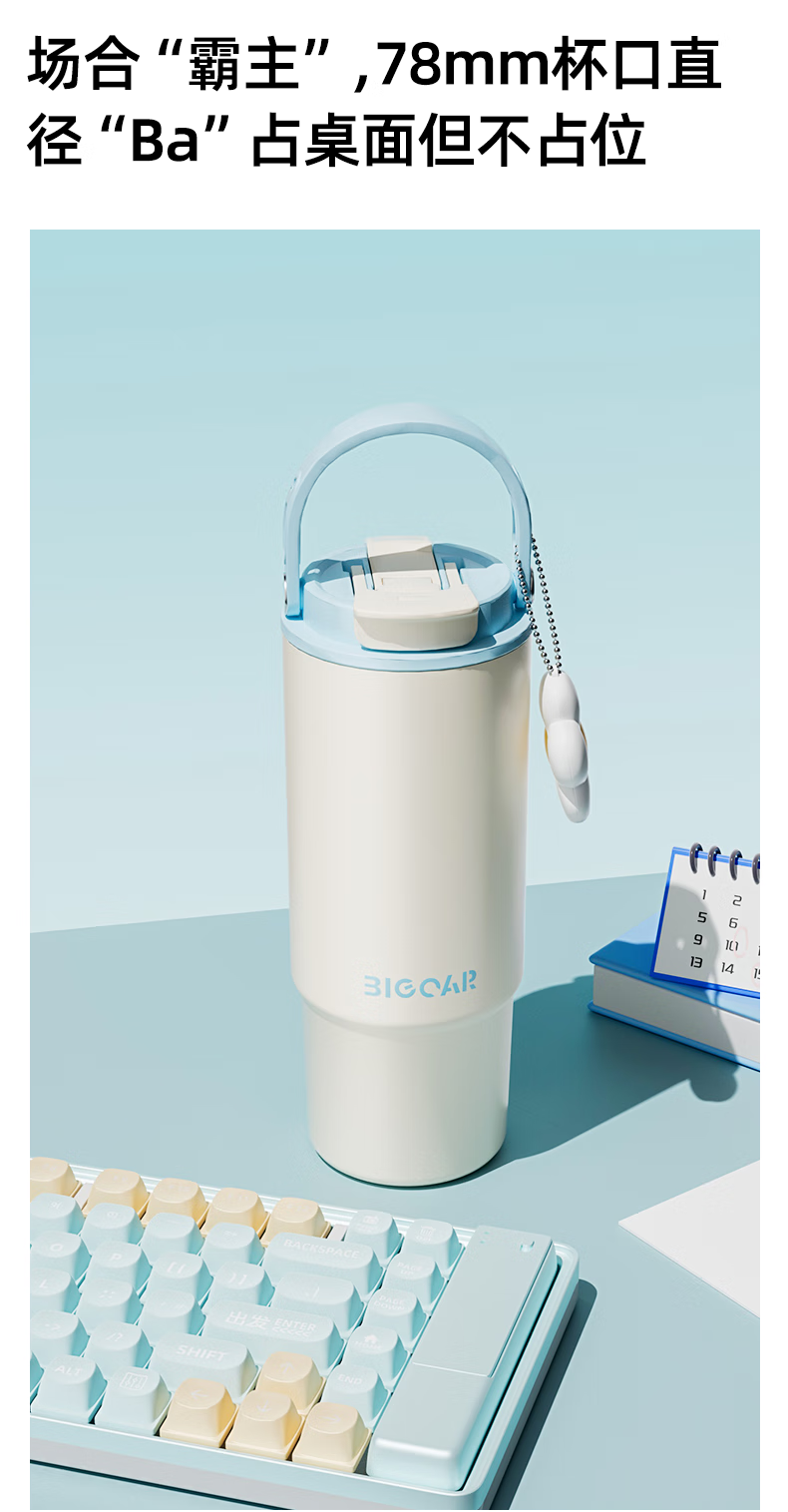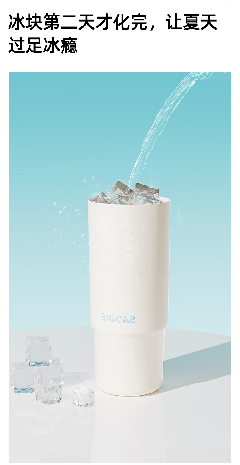 大卡 保温杯男女生大容量冰霸杯高颜值316不锈钢陶瓷内胆茶水分离水杯 薄荷冰沙880ml【陶瓷覆层+茶仓】