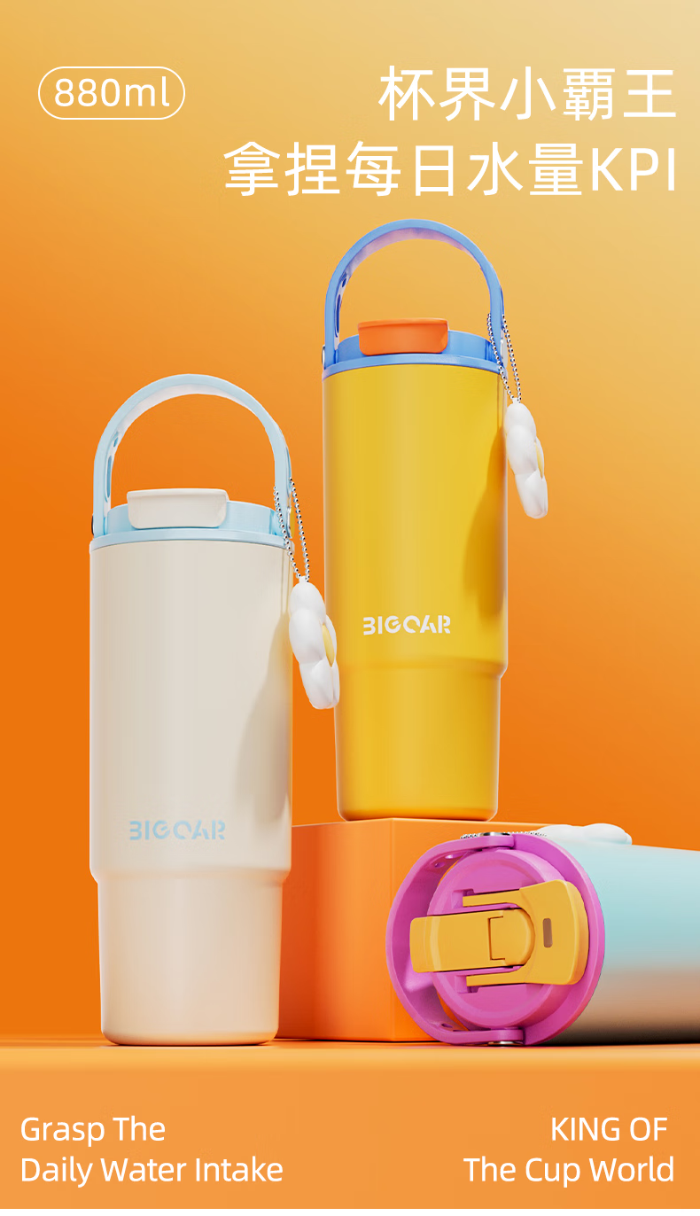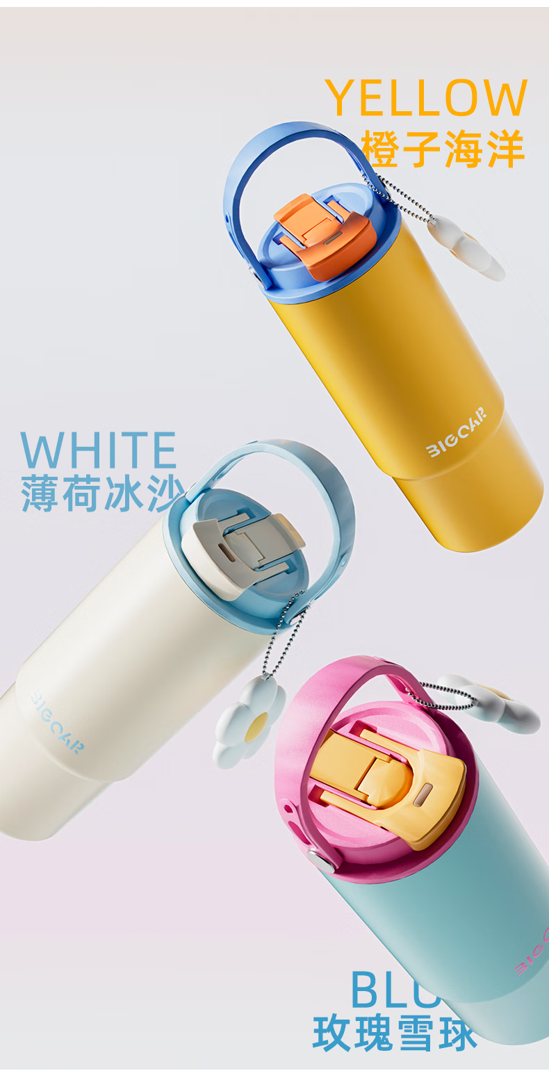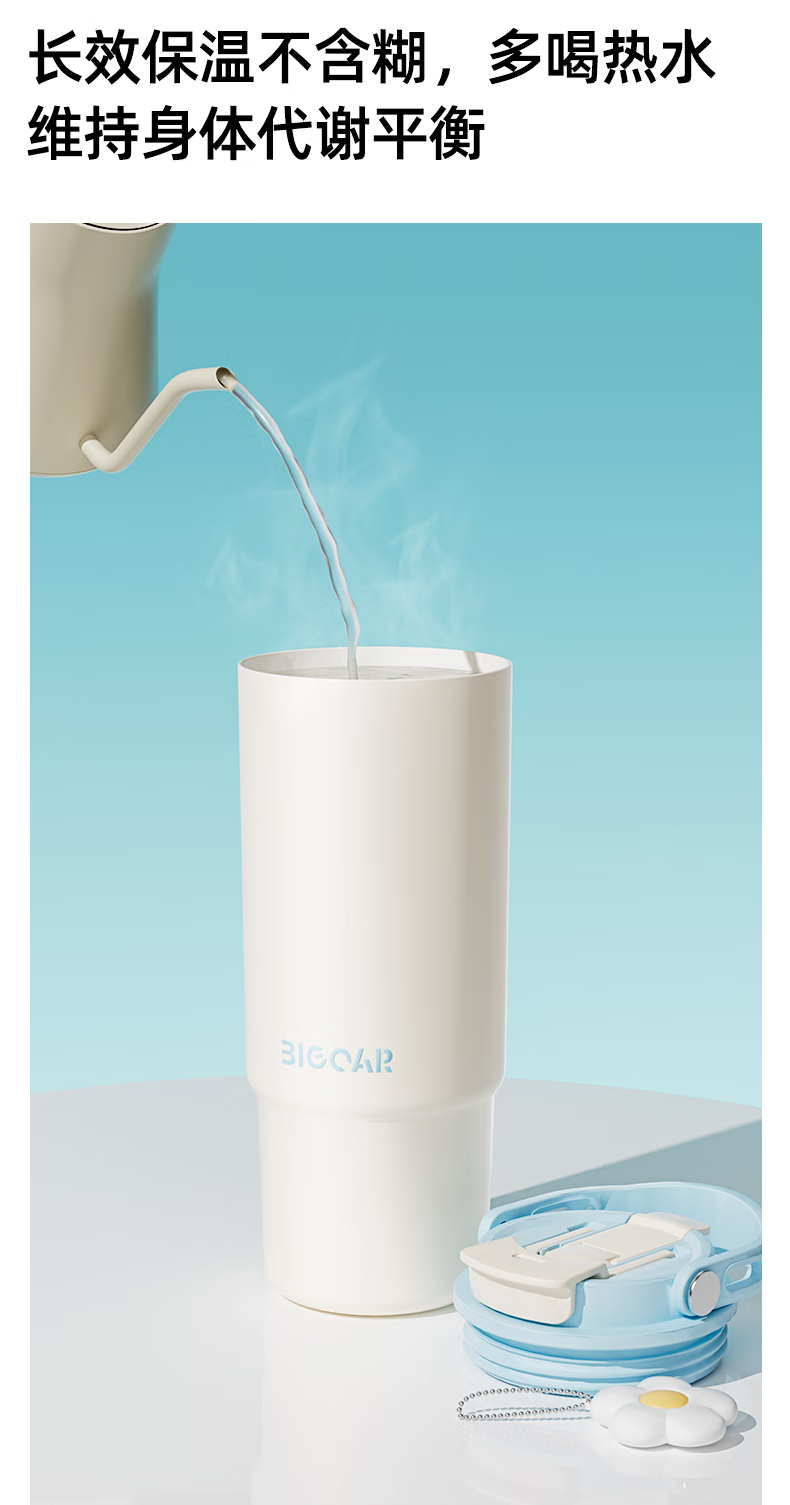 大卡 保温杯男女生大容量冰霸杯高颜值316不锈钢陶瓷内胆茶水分离水杯 薄荷冰沙880ml【陶瓷覆层+茶仓】