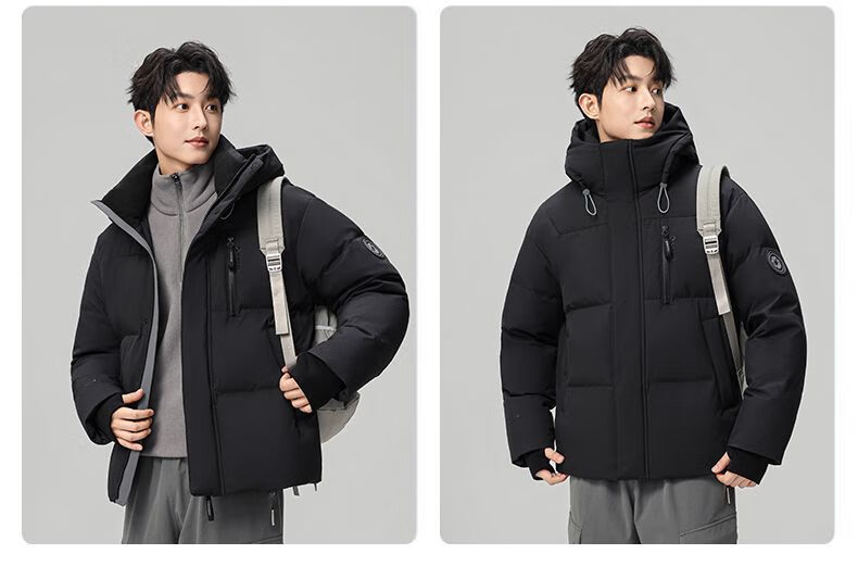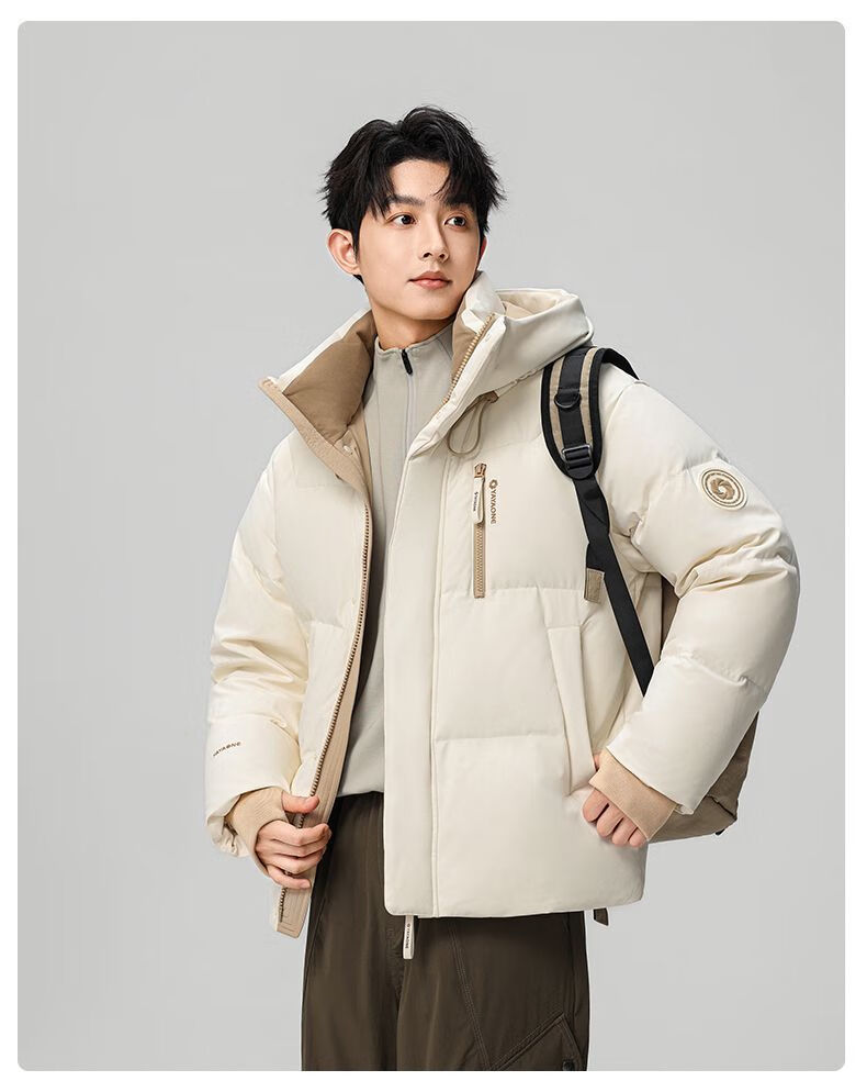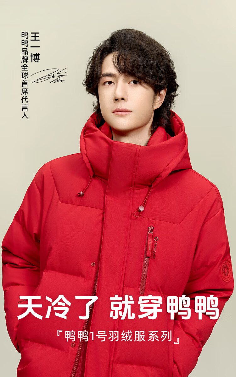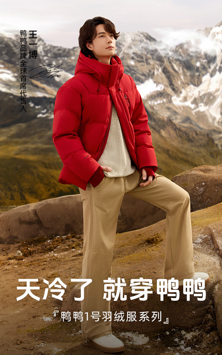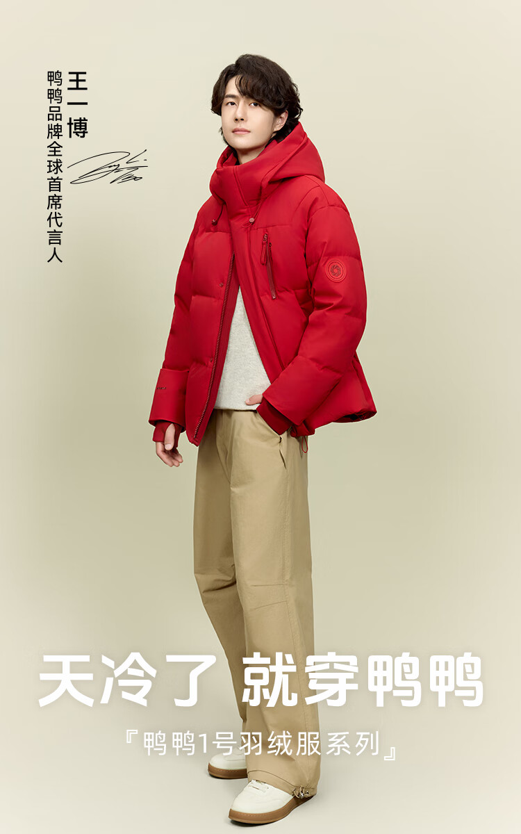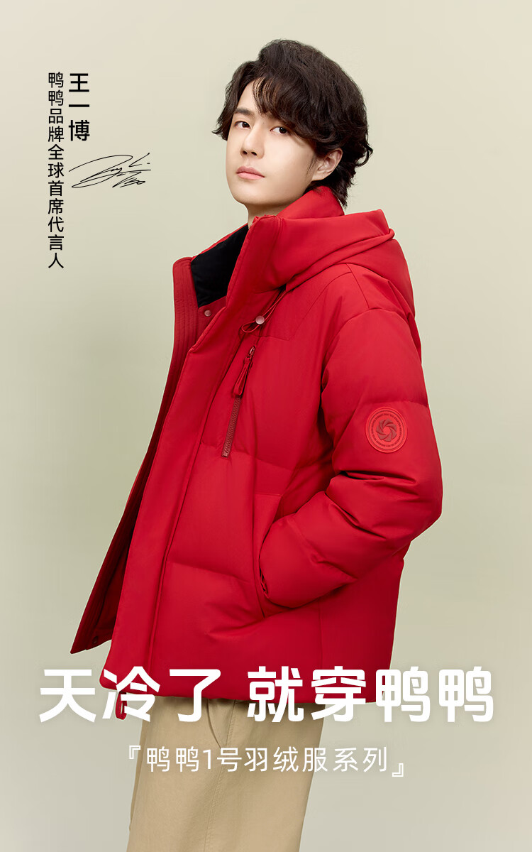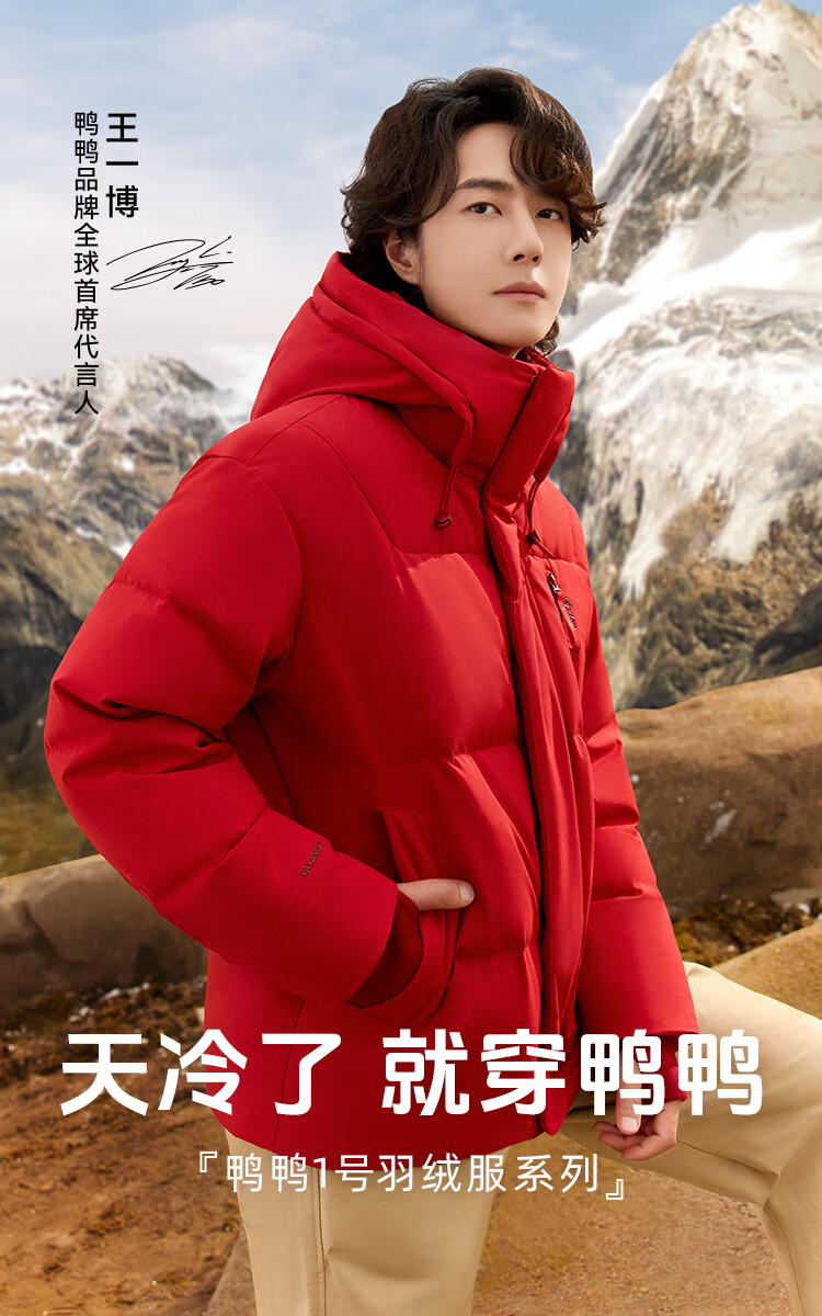 鸭鸭王一博明星同款男士羽绒服短款连帽2025冬季青年休闲加厚圣诞外套