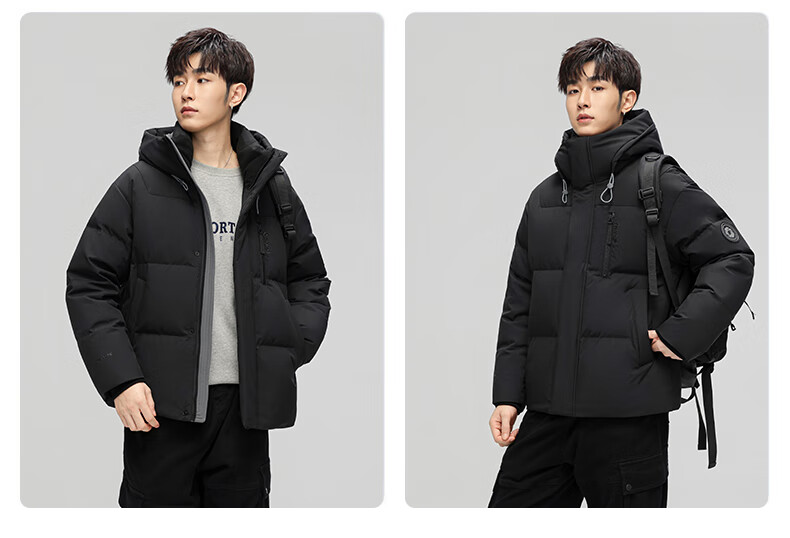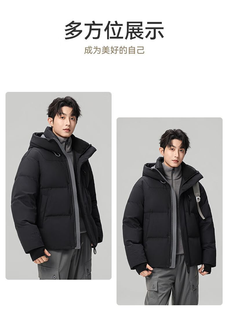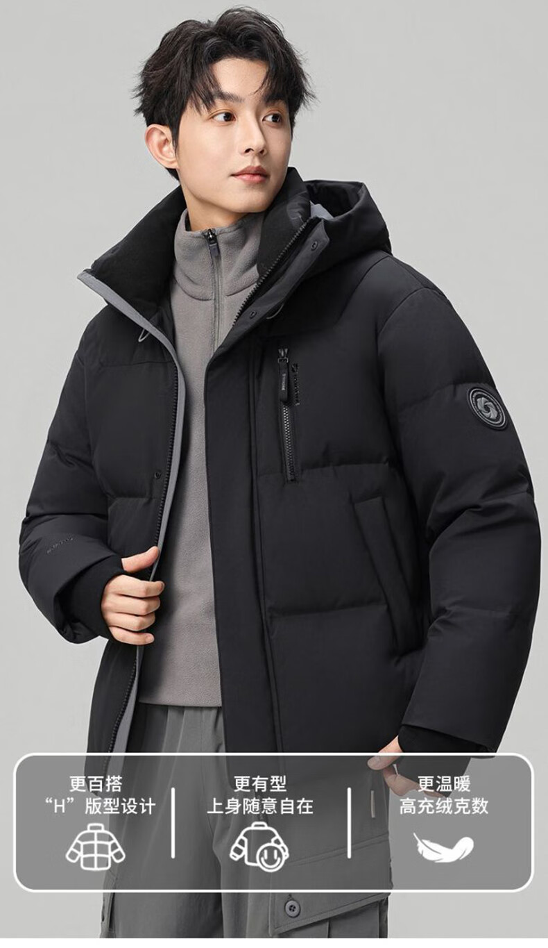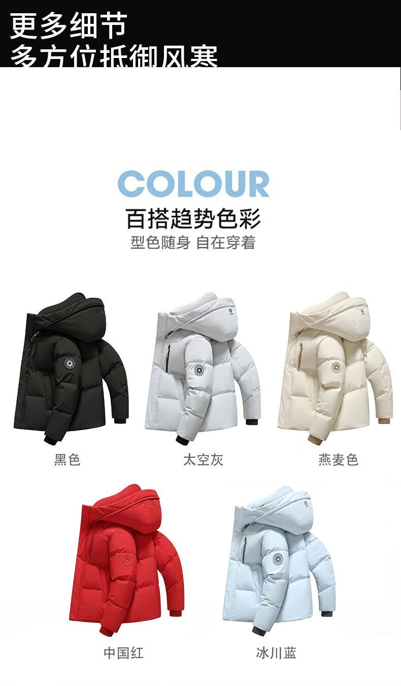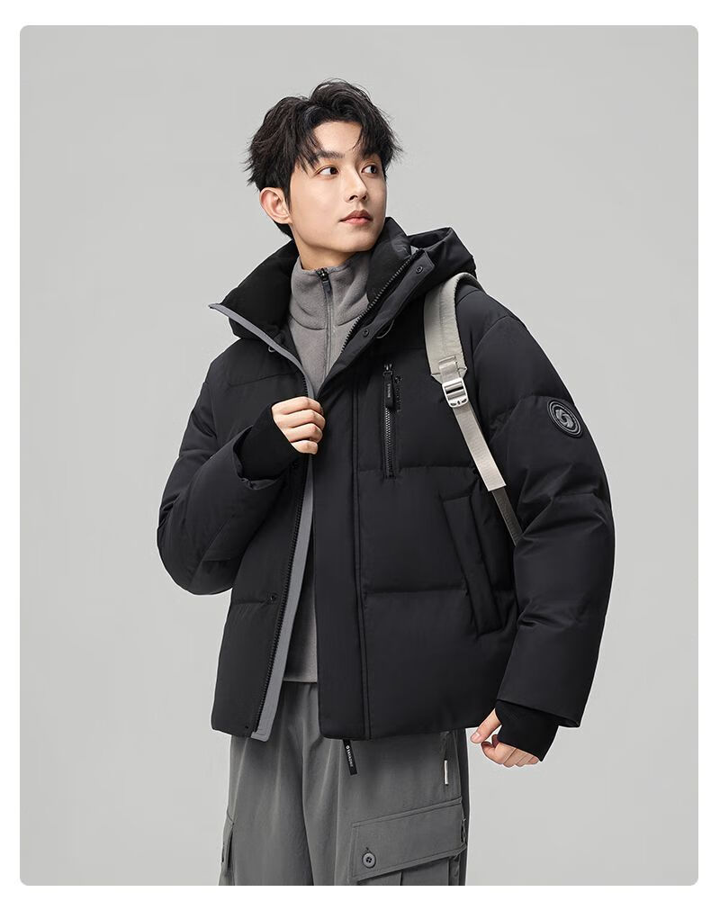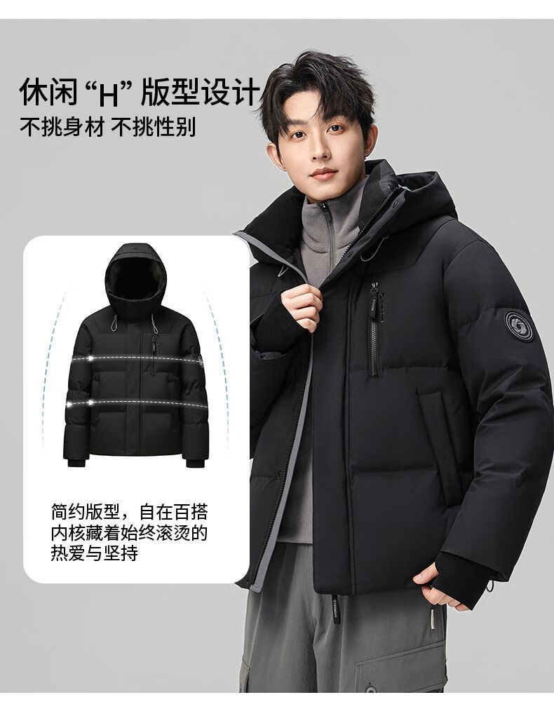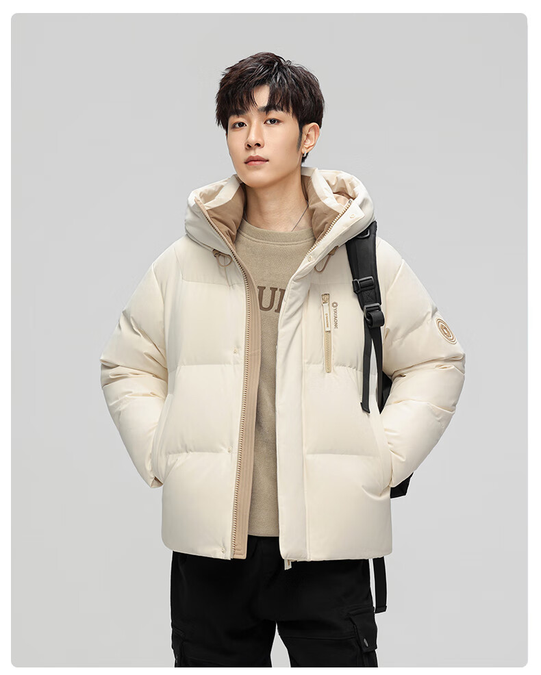 鸭鸭王一博明星同款男士羽绒服短款连帽2025冬季青年休闲加厚圣诞外套