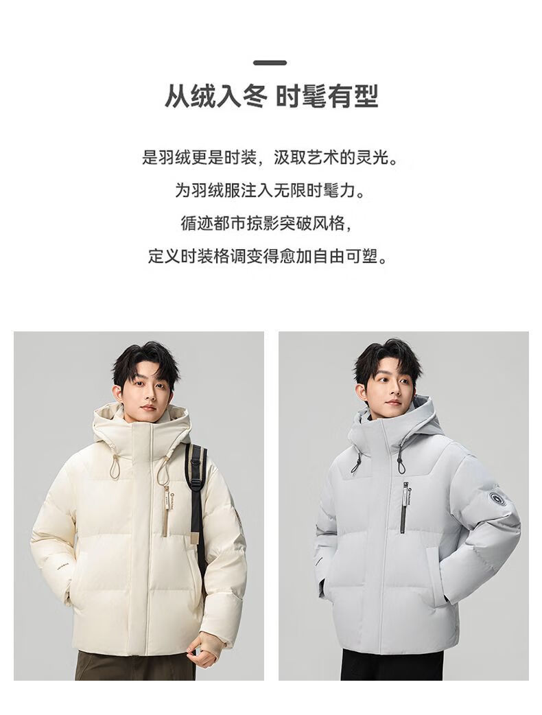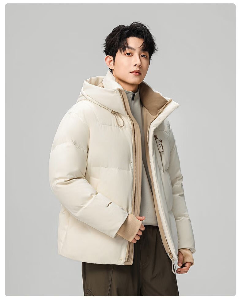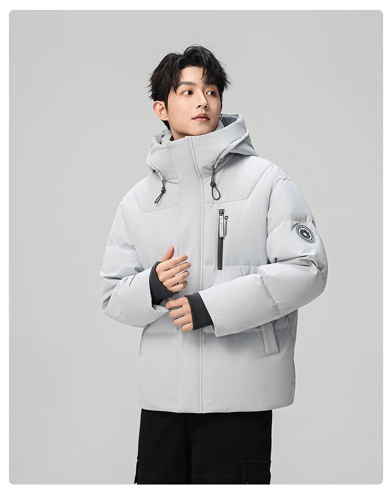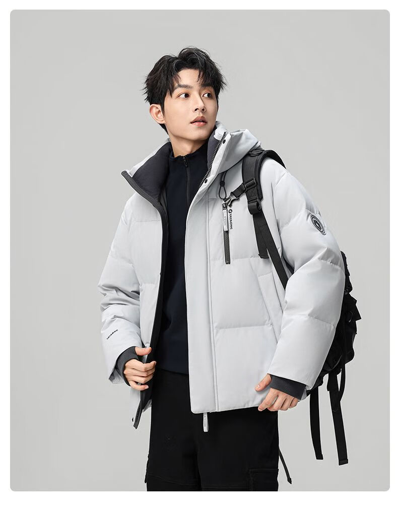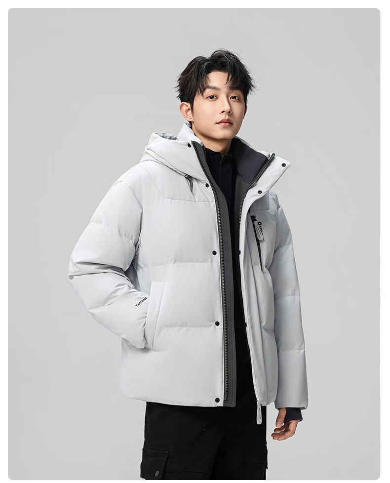 啄木鸟(TUCANO)羽绒服男款外套冬季加厚保暖防寒休闲连帽面包服上衣 灰白 XL