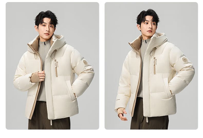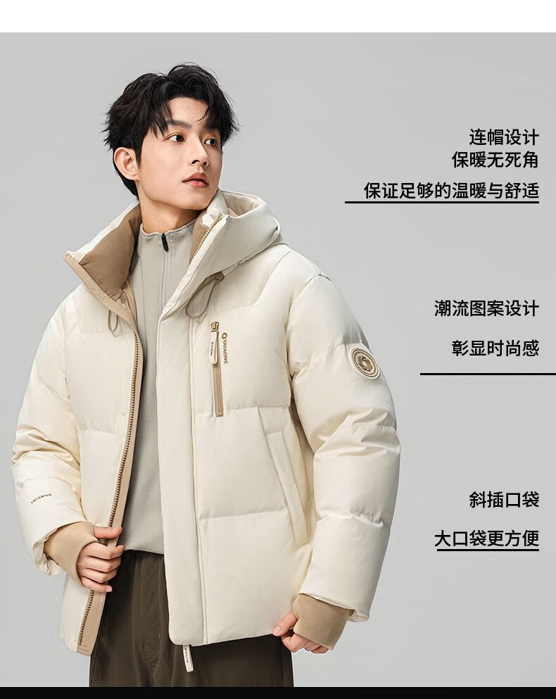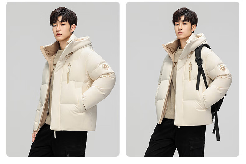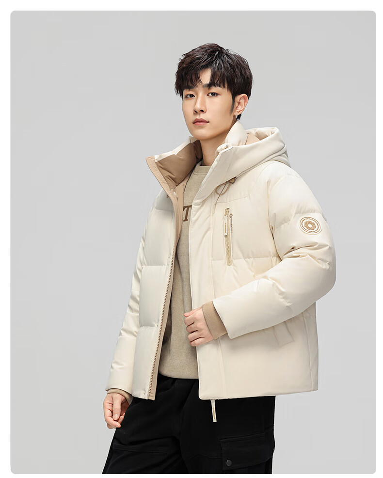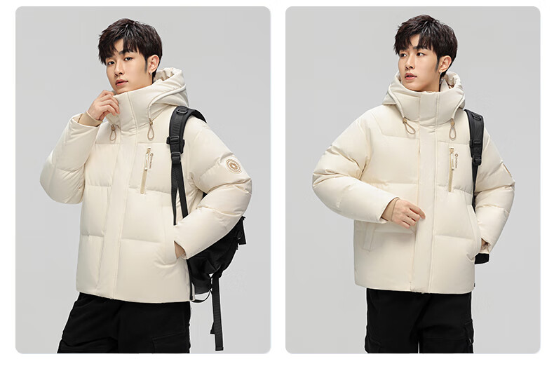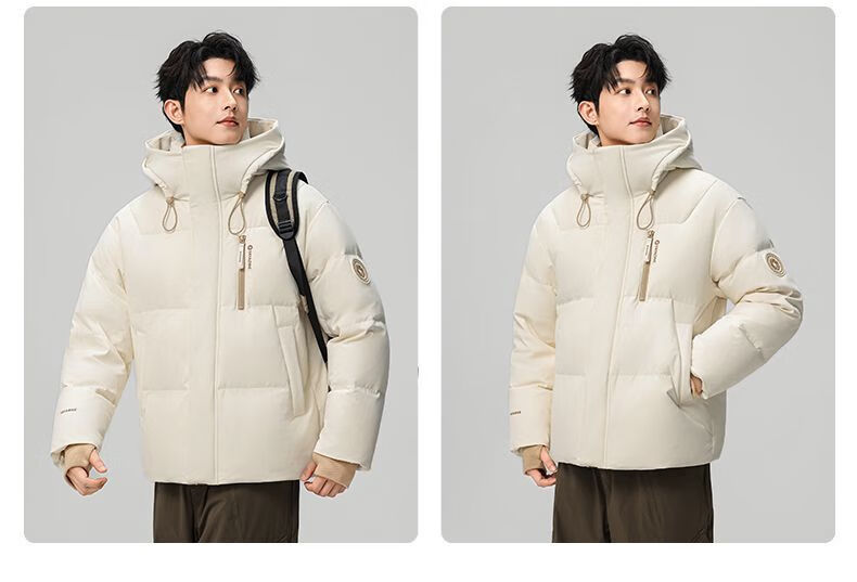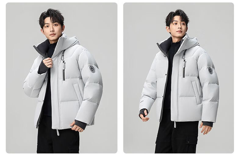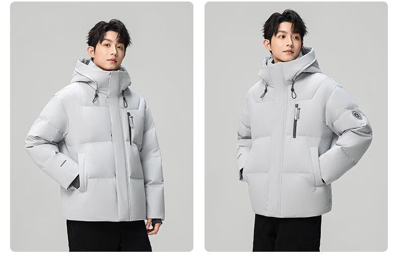 啄木鸟(TUCANO)羽绒服男款外套冬季加厚保暖防寒休闲连帽面包服上衣 灰白 XL