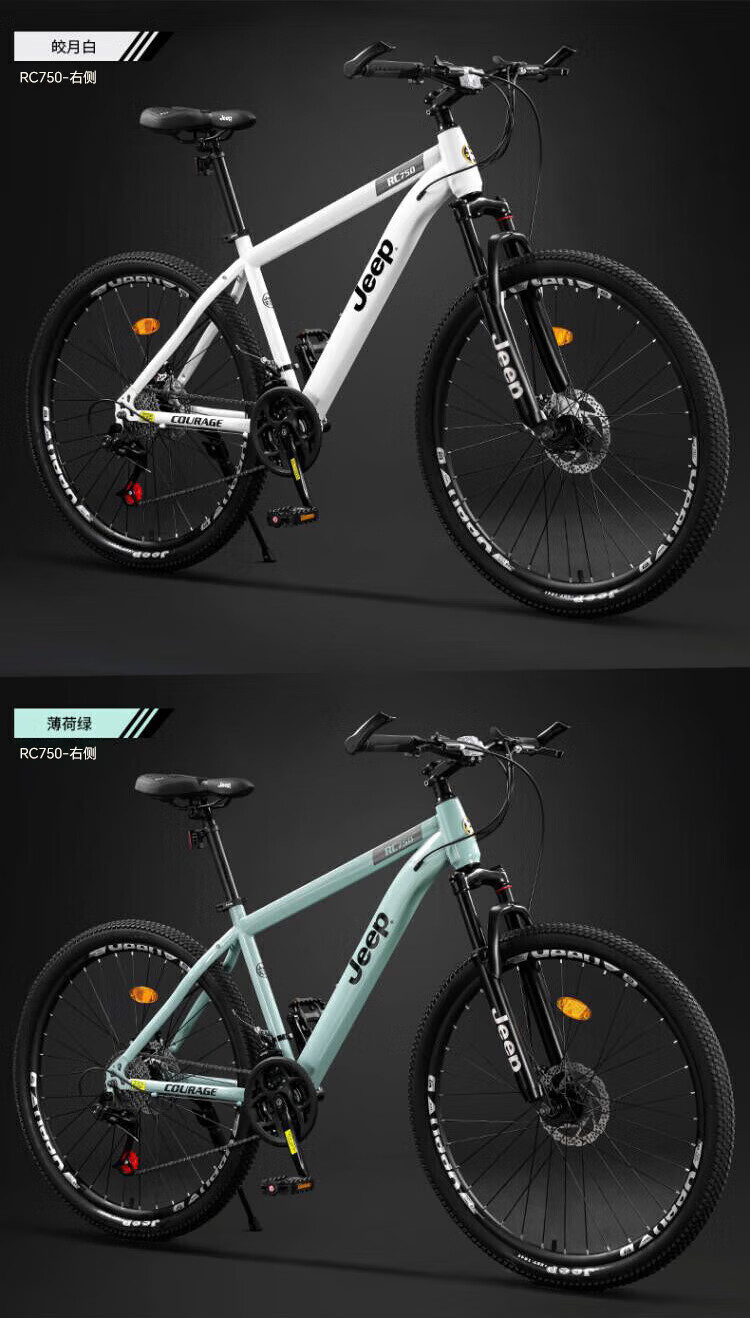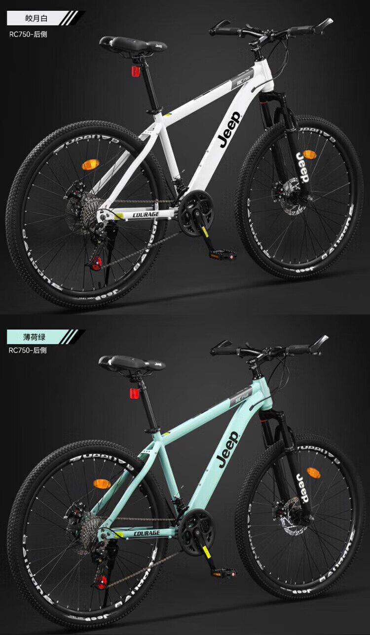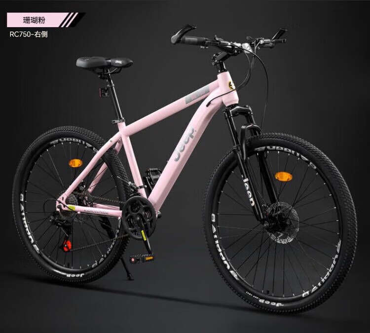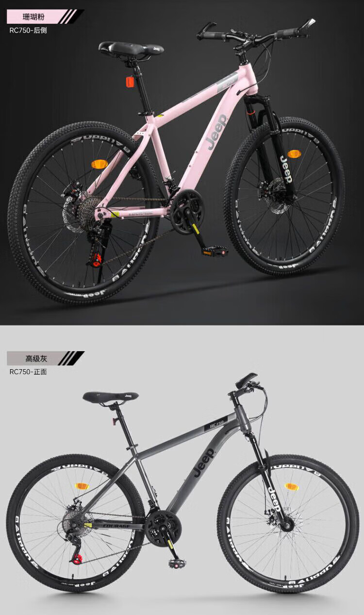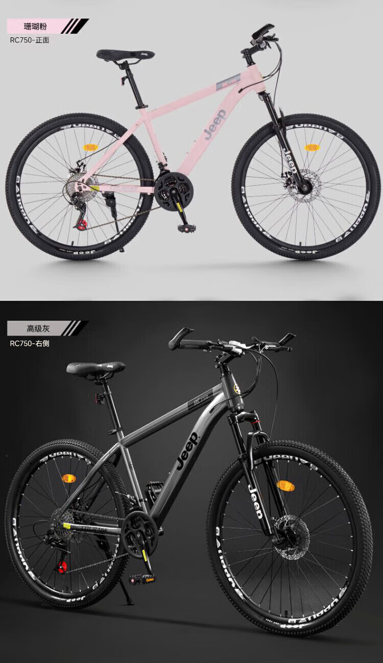Jeep吉普自行车山地车女款成人可锁死变速碟刹男学生运动通勤车-RC750 RC750-樱花粉 26寸(适合身高155-180cm) 24速-钢架-经济实用