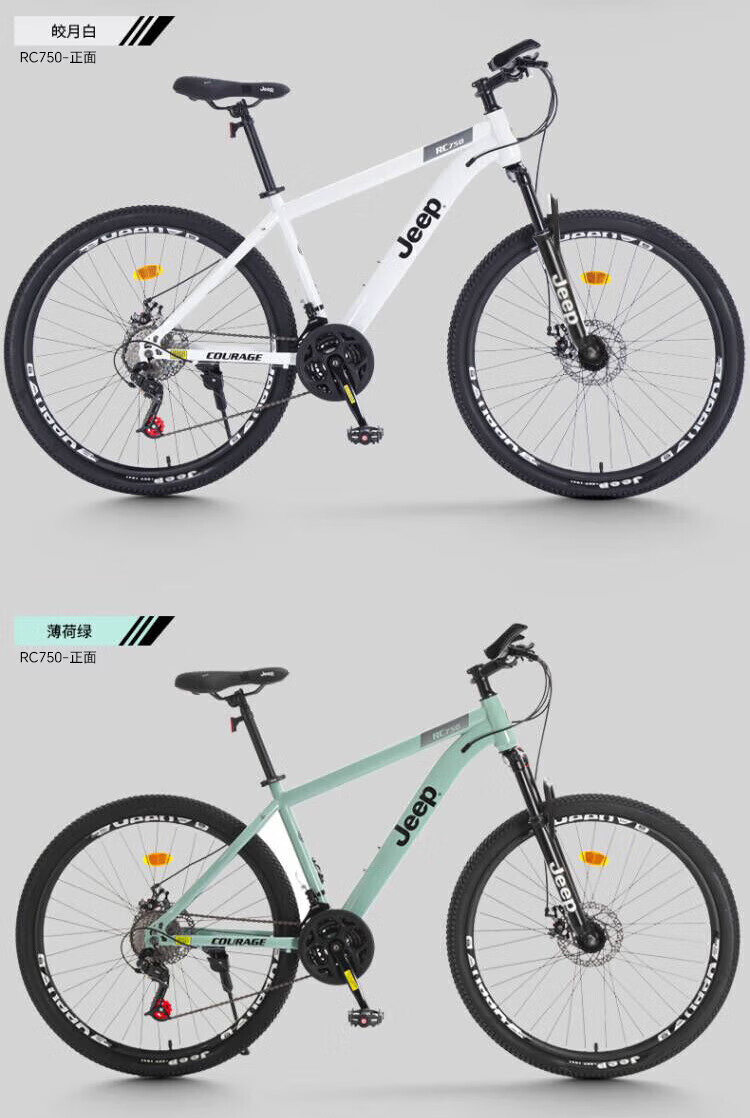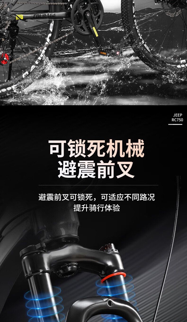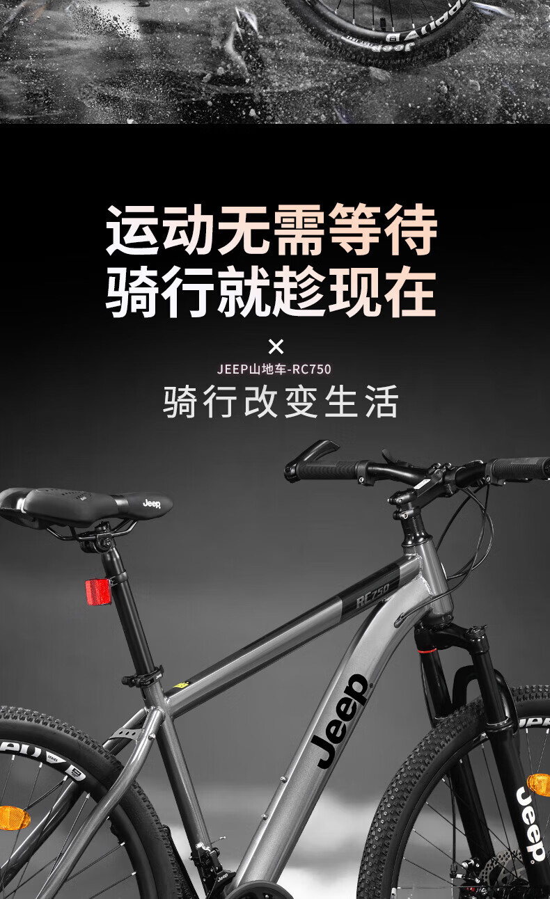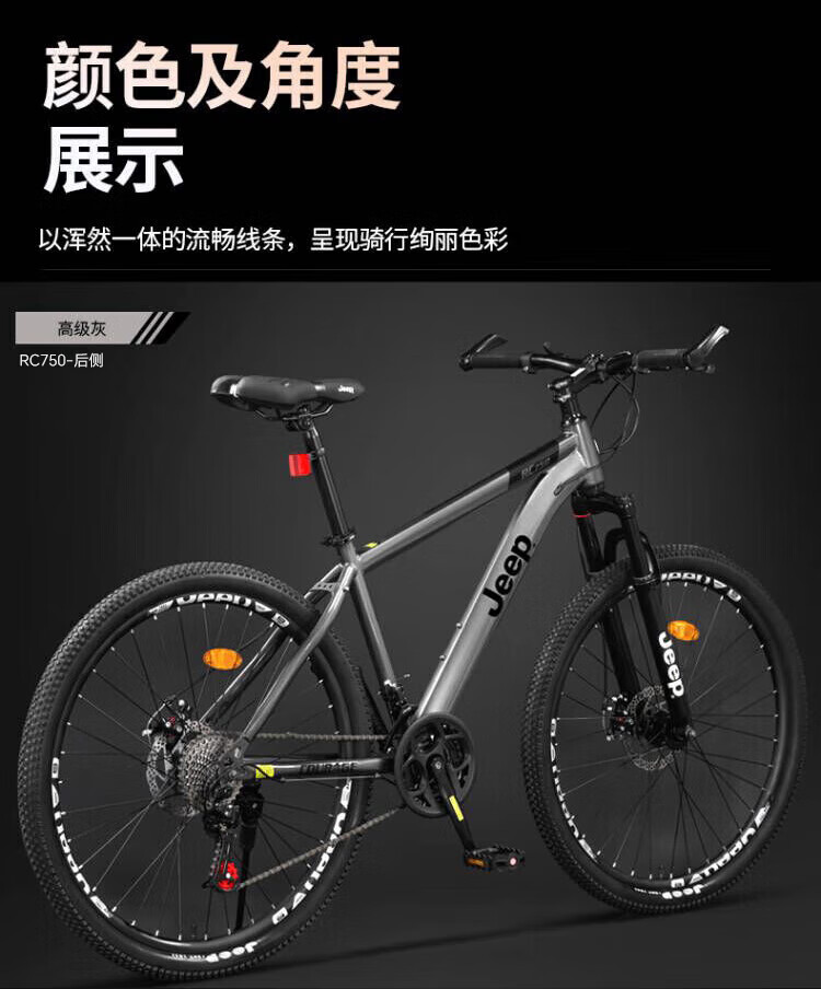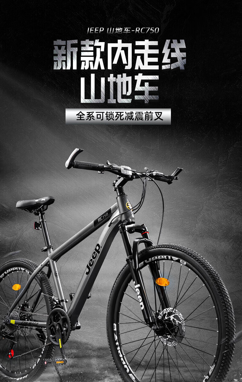 Jeep吉普自行车山地车女款成人可锁死变速碟刹男学生运动通勤车-RC750 RC750-樱花粉 26寸(适合身高155-180cm) 24速-钢架-经济实用
