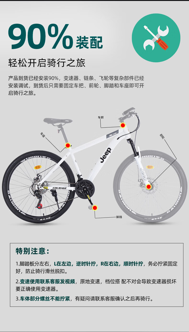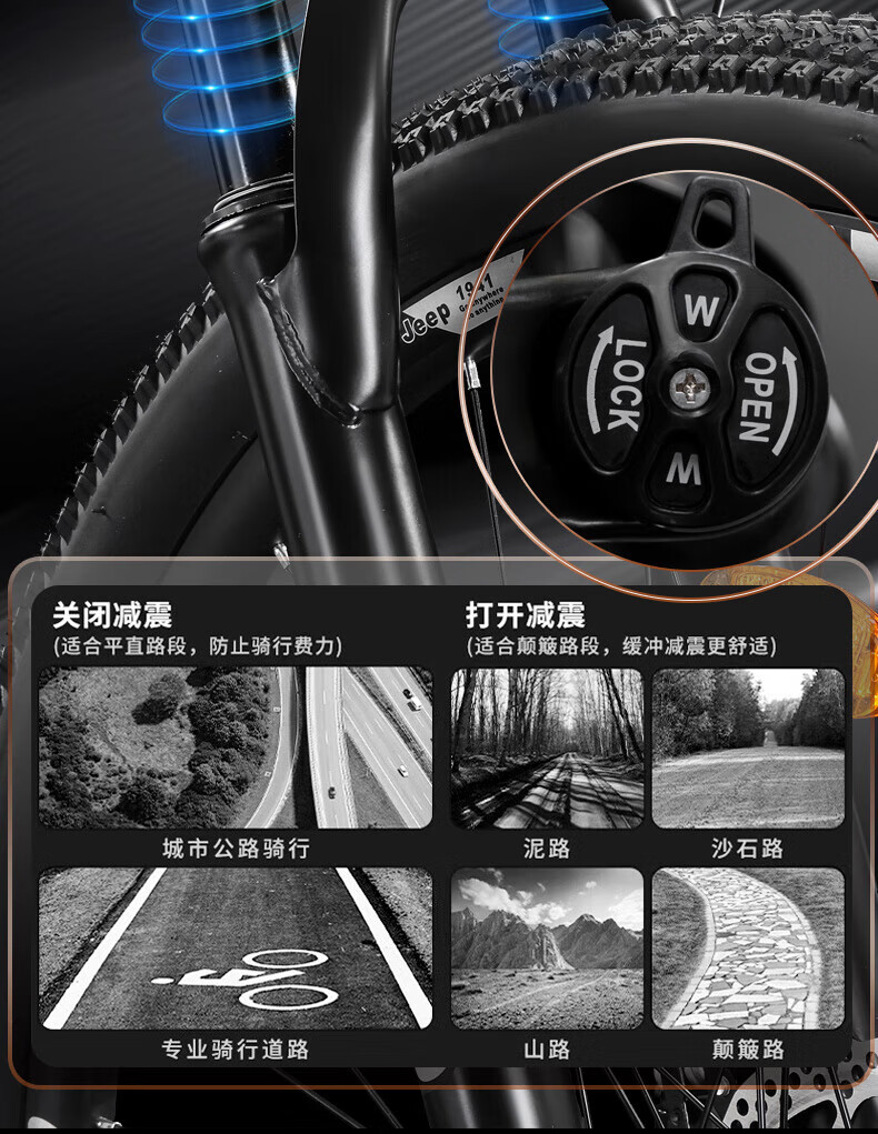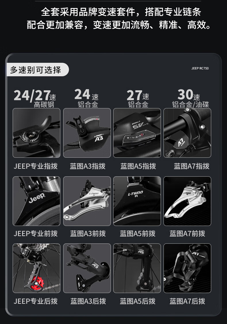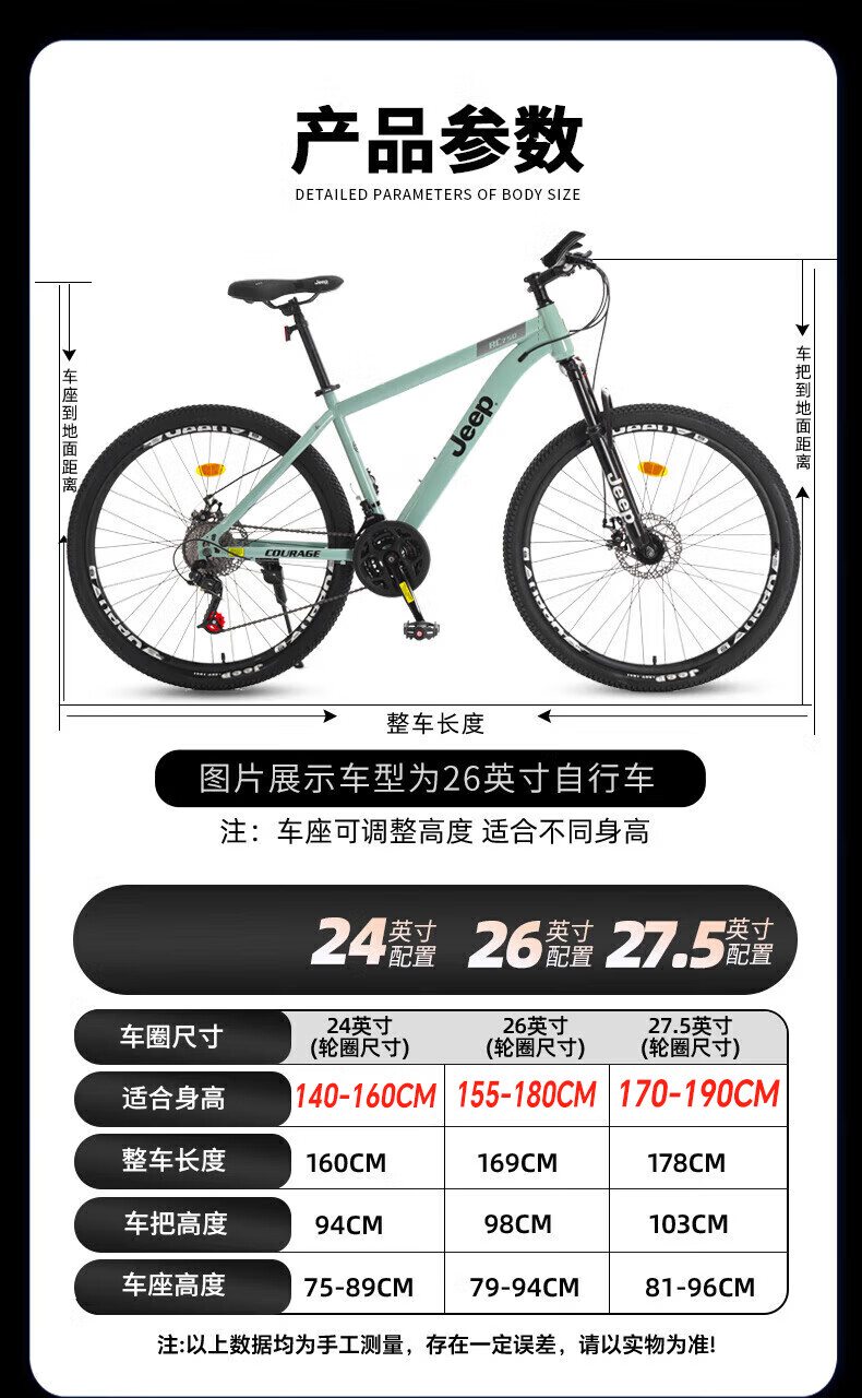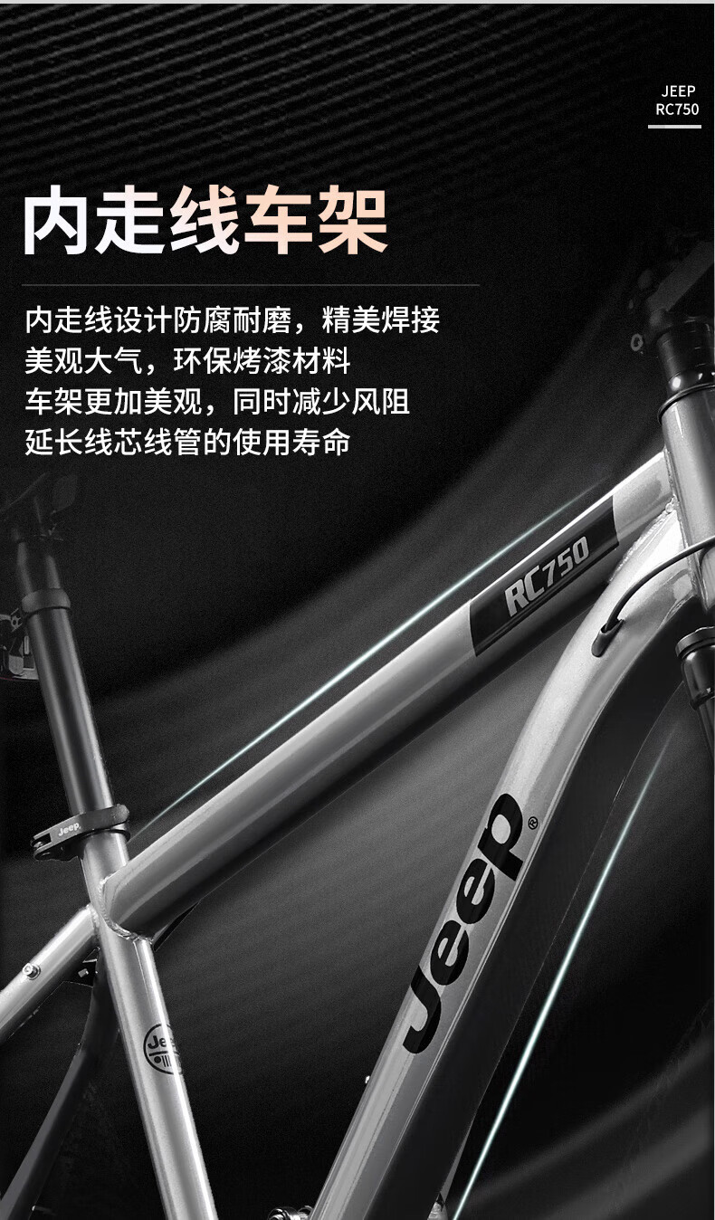 Jeep吉普自行车山地车女款成人可锁死变速碟刹男学生运动通勤车-RC750 RC750-樱花粉 26寸(适合身高155-180cm) 24速-钢架-经济实用
