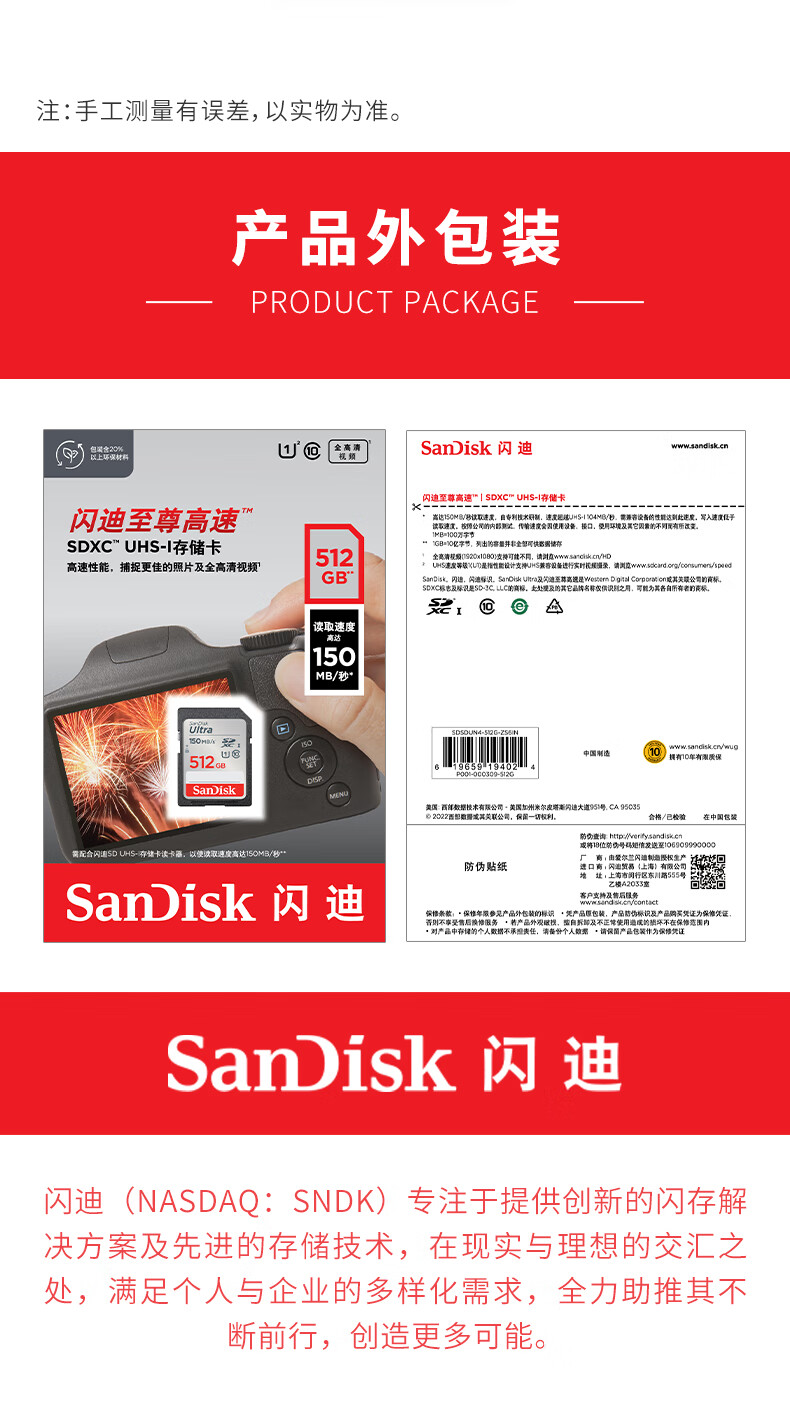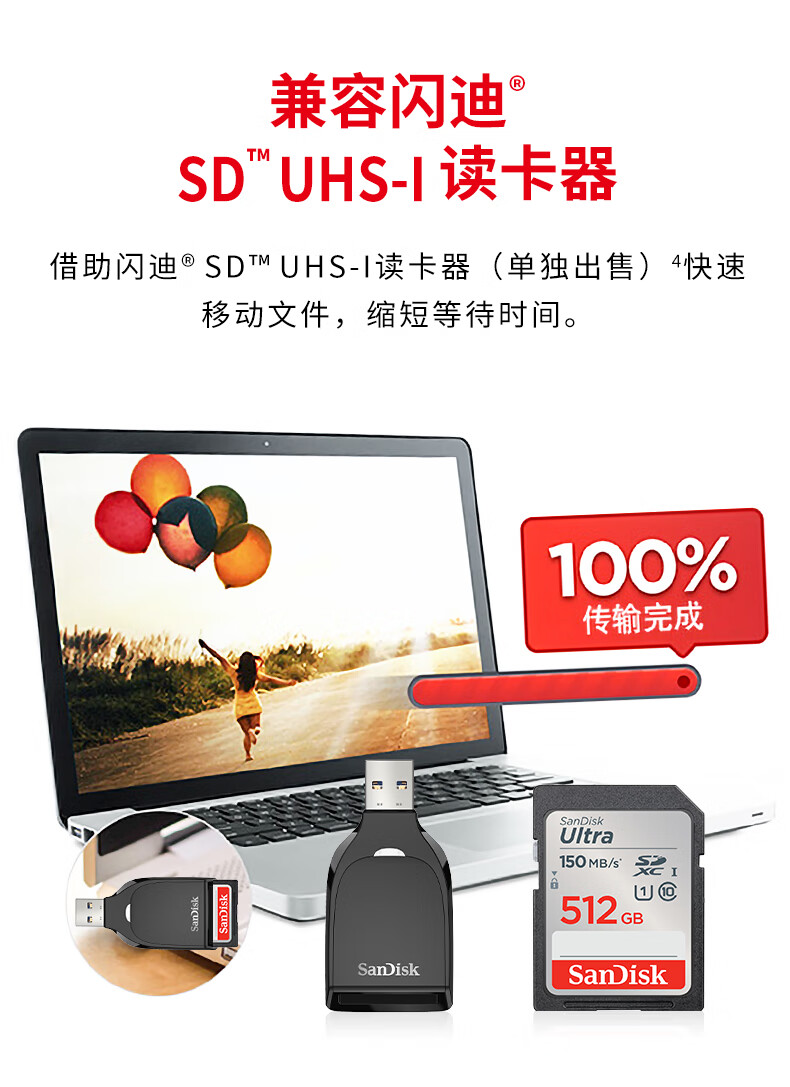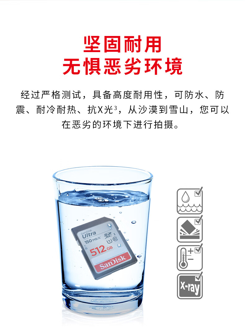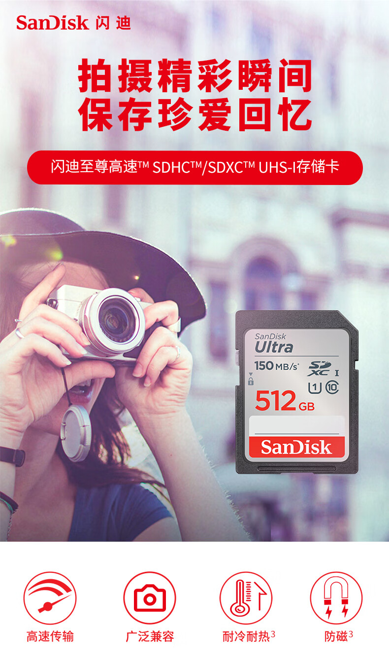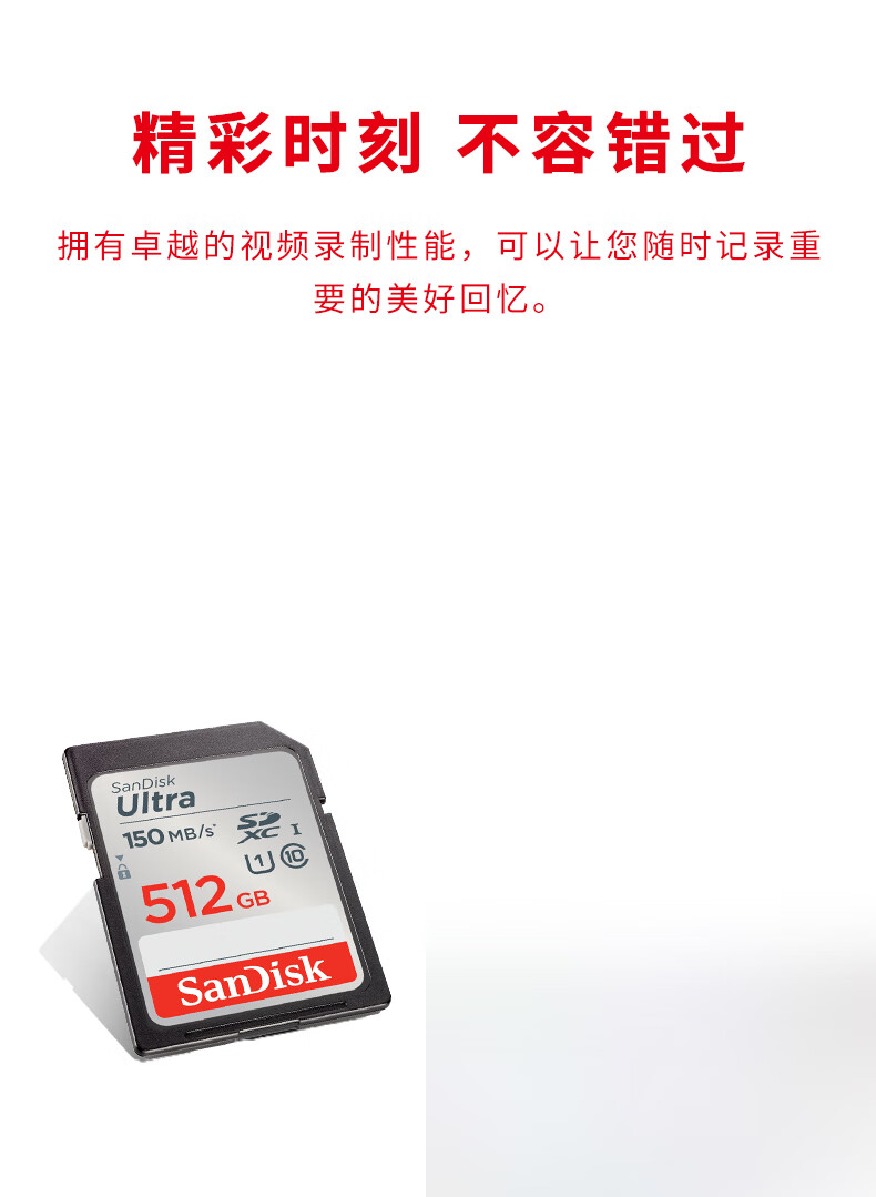 闪迪(SanDisk)512GB SD内存卡 U1 C10 至尊高速存储卡 读速150MB/s全高清视频 数码相机理想伴侣
