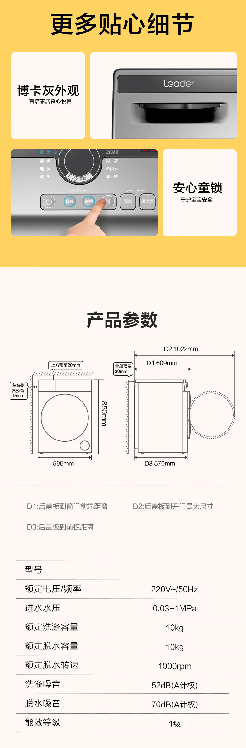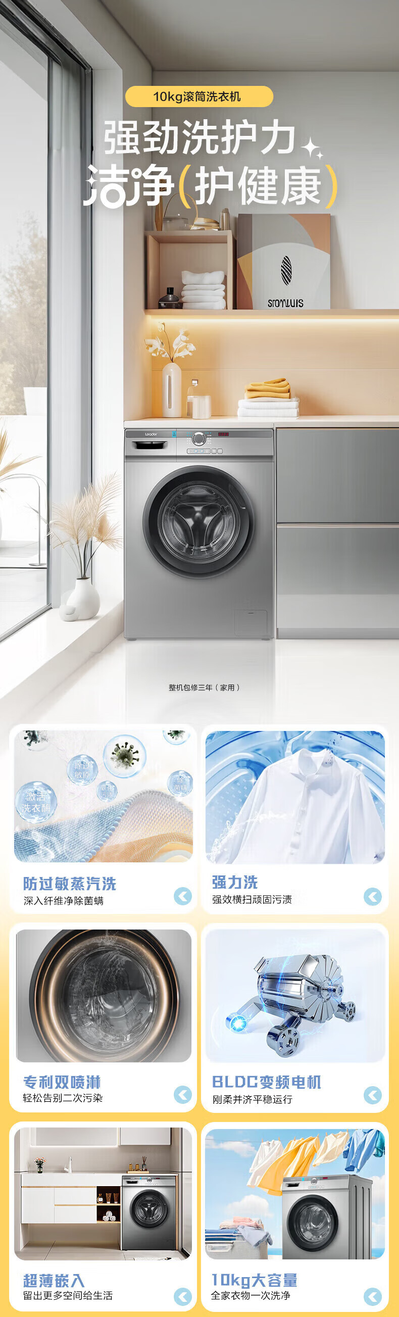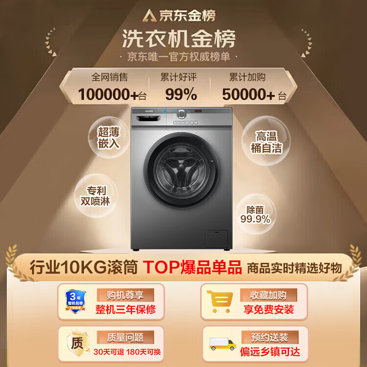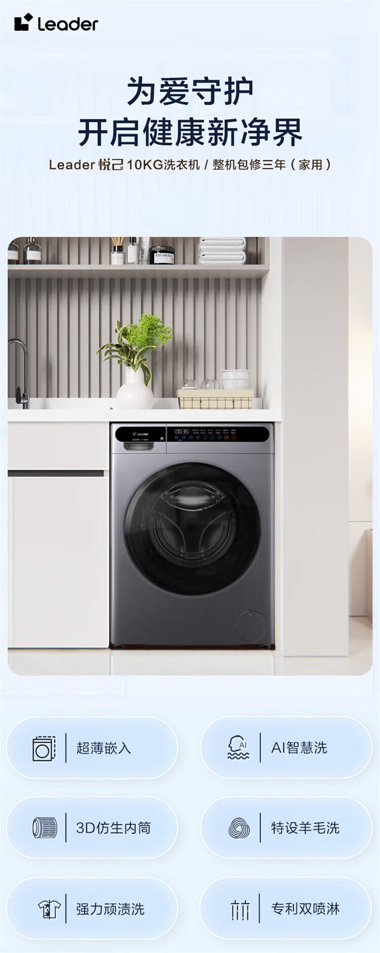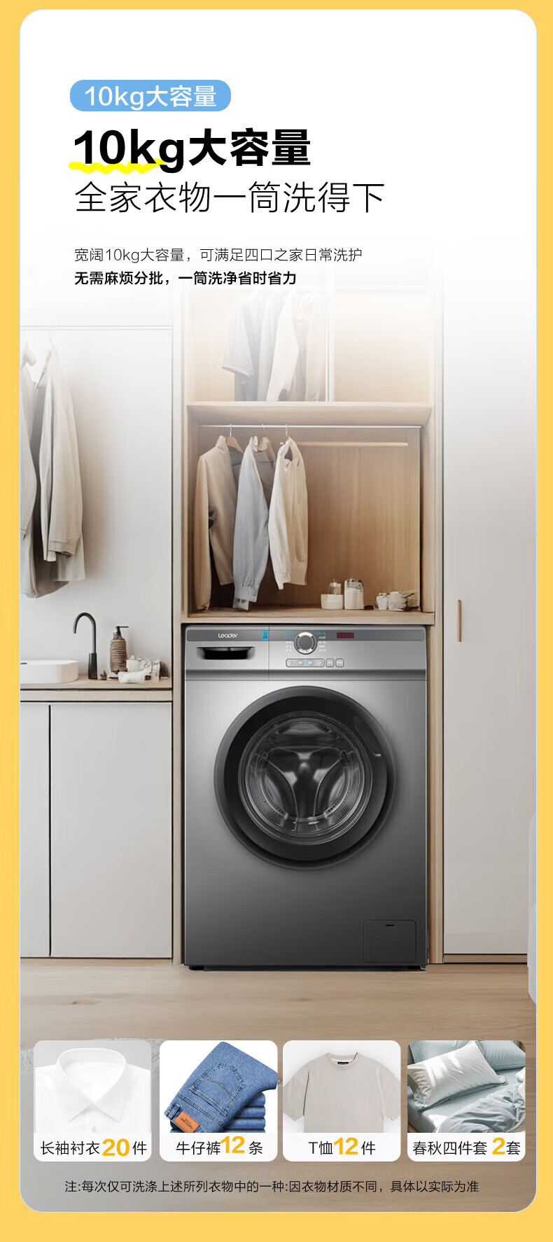 海尔洗衣机洗烘一体带烘干10公斤全自动滚筒洗衣机容量一级能效节能超薄嵌入除菌螨统帅以旧换新补贴 防过敏蒸汽洗+顽渍强洗+羊毛羽绒洗+高温自洁无烘干