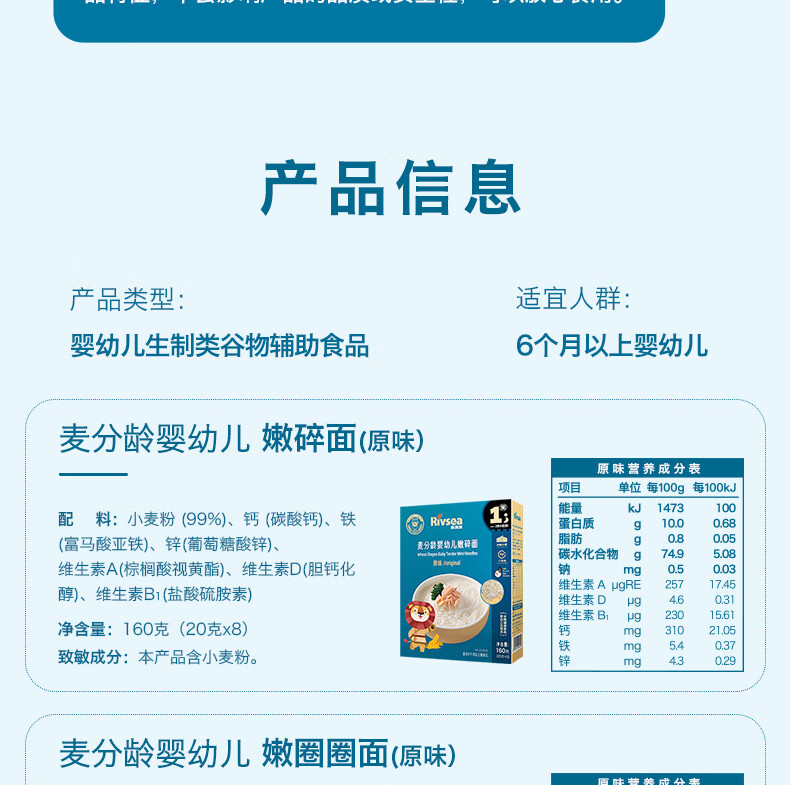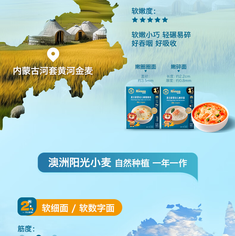 禾泱泱麦分龄婴幼儿面条 宝宝辅食 嫩圈圈面6月+ 醇净无添加 原味160g