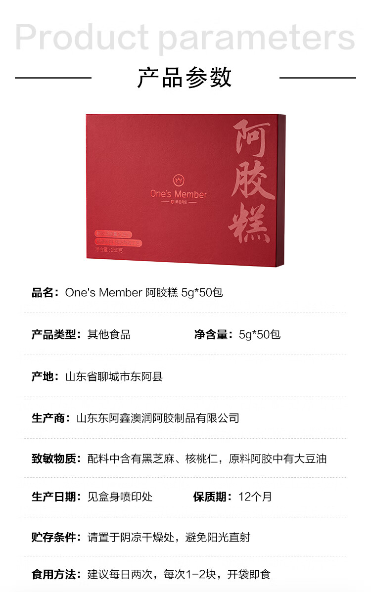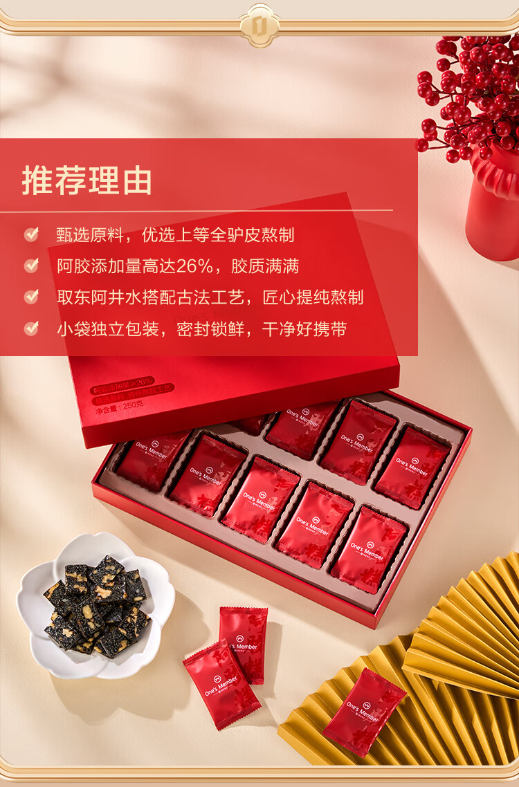 One's Member 26%阿胶糕250g礼盒 补气血 女性滋补品 送礼送父母长辈