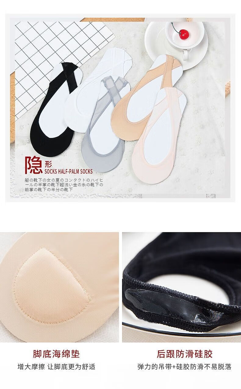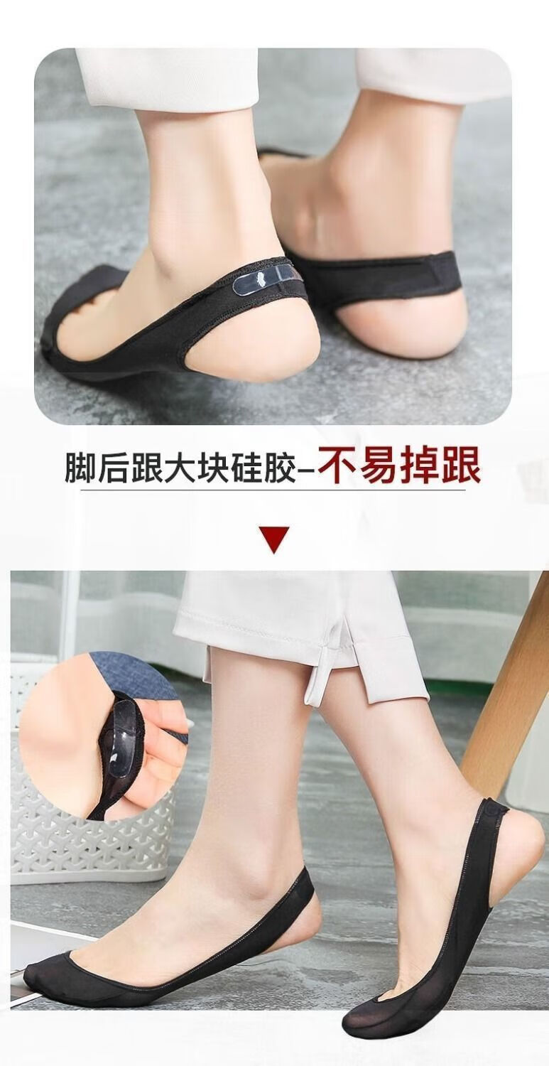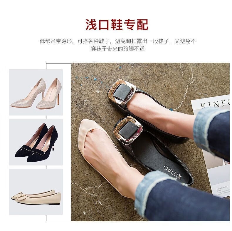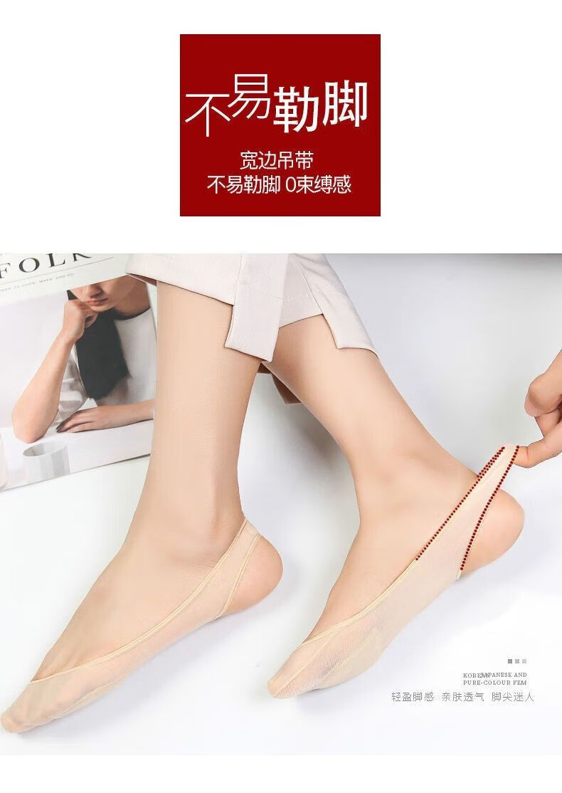 朋意隐形船袜女夏季冰丝超浅口高跟鞋棉垫硅胶防滑不掉跟薄款吊带袜子 肤色1双 均码 无规格