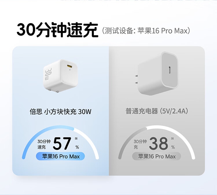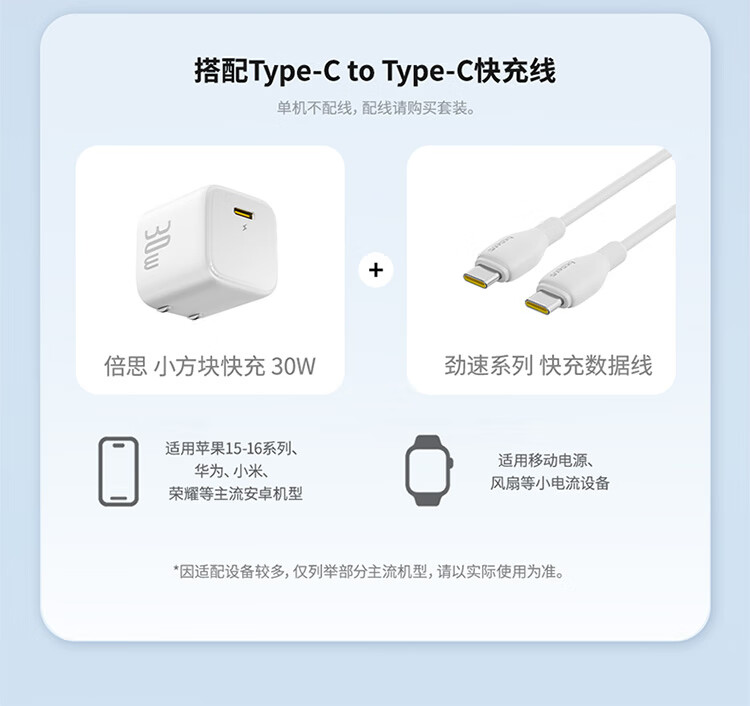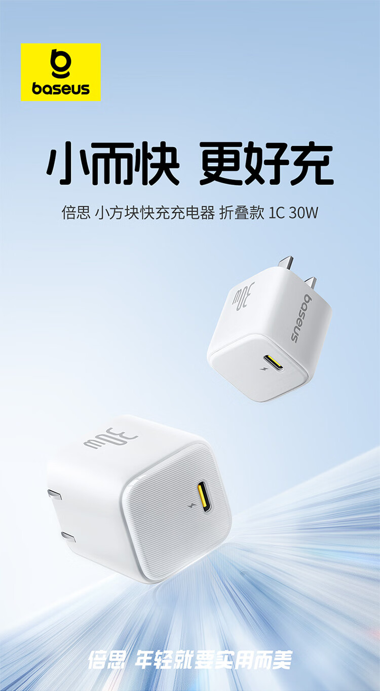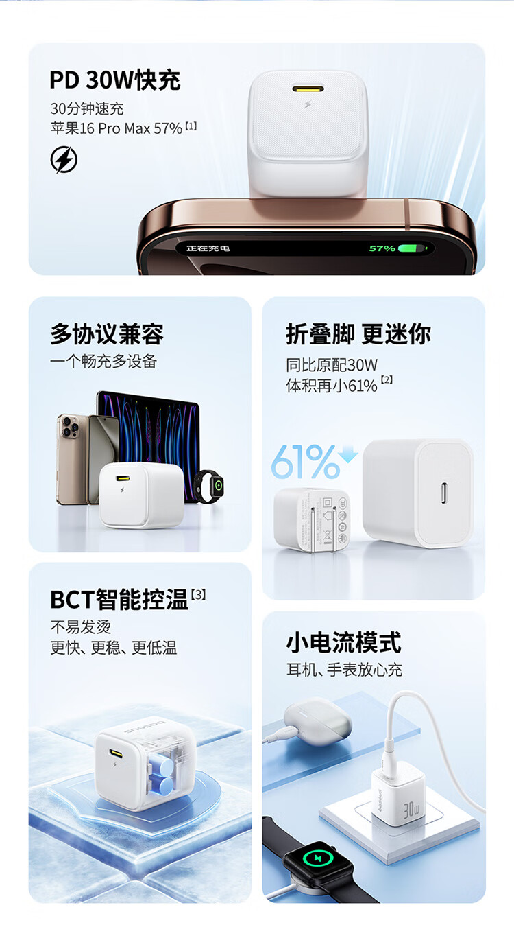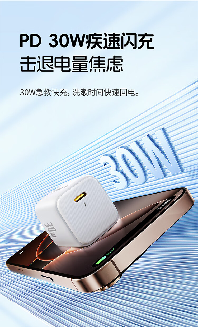 倍思苹果17充电器30W/20W可折叠快充头套装Type-C数据线适用iPhone17/16/15proMax/14手机iPad平板 【30W折叠套装】苹果15-17星云紫1.5米 适用苹果全系-安全快充不伤机