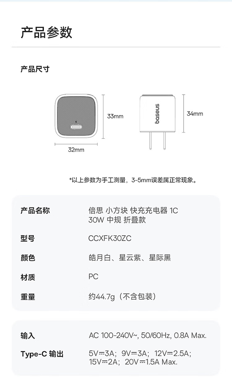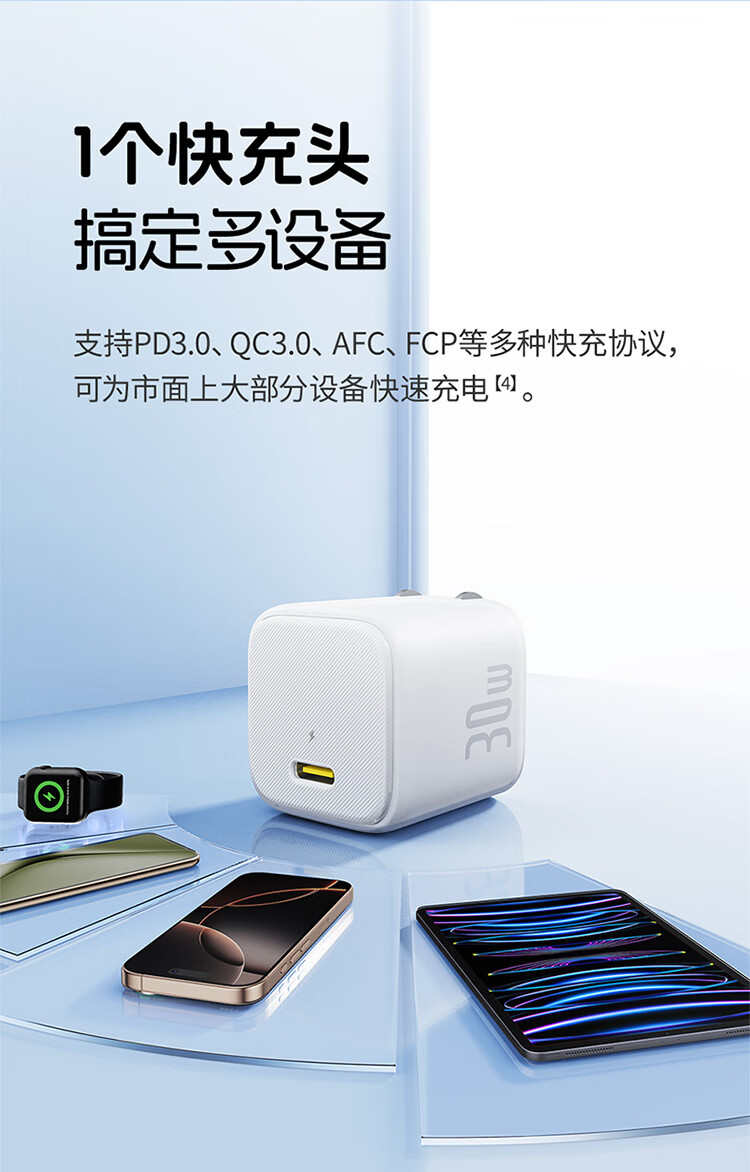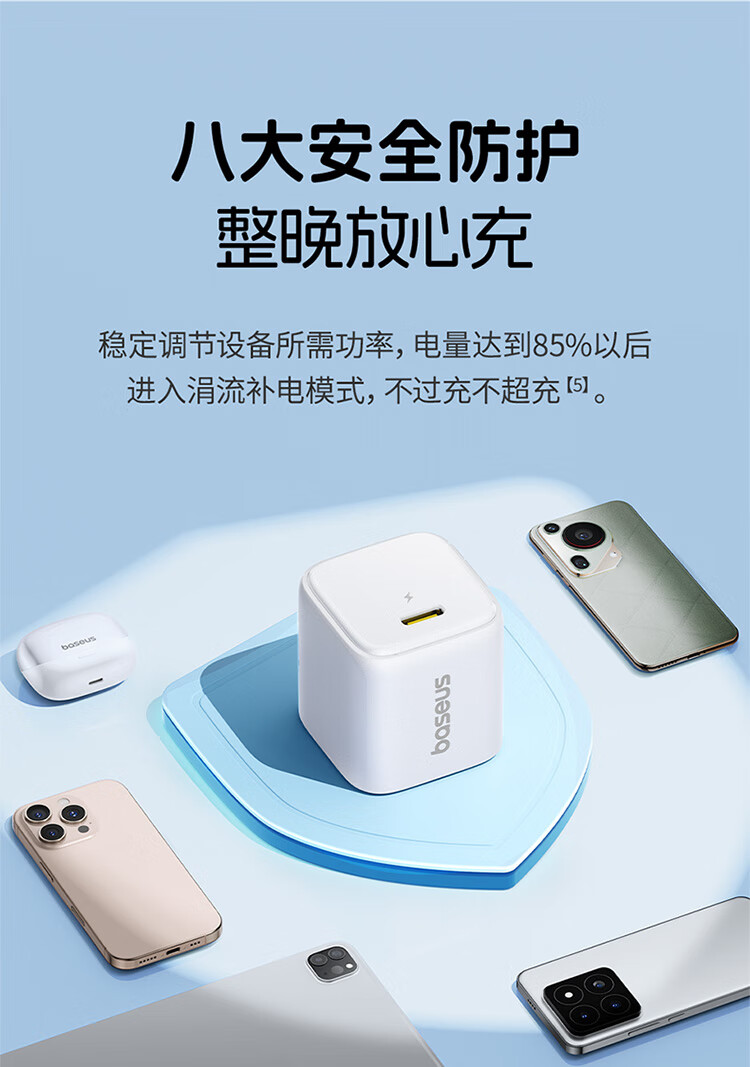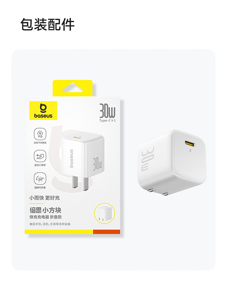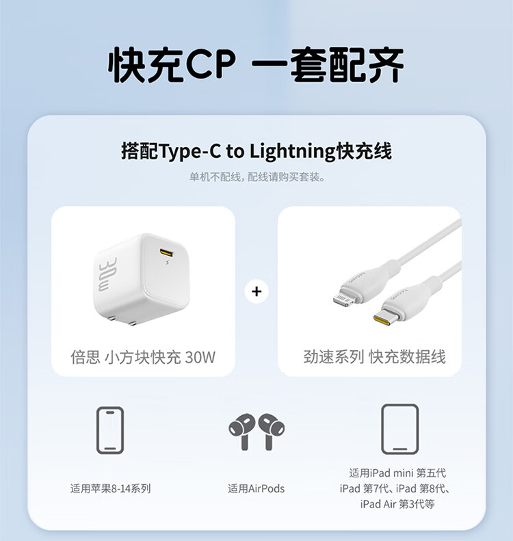 倍思苹果17充电器30W/20W可折叠快充头套装Type-C数据线适用iPhone17/16/15proMax/14手机iPad平板 【30W折叠套装】苹果15-17星云紫1.5米 适用苹果全系-安全快充不伤机