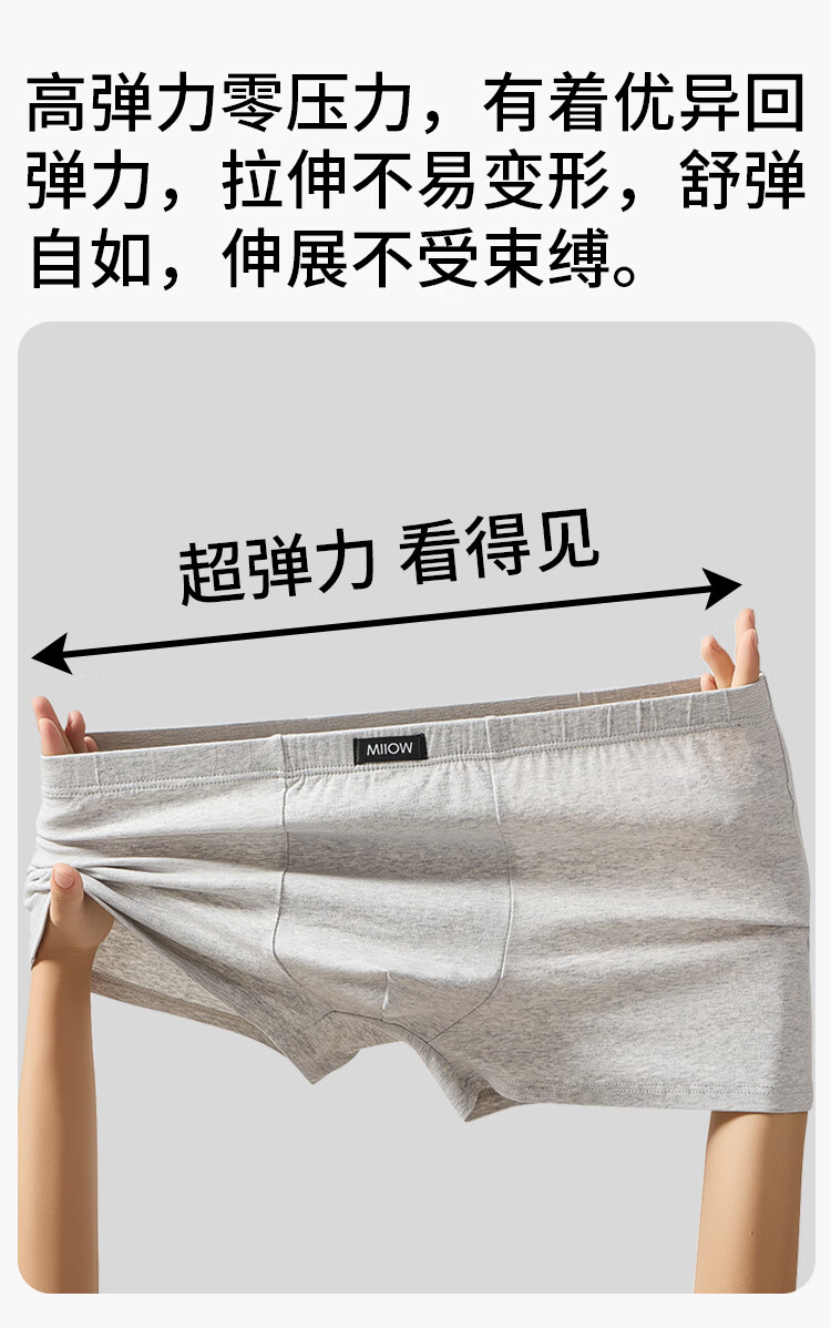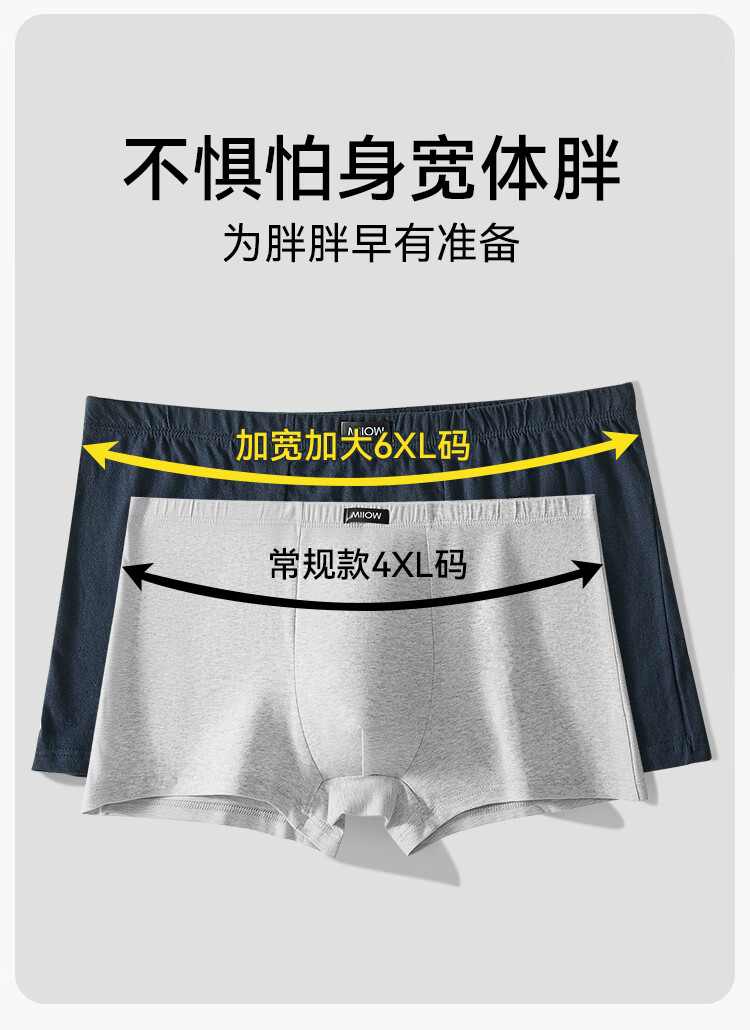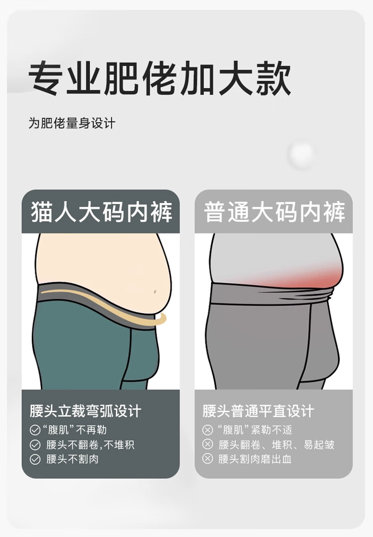 猫人加肥加大男士内裤男纯棉肥佬裤透气大码中老年宽松短裤衩3条6XL