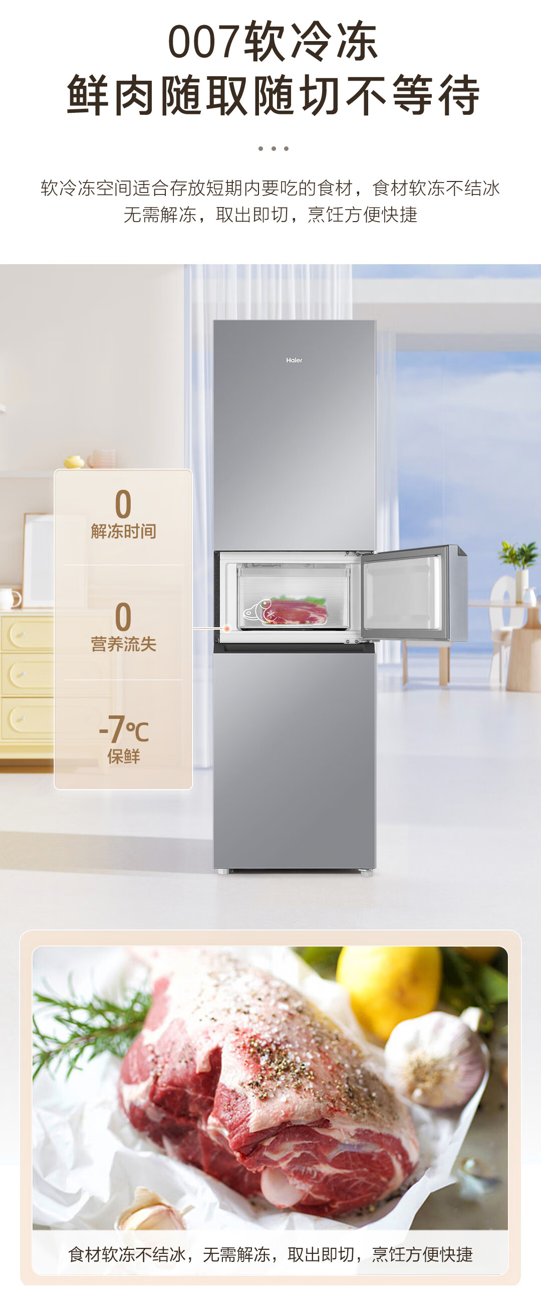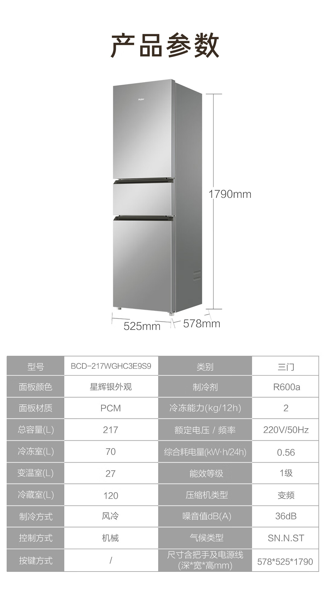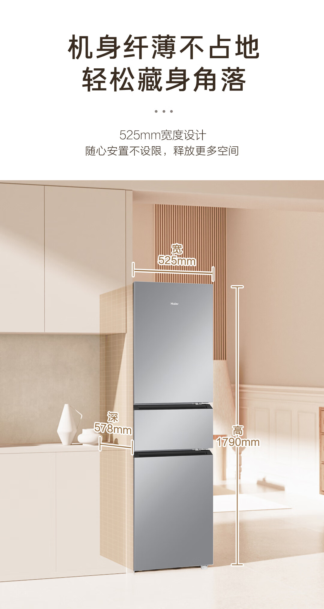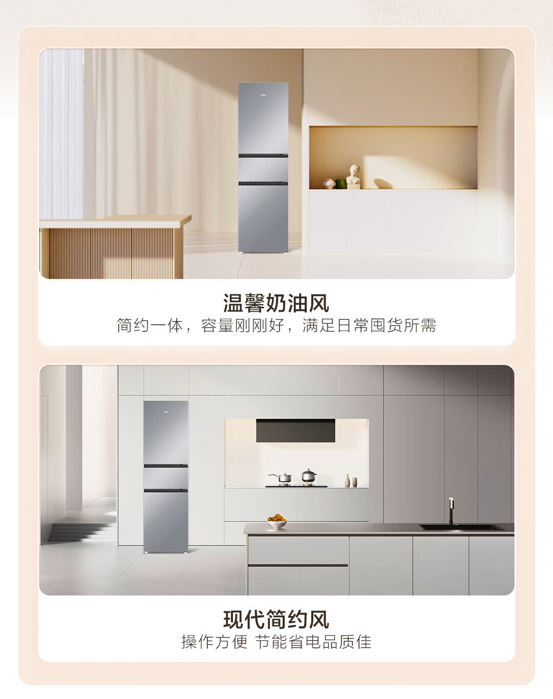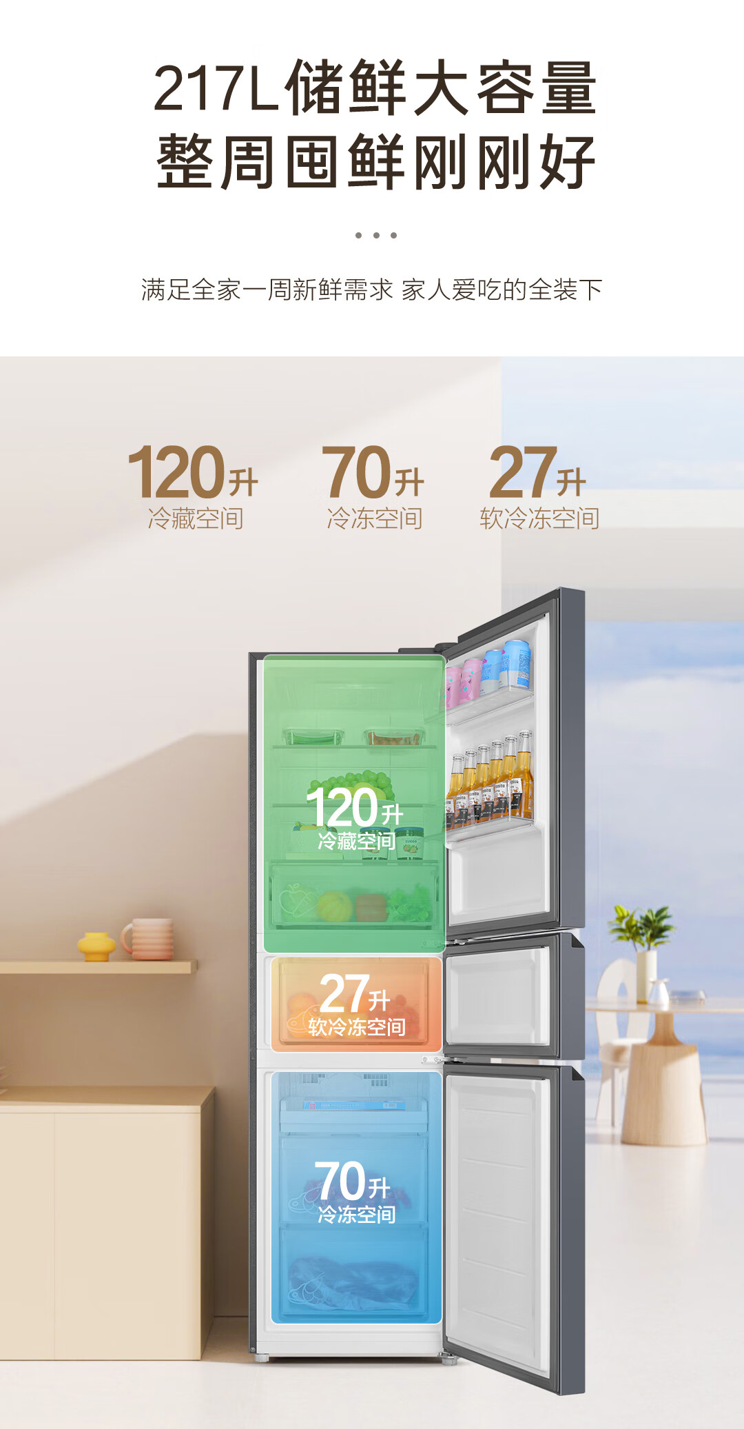 海尔(Haier)冰箱217升三开门一级能效节能变温风冷无霜宿舍出租房小户型家用电冰箱 217升风冷无霜+健康黑金净化