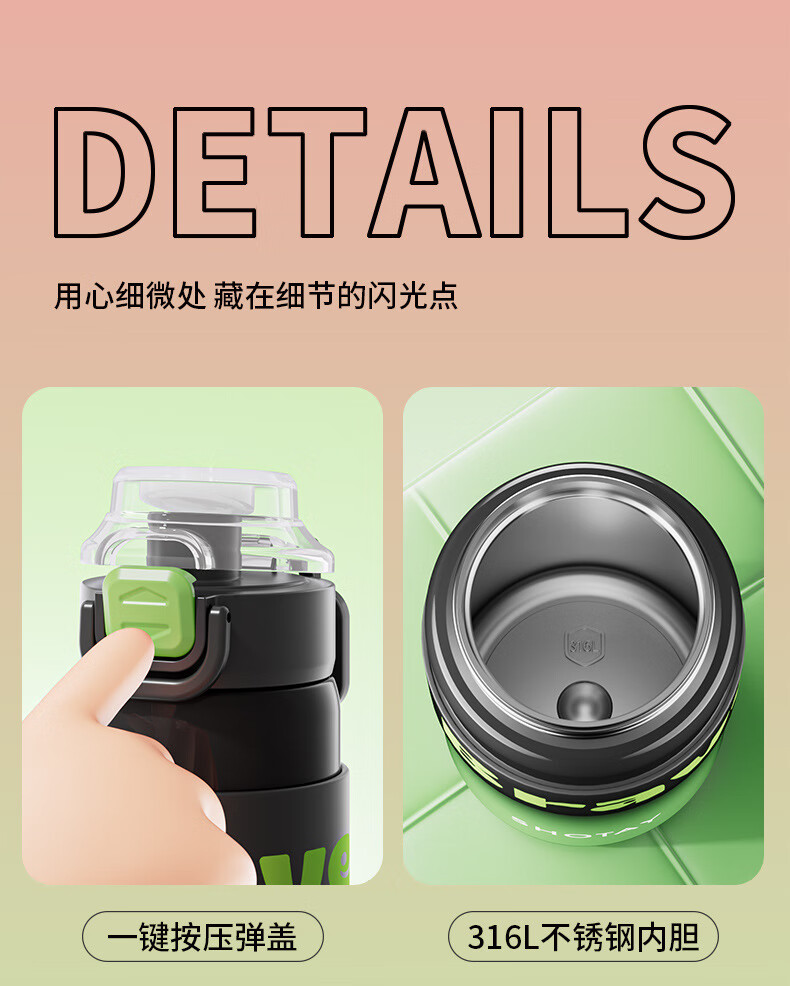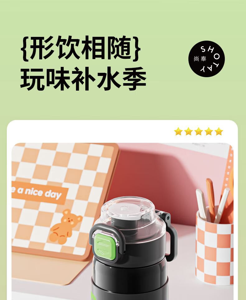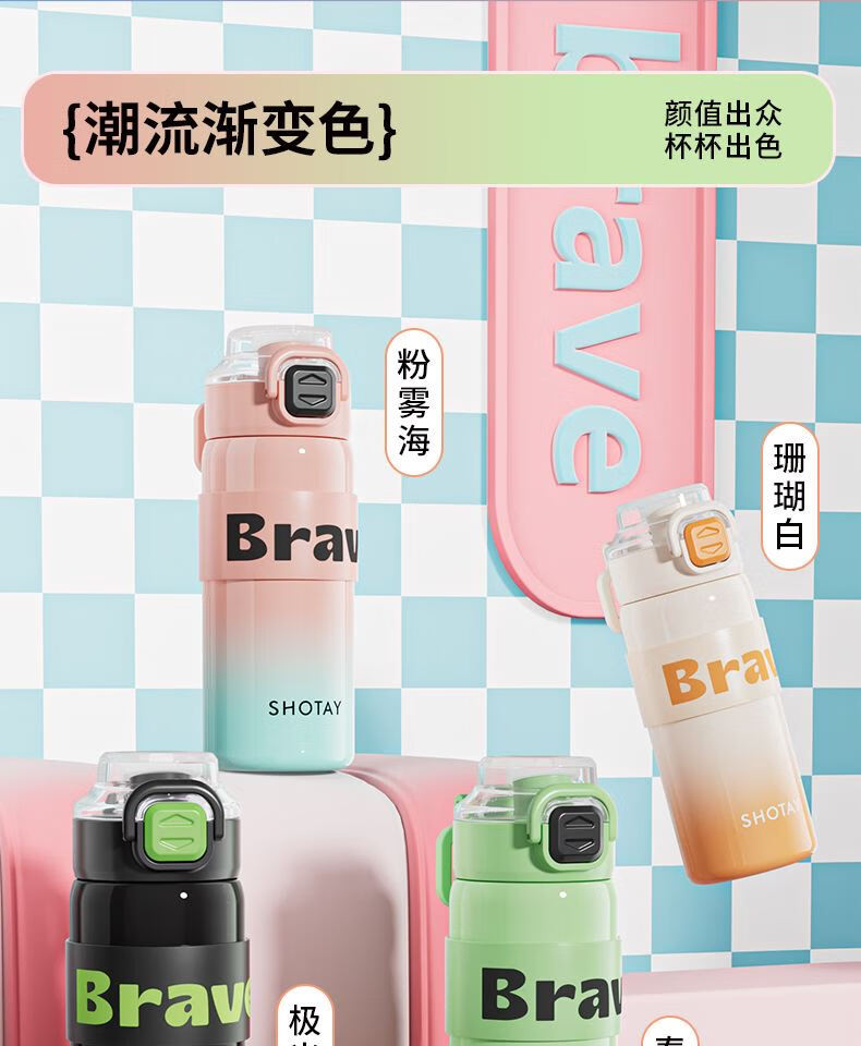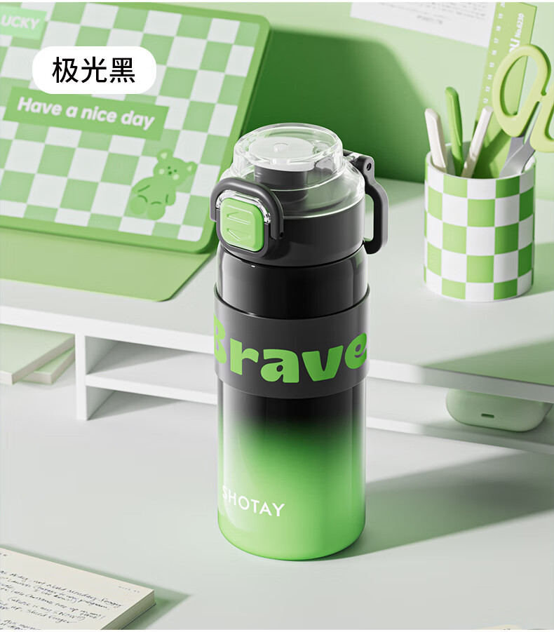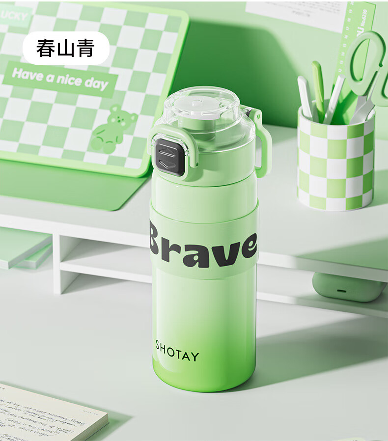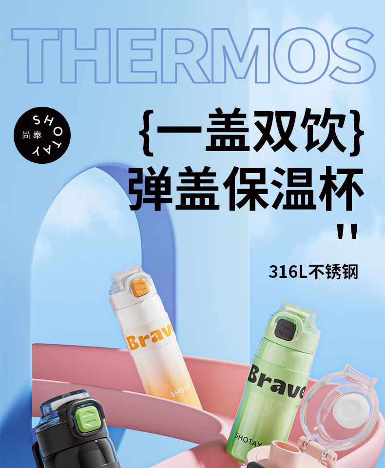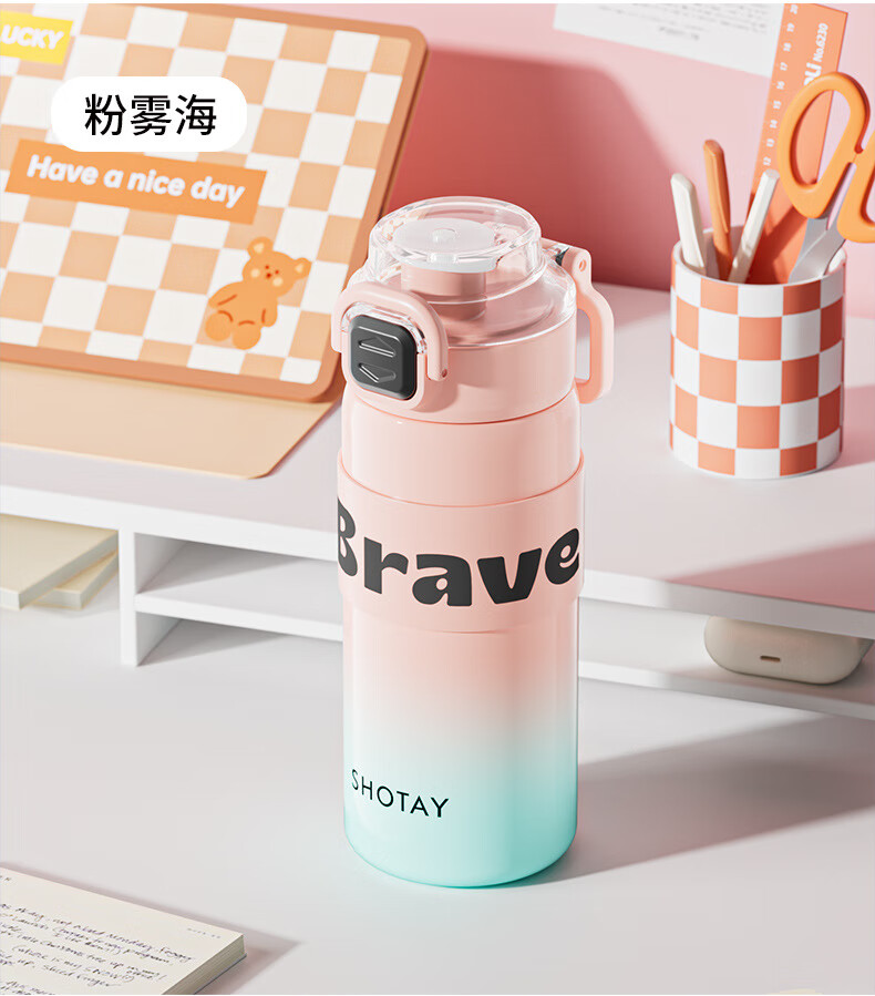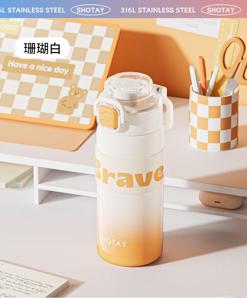 AILUKI日本初高中生保温杯儿童上学专用男孩大容量316不锈钢水壶小学生 【一口双饮】珊瑚白550ml【级316