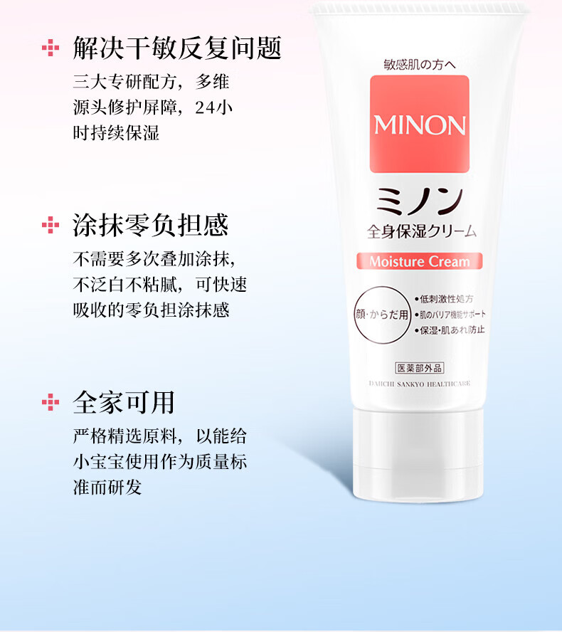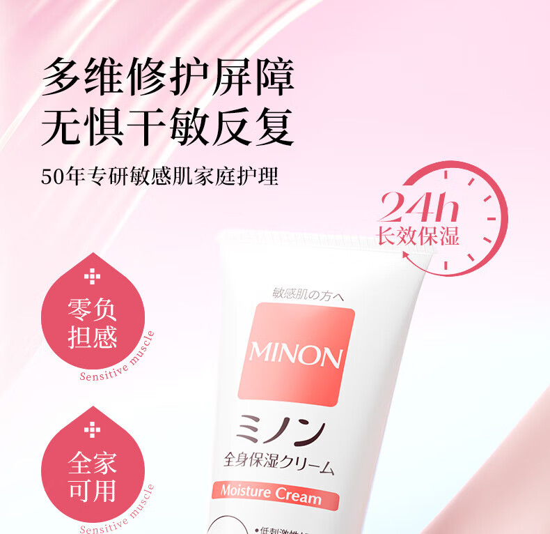 蜜浓(MINON)敏感肌无添加保湿身体乳霜春夏保湿滋润 150ml