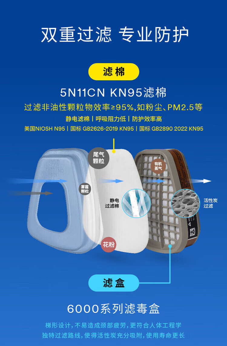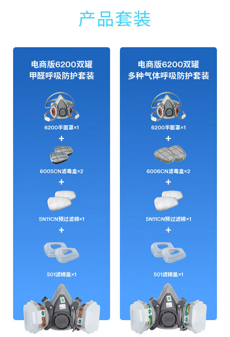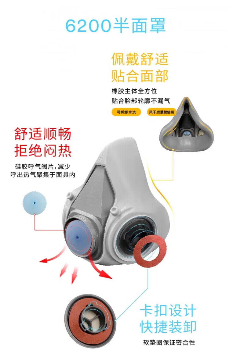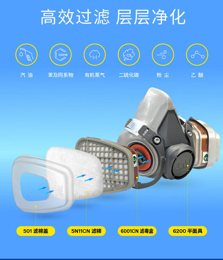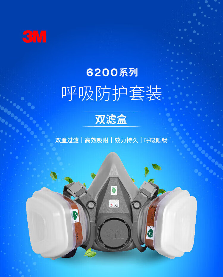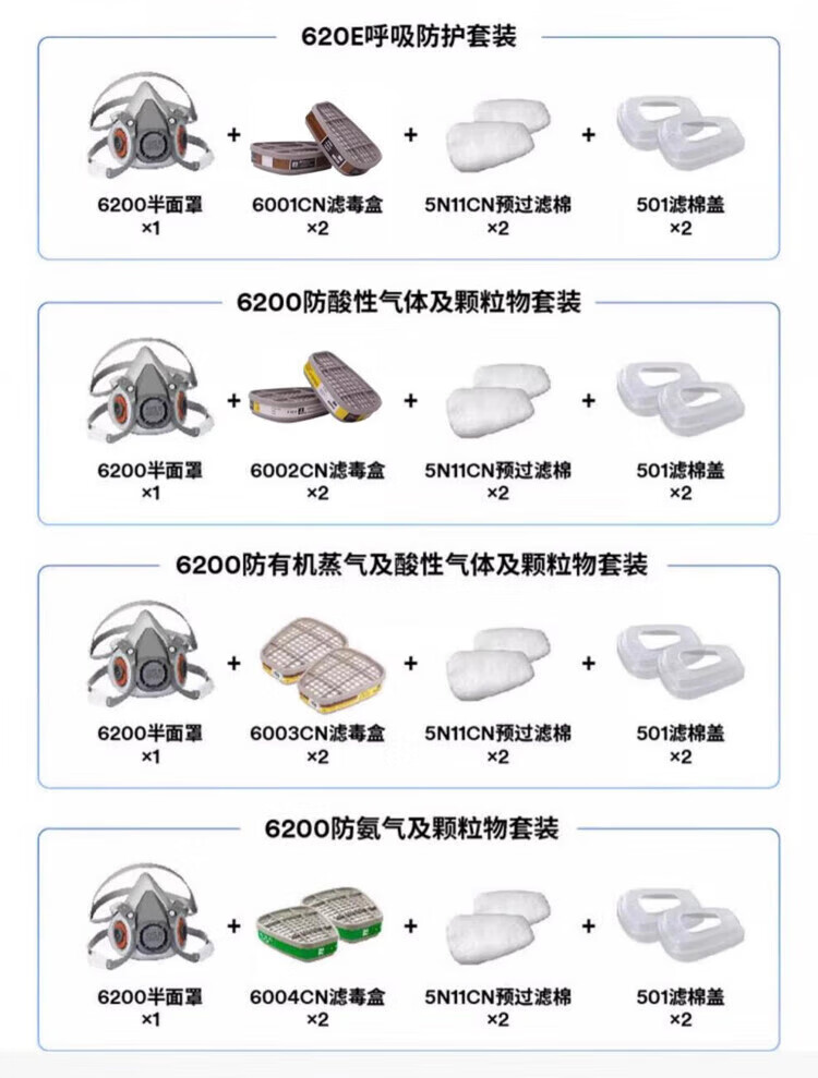 3M防毒面具喷漆粉尘滤毒盒化工口罩有机气体防护工业滤棉面罩PSD 6200+6001七件套(防有机气体及蒸气)