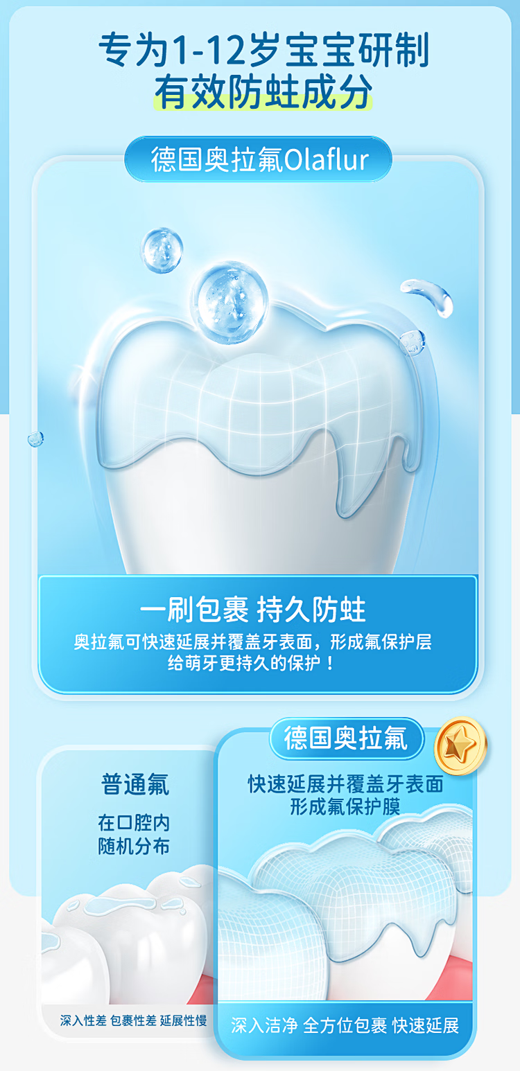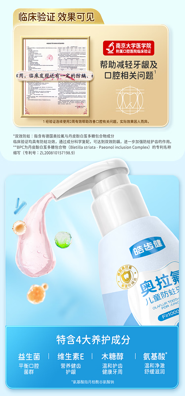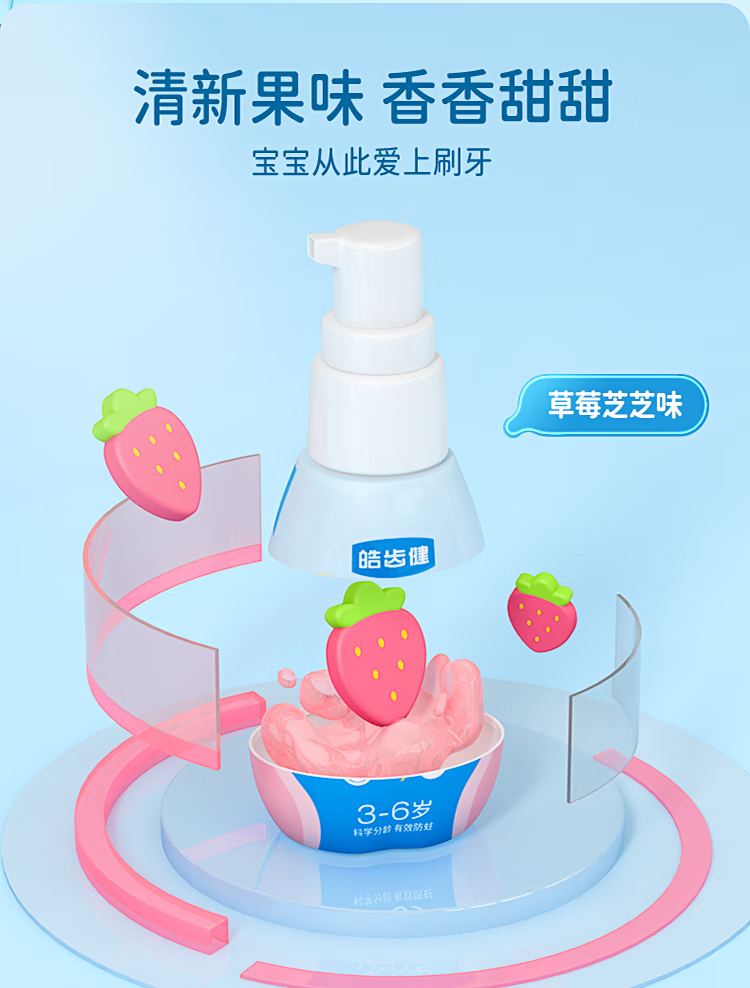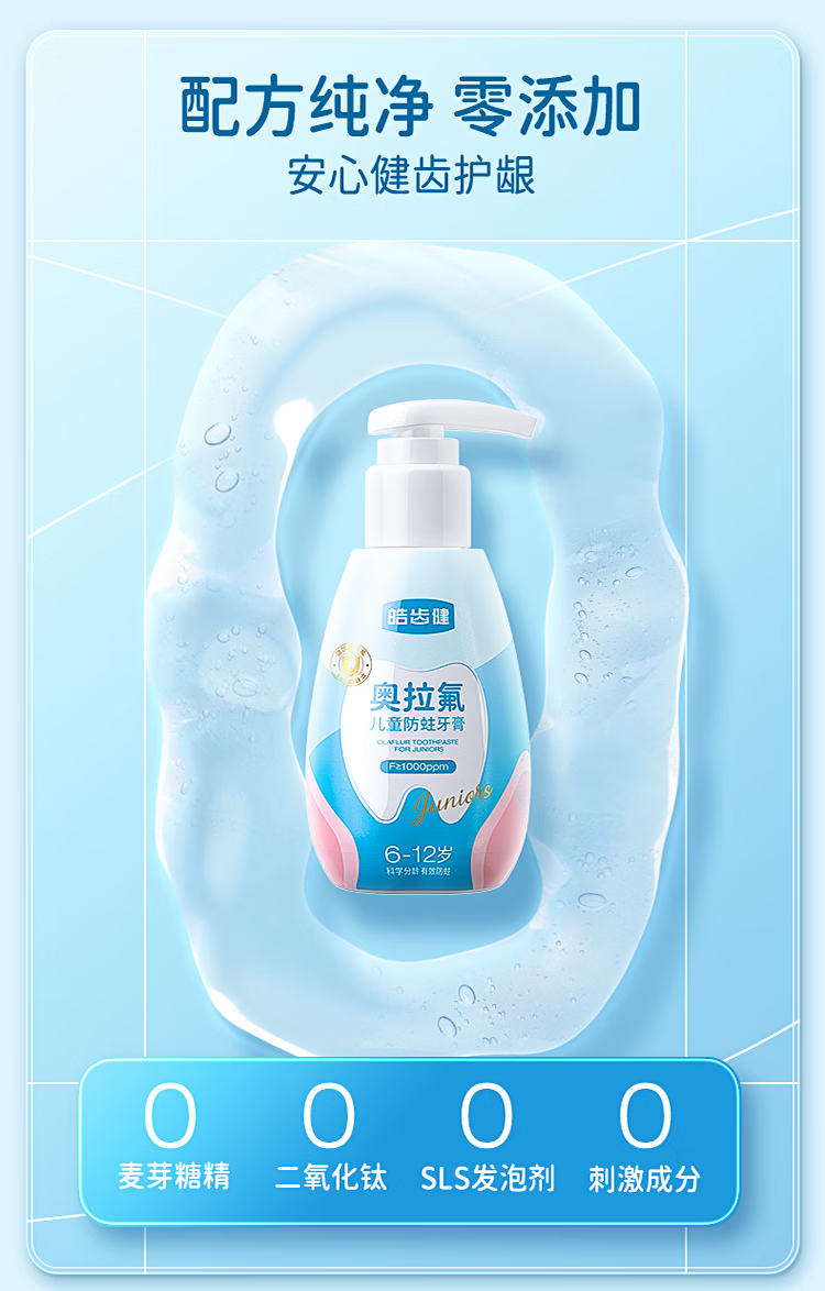 皓齿健(Hosjam)奥拉氟婴幼儿防蛀牙膏 防蛀液体按压式 宝宝预防龋齿护齿口腔清洁 【1-3岁】奥拉氟防蛀慕斯60g