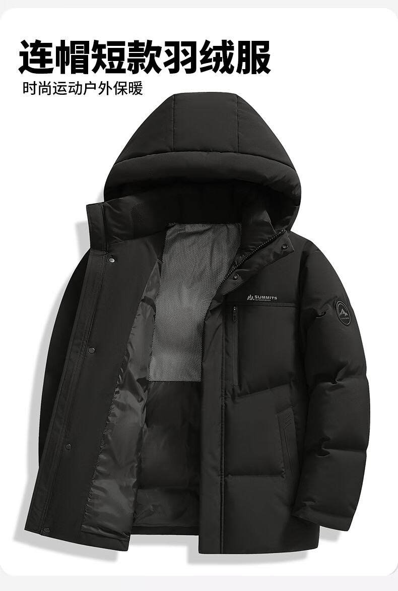 鸭鸭羽绒服男短款冬季保暖加厚中年商务休闲时尚宽松连帽老年爸爸外套