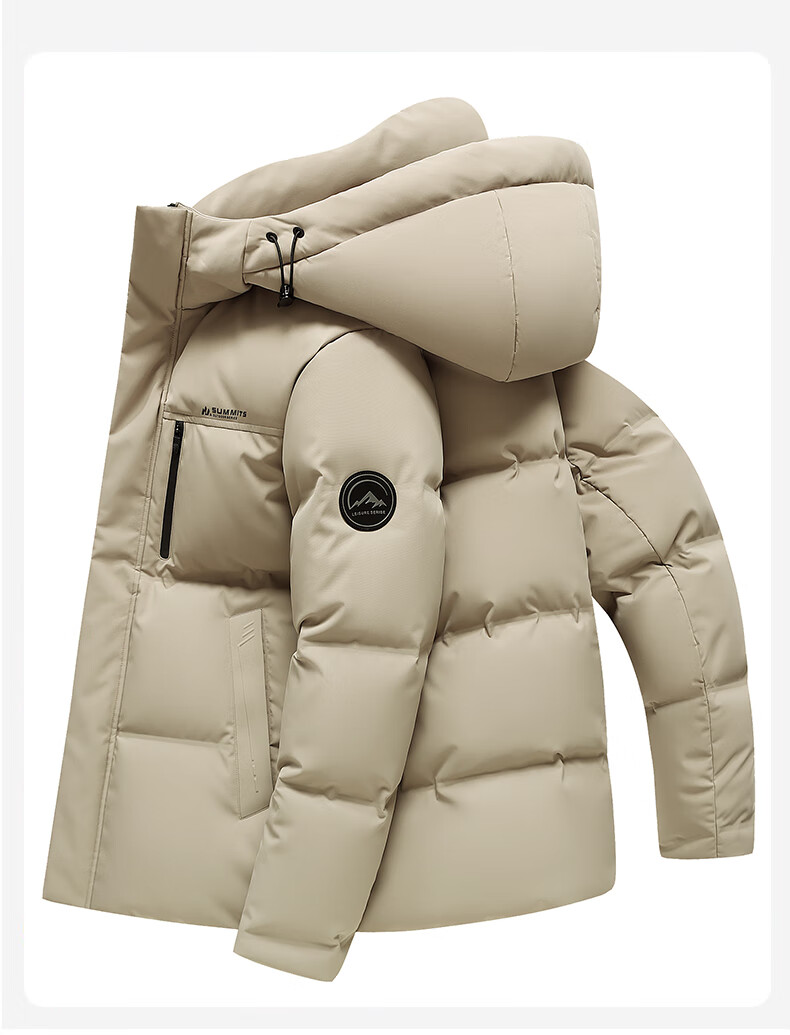 啄木鸟(TUCANO)羽绒服男款外套冬季加厚保暖防寒休闲连帽面包服上衣 灰白 XL