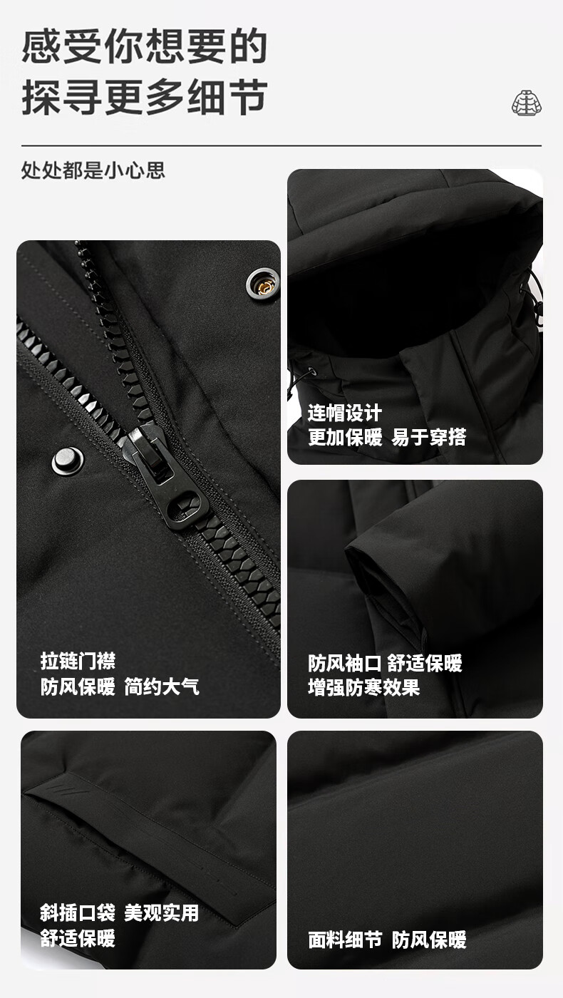 雪中飞【95绒】羽绒服男长款连帽深度抗寒宽松舒适超厚保暖防寒羽绒外套
