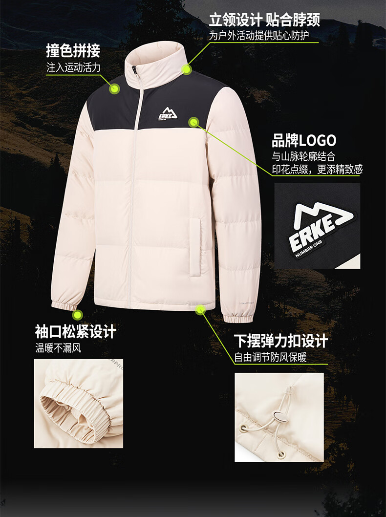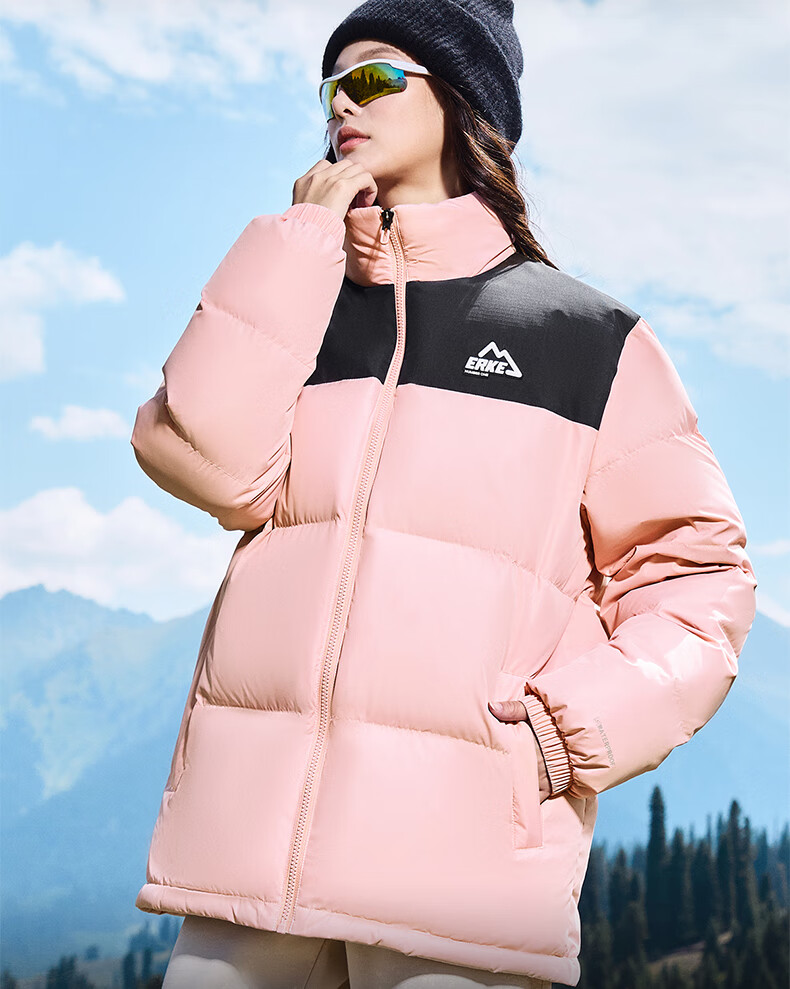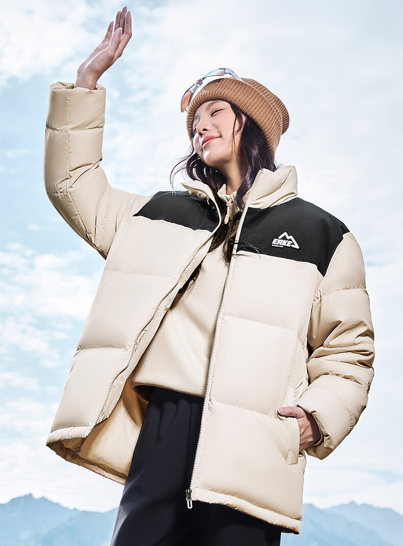 鸿星尔克羽绒服男女同款冬季立领时尚通勤加厚保暖外套情侣泡芙面包服上衣