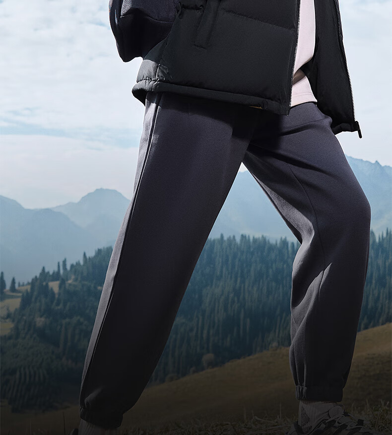 鸿星尔克运动裤男针织长裤秋季新品舒适透气舒暖绒加厚直筒休闲裤子男裤