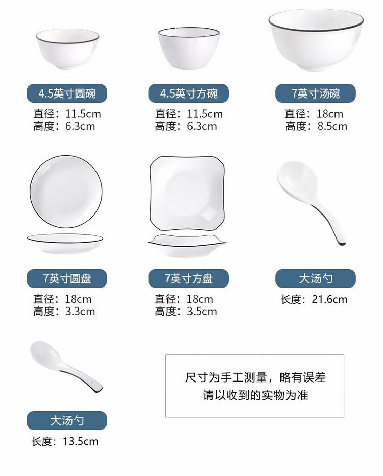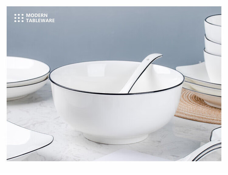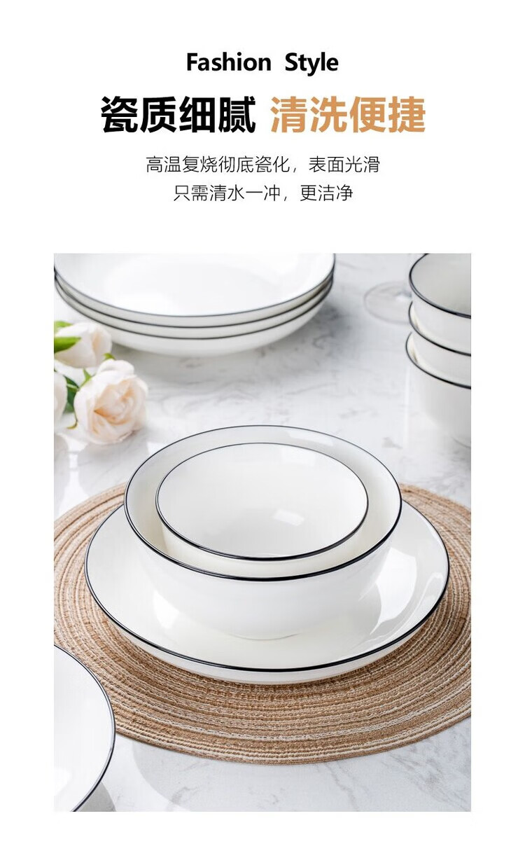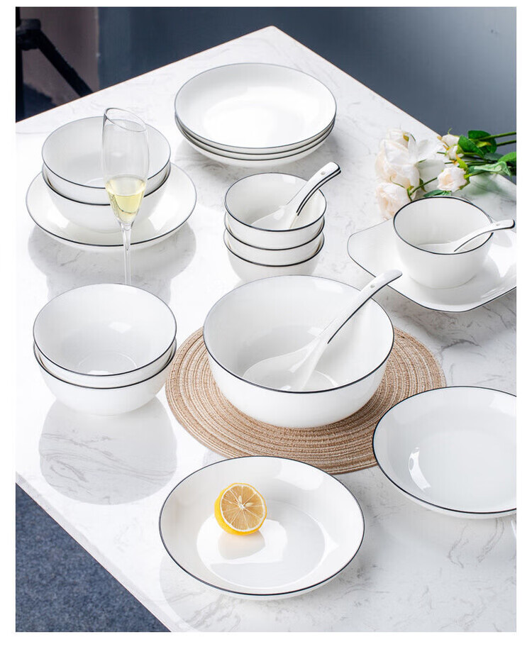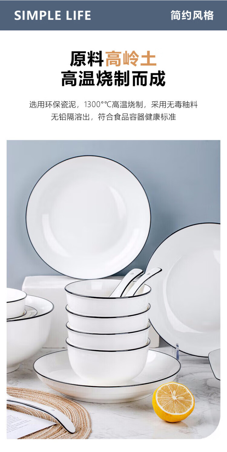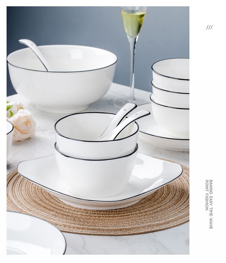 LZJV2025碗盘套装黑线陶瓷餐具现代简约釉下彩餐具高颜值一整套 圆款 4.5英寸碗/1个