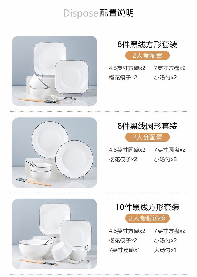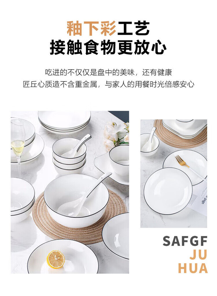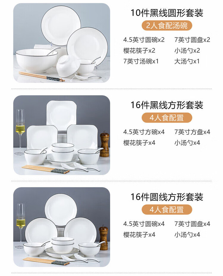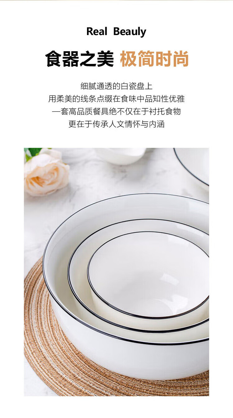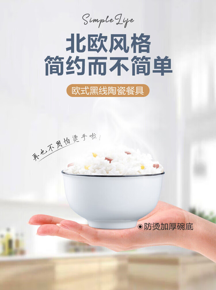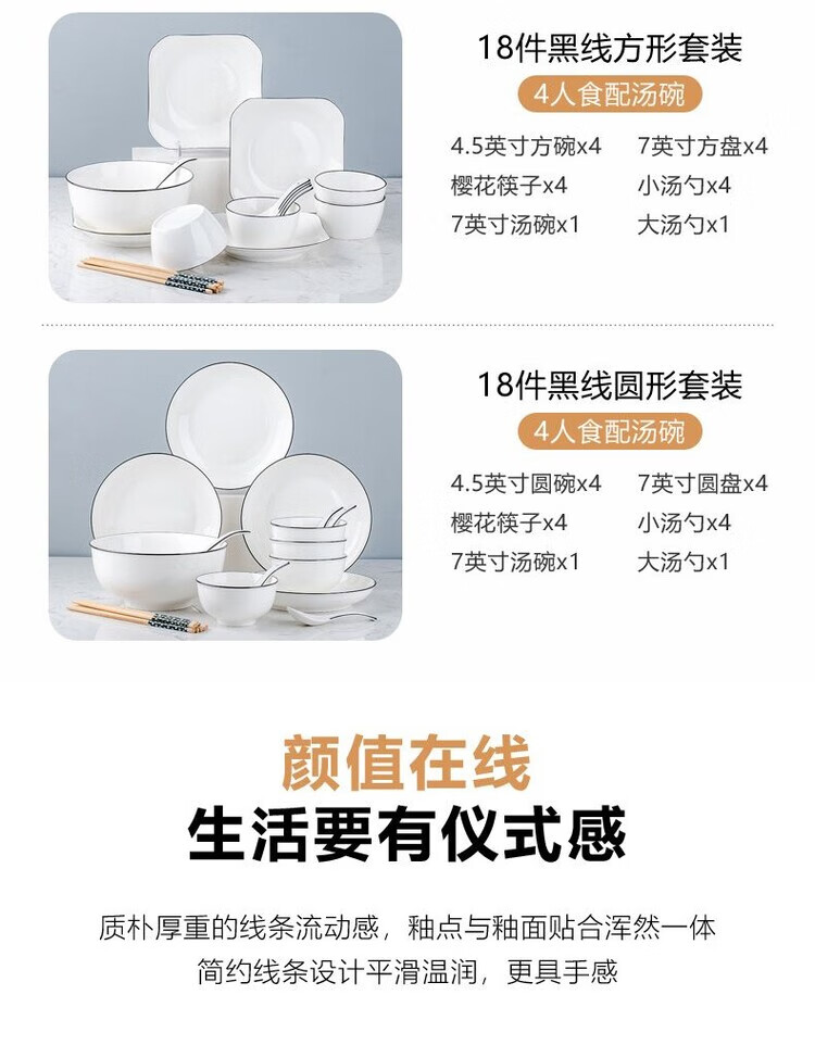 LZJV2025碗盘套装黑线陶瓷餐具现代简约釉下彩餐具高颜值一整套 圆款 4.5英寸碗/1个